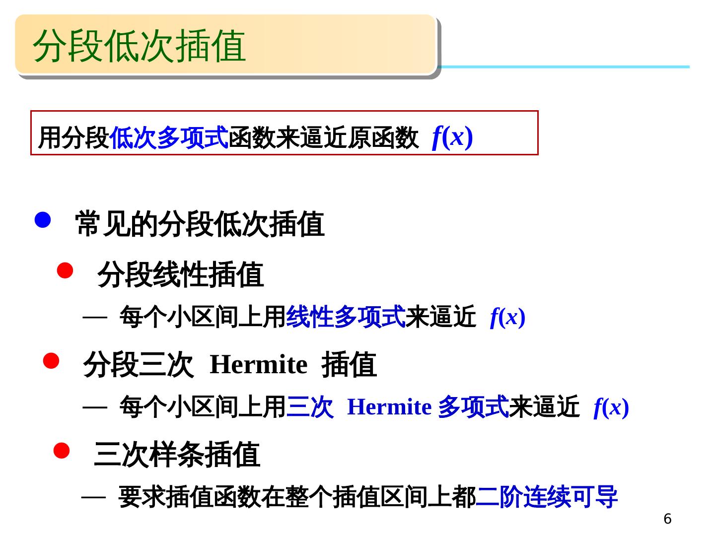 1 .1 第二章 函数 插值 — 分段 低次 插值