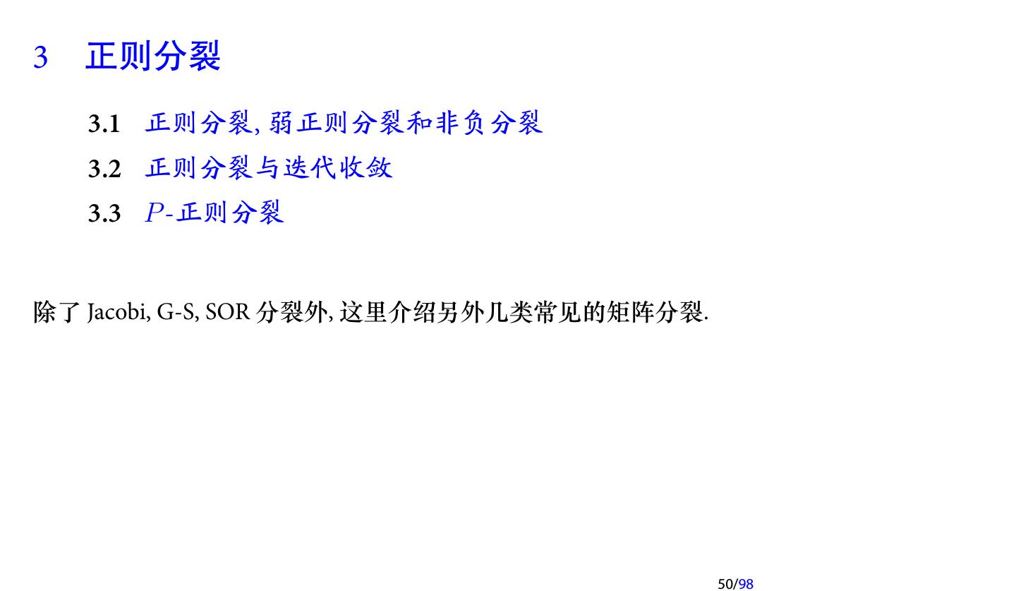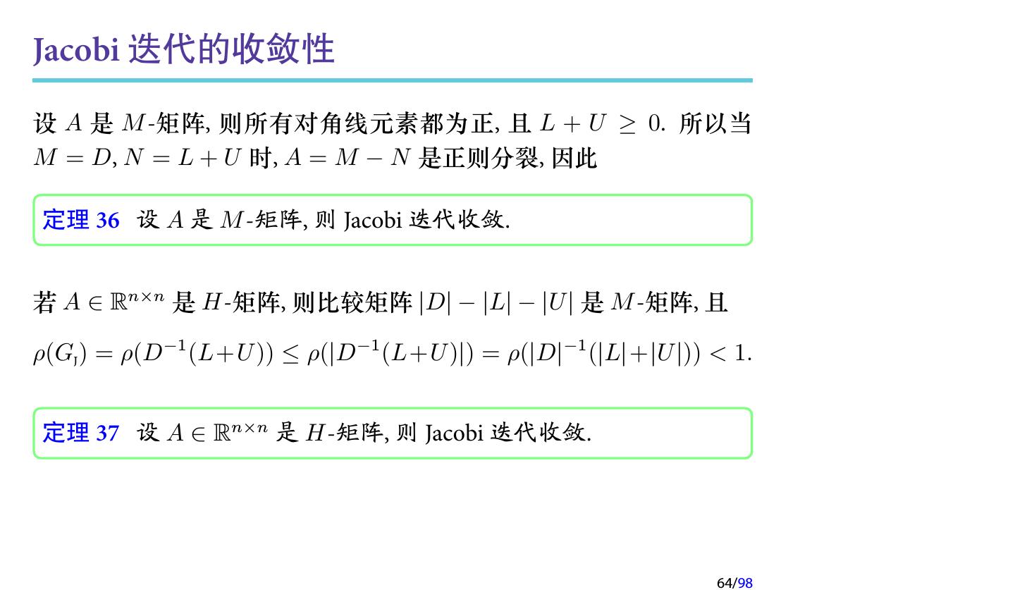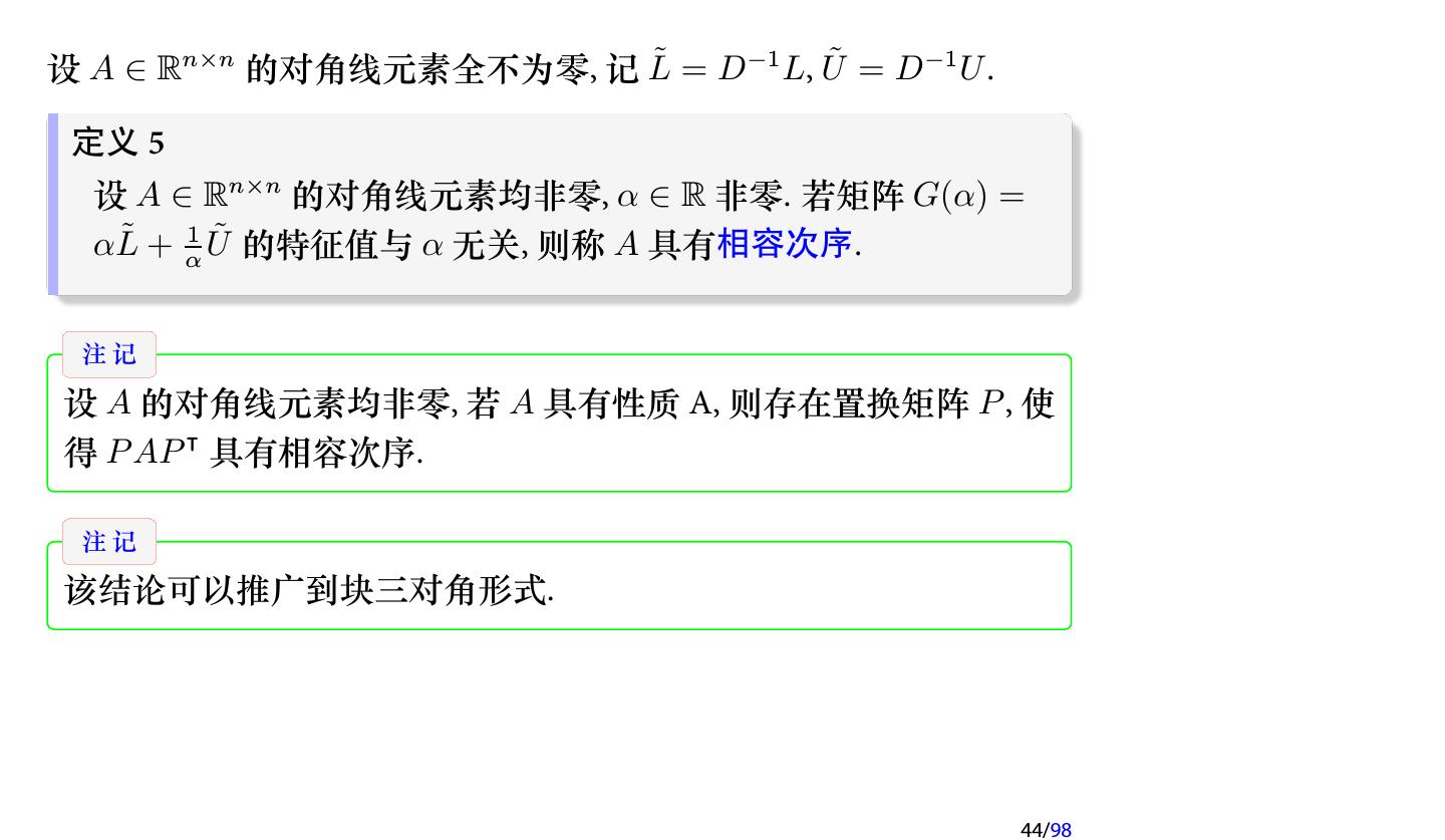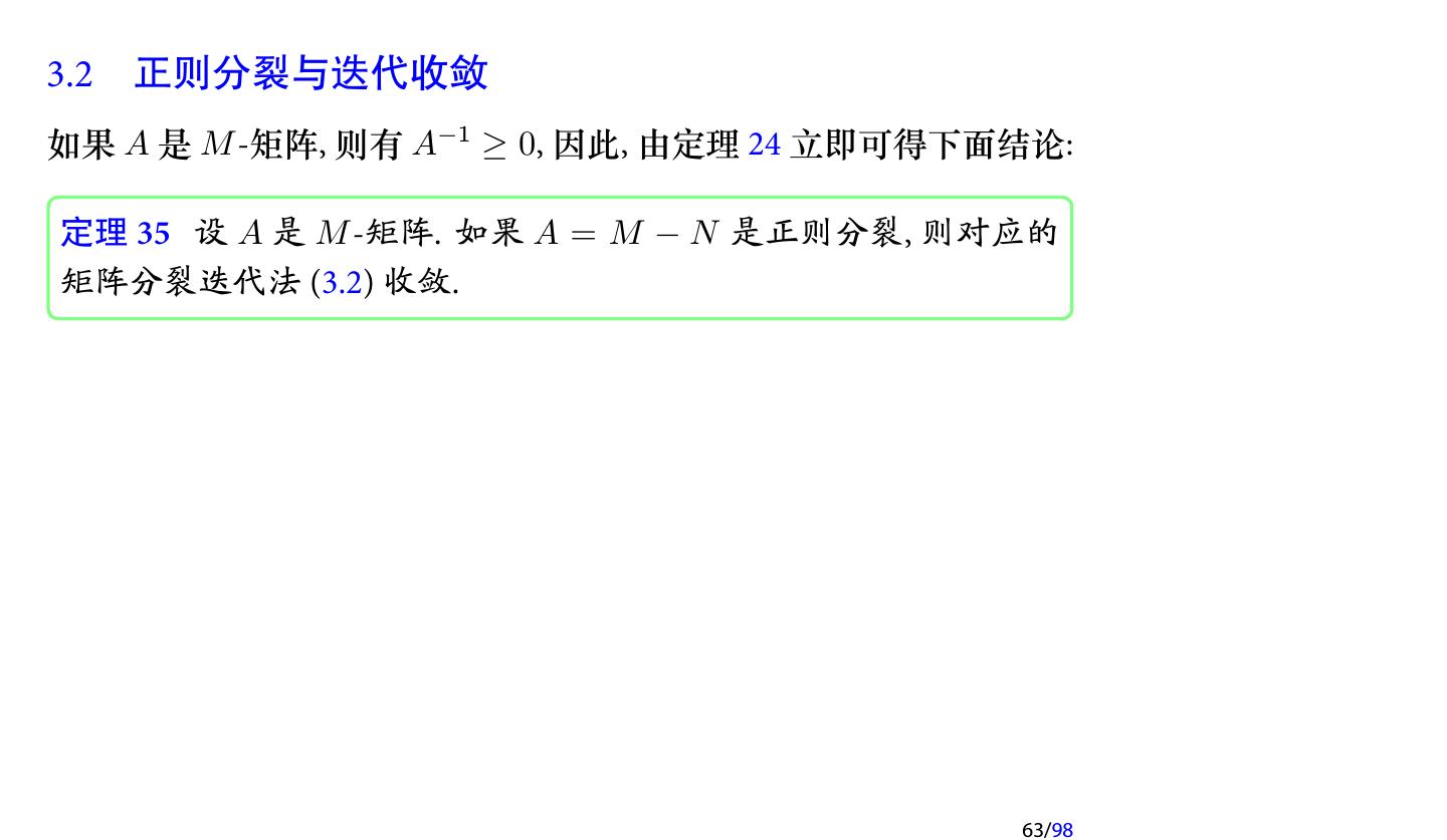 28 .2 收敛性分析 2.1 迭代法的收敛性 2.2 不可约对角占优矩阵 2.3 对称正定矩阵 2.4 相容次序 28/98