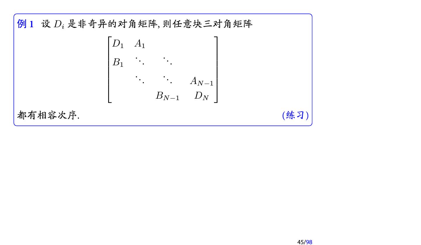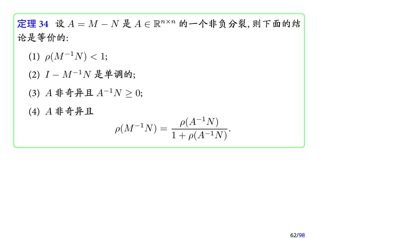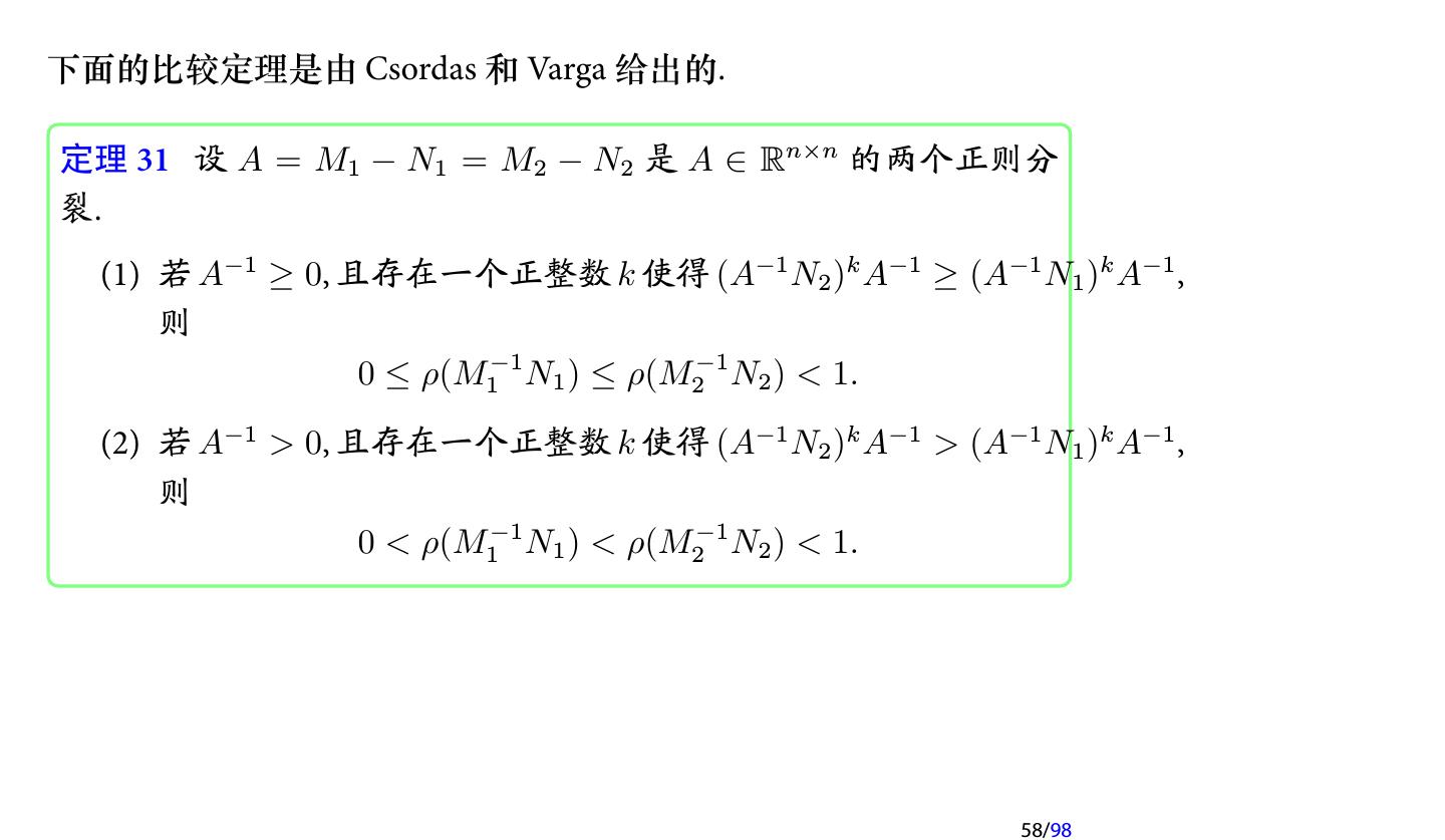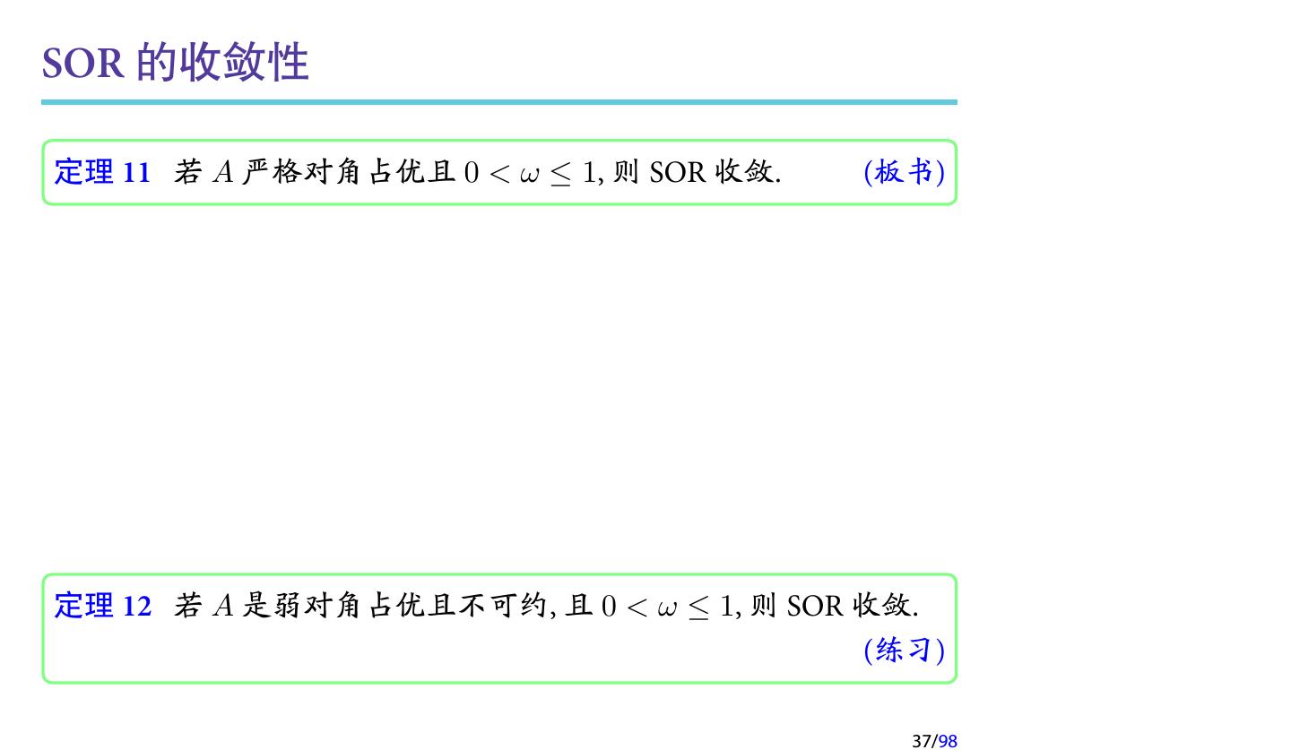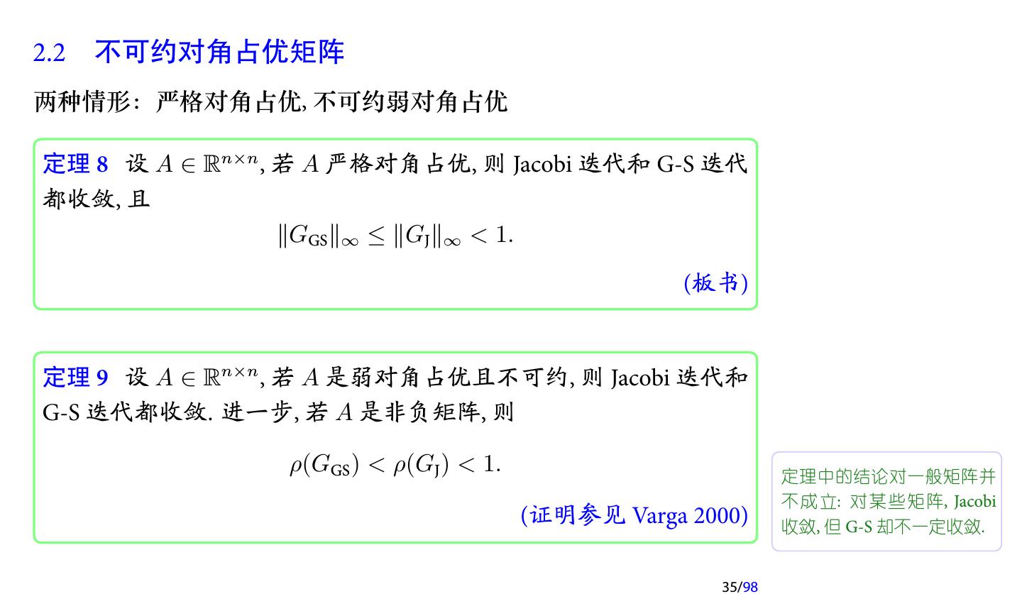 28 .2 收敛性分析 2.1 迭代法的收敛性 2.2 不可约对角占优矩阵 2.3 对称正定矩阵 2.4 相容次序 28/98