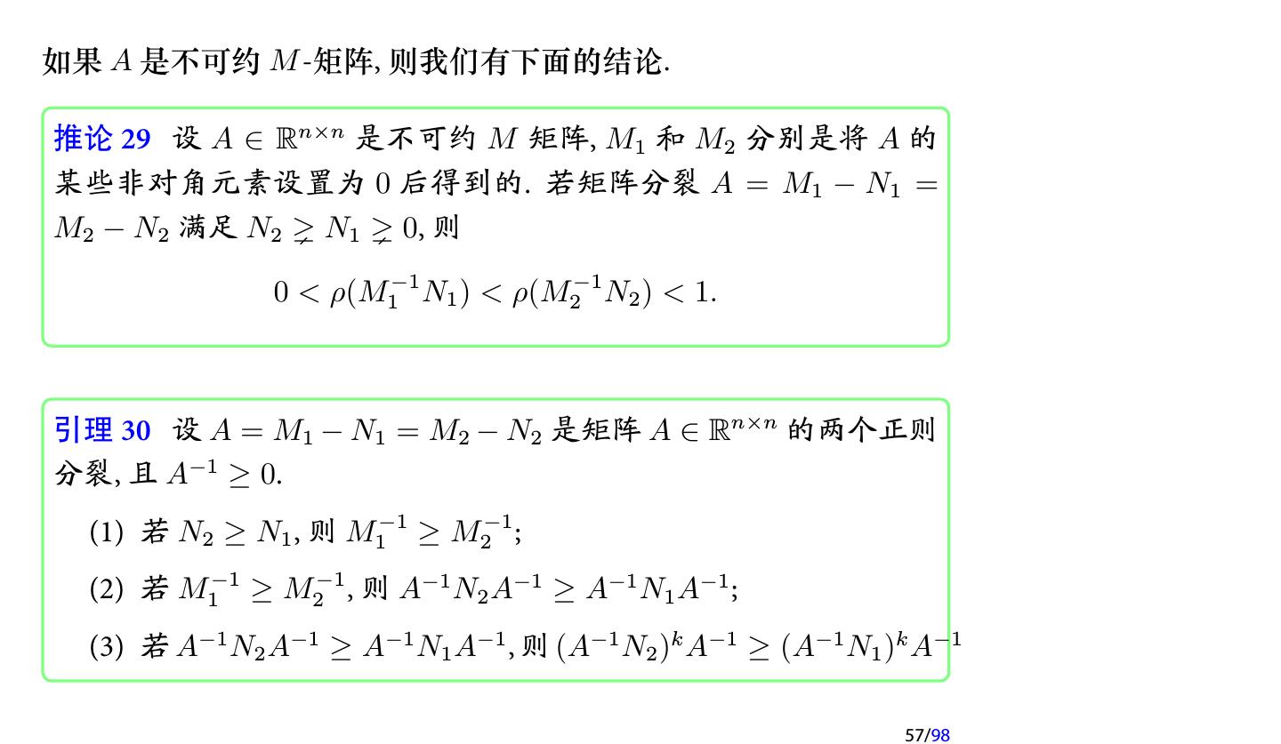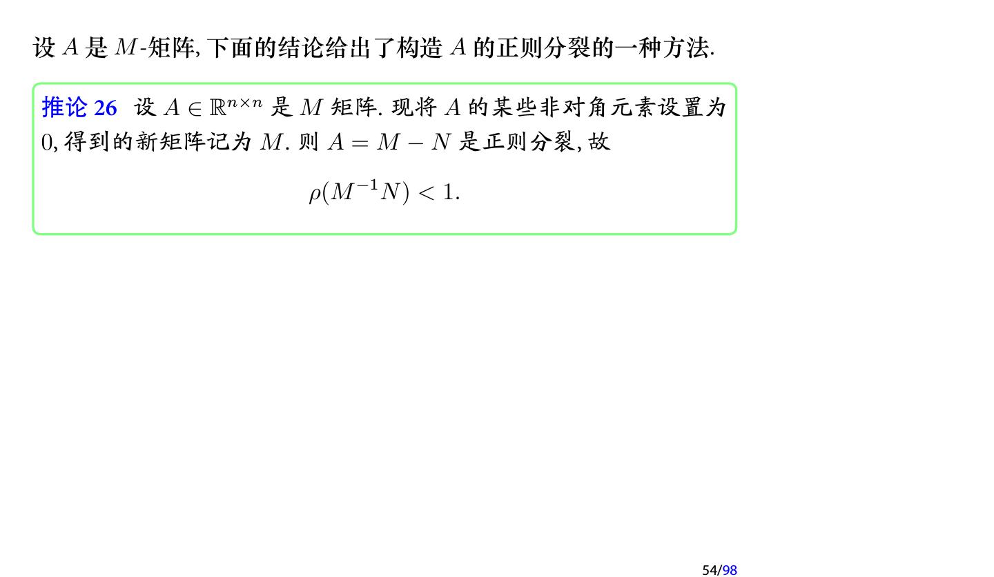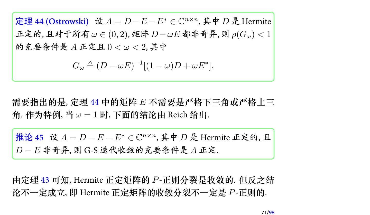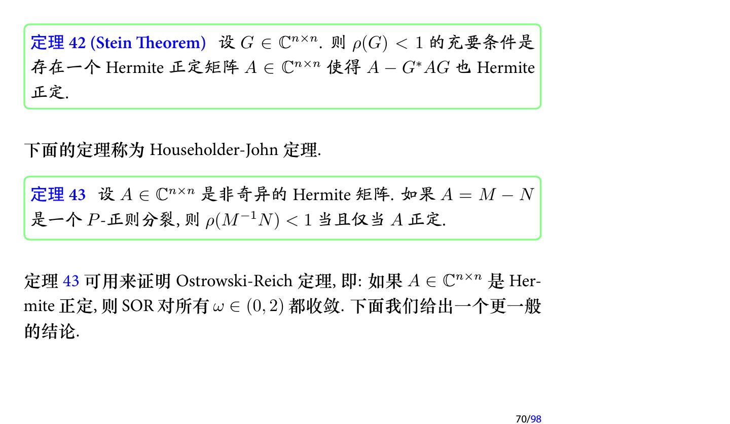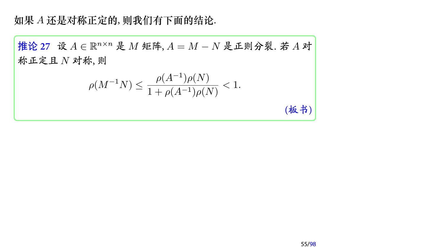 28 .2 收敛性分析 2.1 迭代法的收敛性 2.2 不可约对角占优矩阵 2.3 对称正定矩阵 2.4 相容次序 28/98