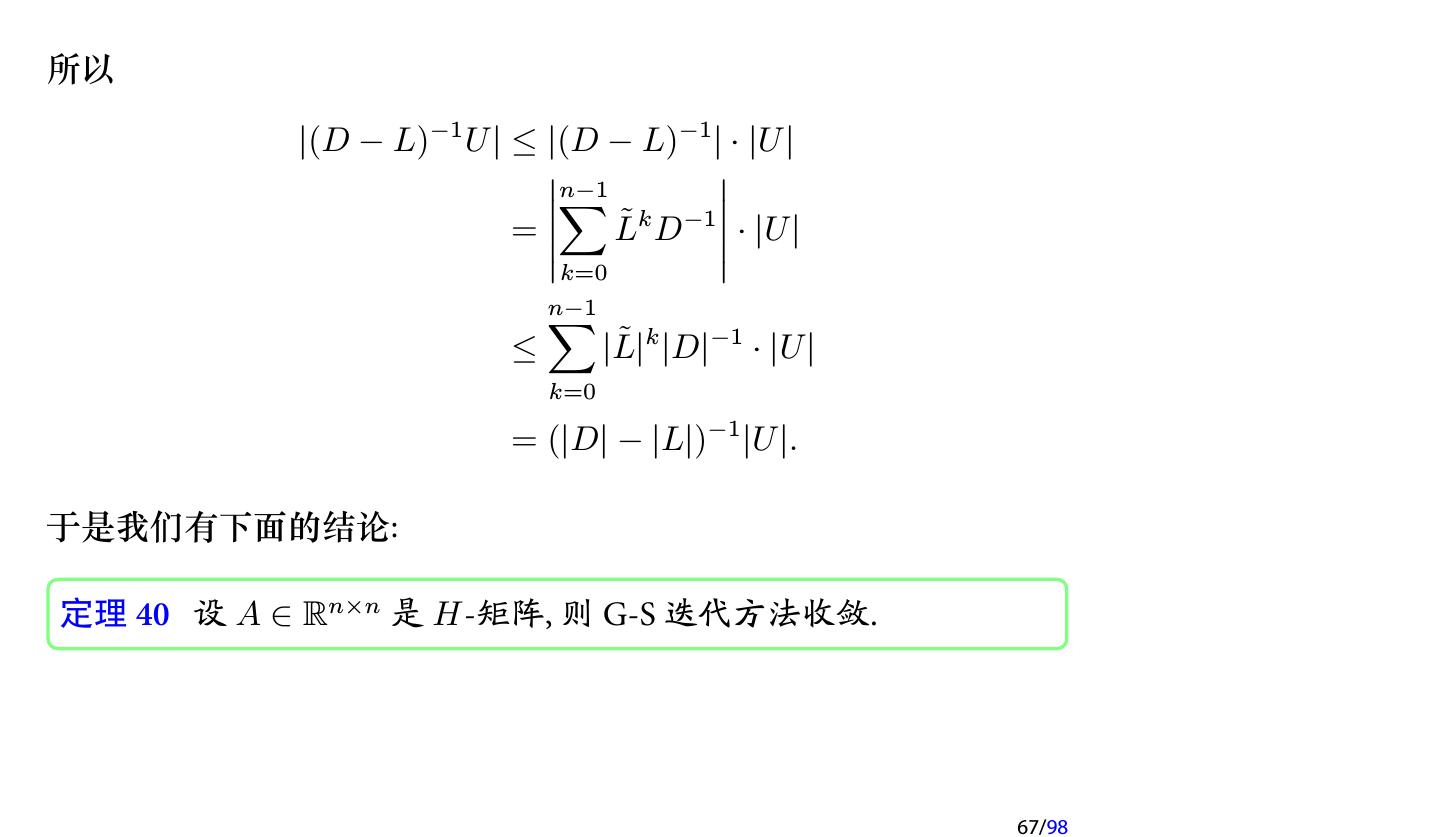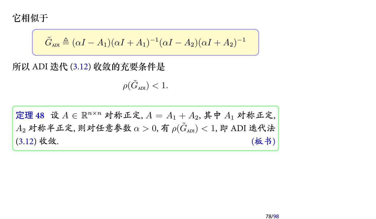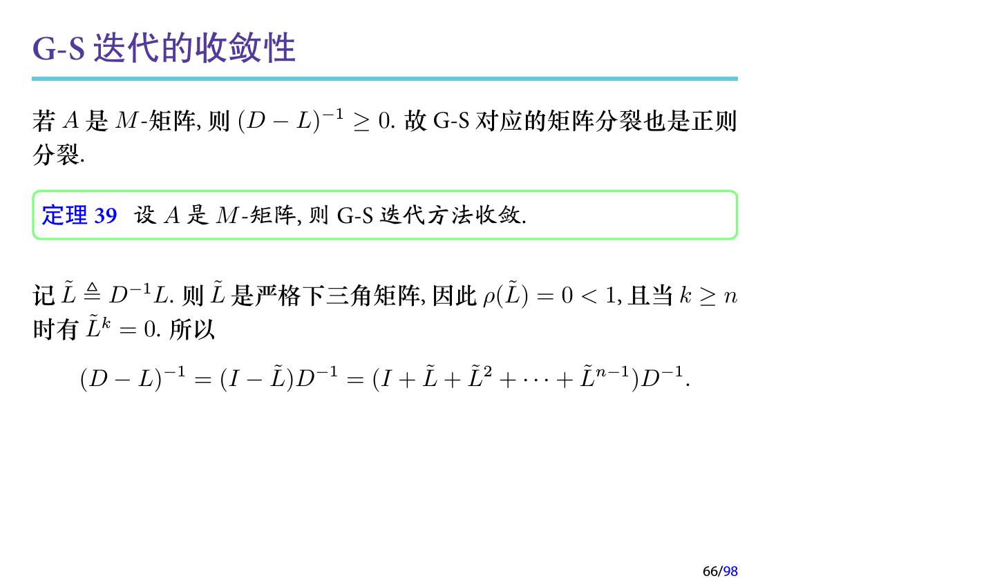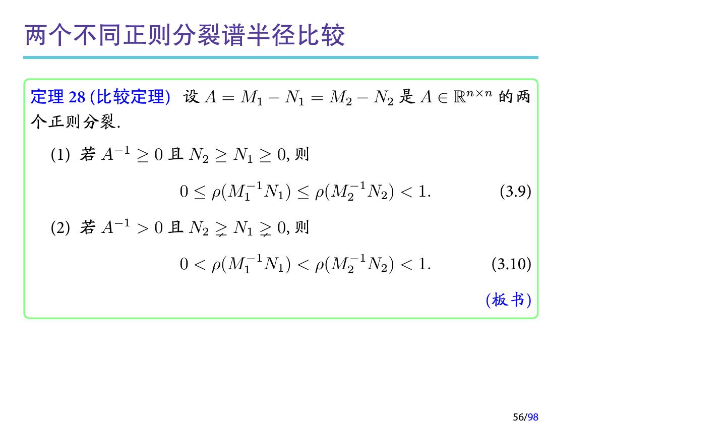 28 .2 收敛性分析 2.1 迭代法的收敛性 2.2 不可约对角占优矩阵 2.3 对称正定矩阵 2.4 相容次序 28/98