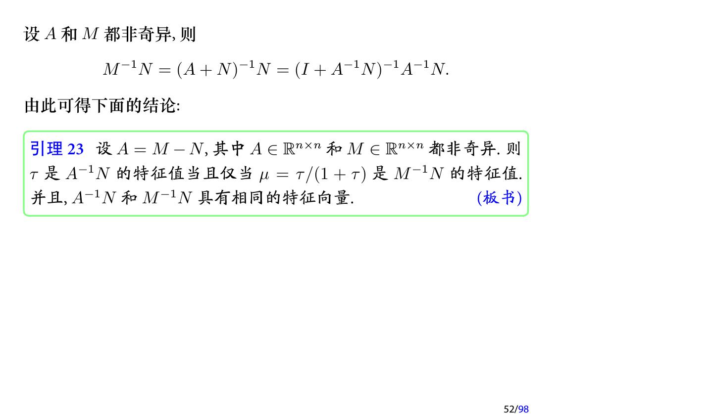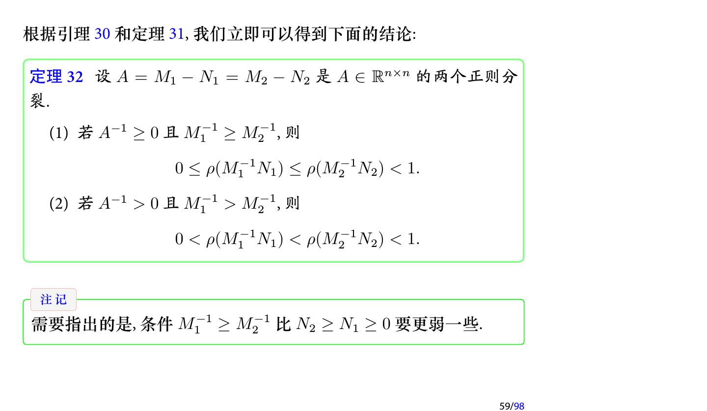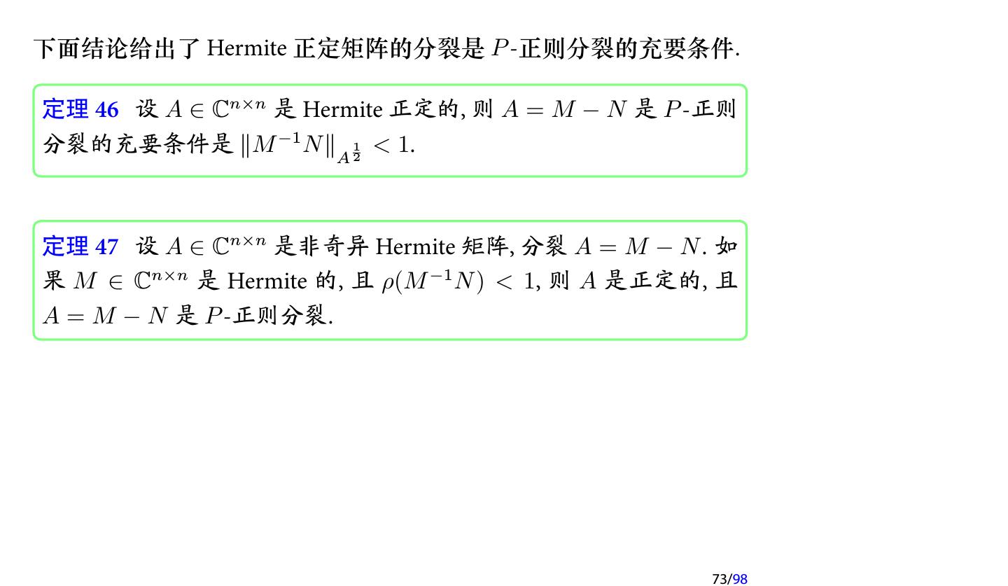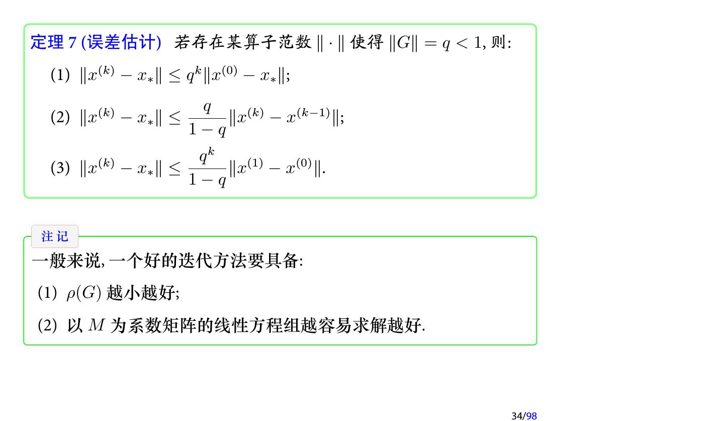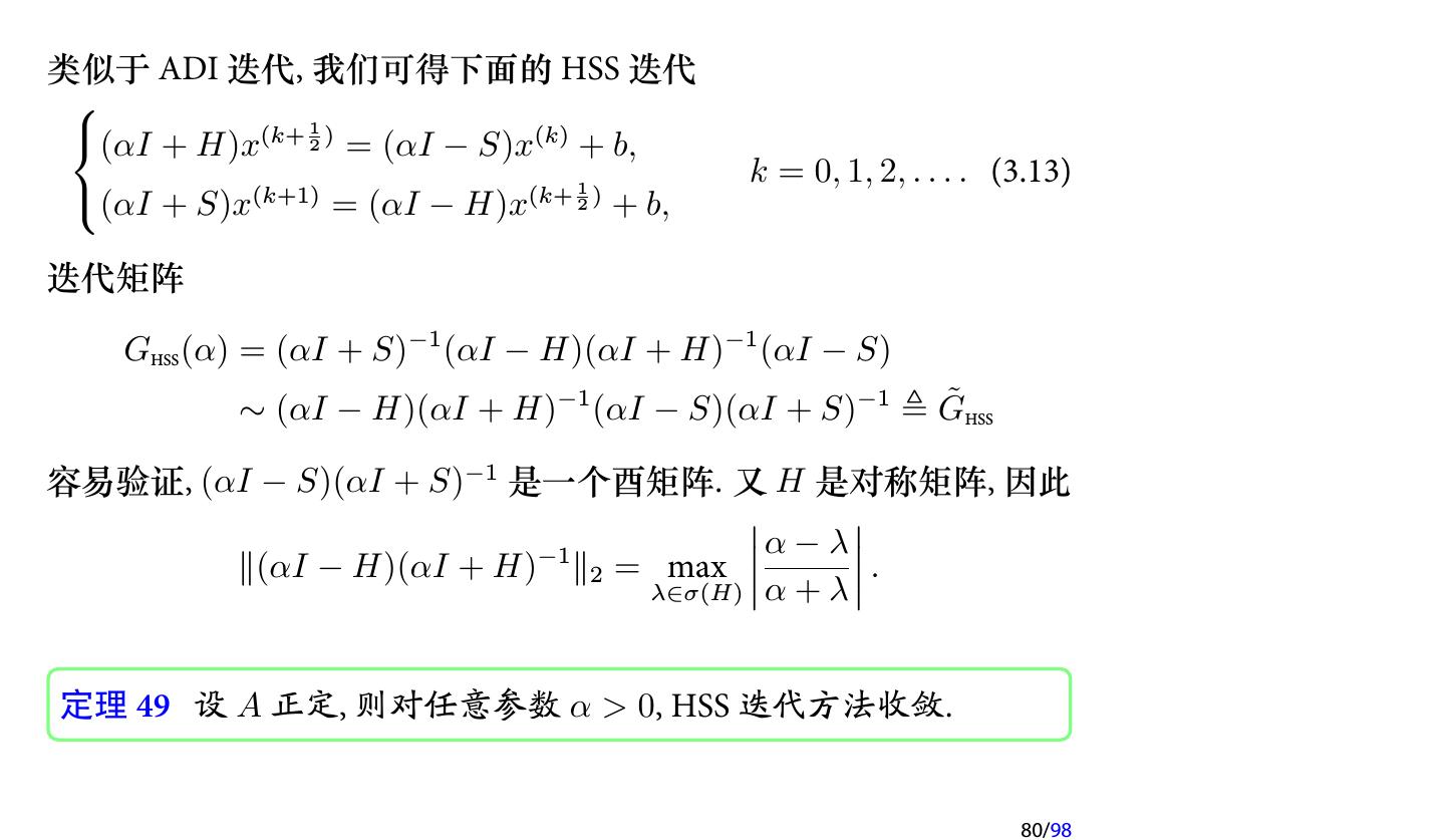 28 .2 收敛性分析 2.1 迭代法的收敛性 2.2 不可约对角占优矩阵 2.3 对称正定矩阵 2.4 相容次序 28/98