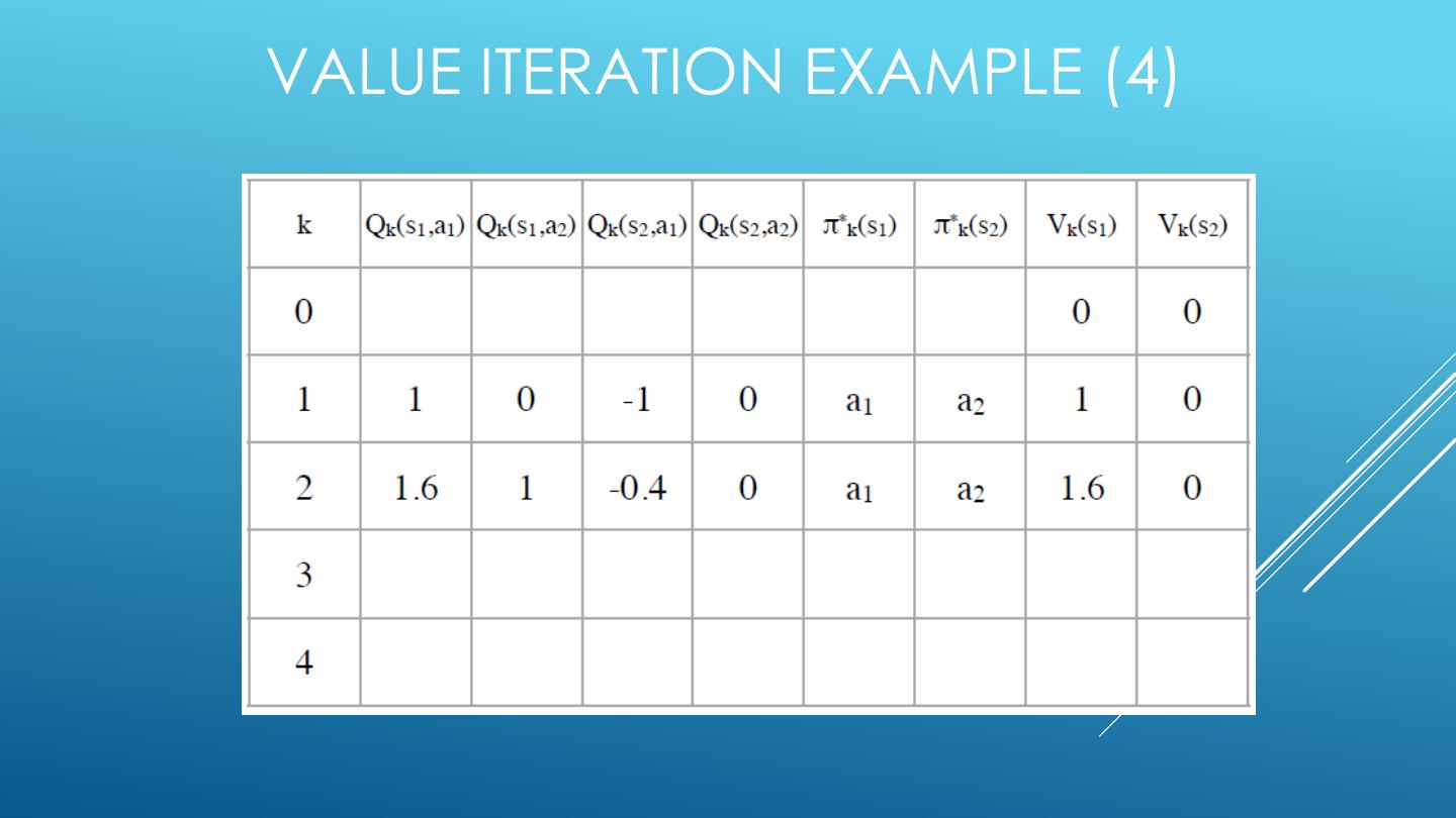 26 . 2-STATE FINITE HORIZON EXAMPLE <A1, 1.0, -1> <A1, 0.6, +1> <A2, 1.0, +0> S1 S2 <A1, 0.4, +1> <A2, 1.0, +0> States: S1, S2 Actions: A1,A2 Edges: <action, probability, value>