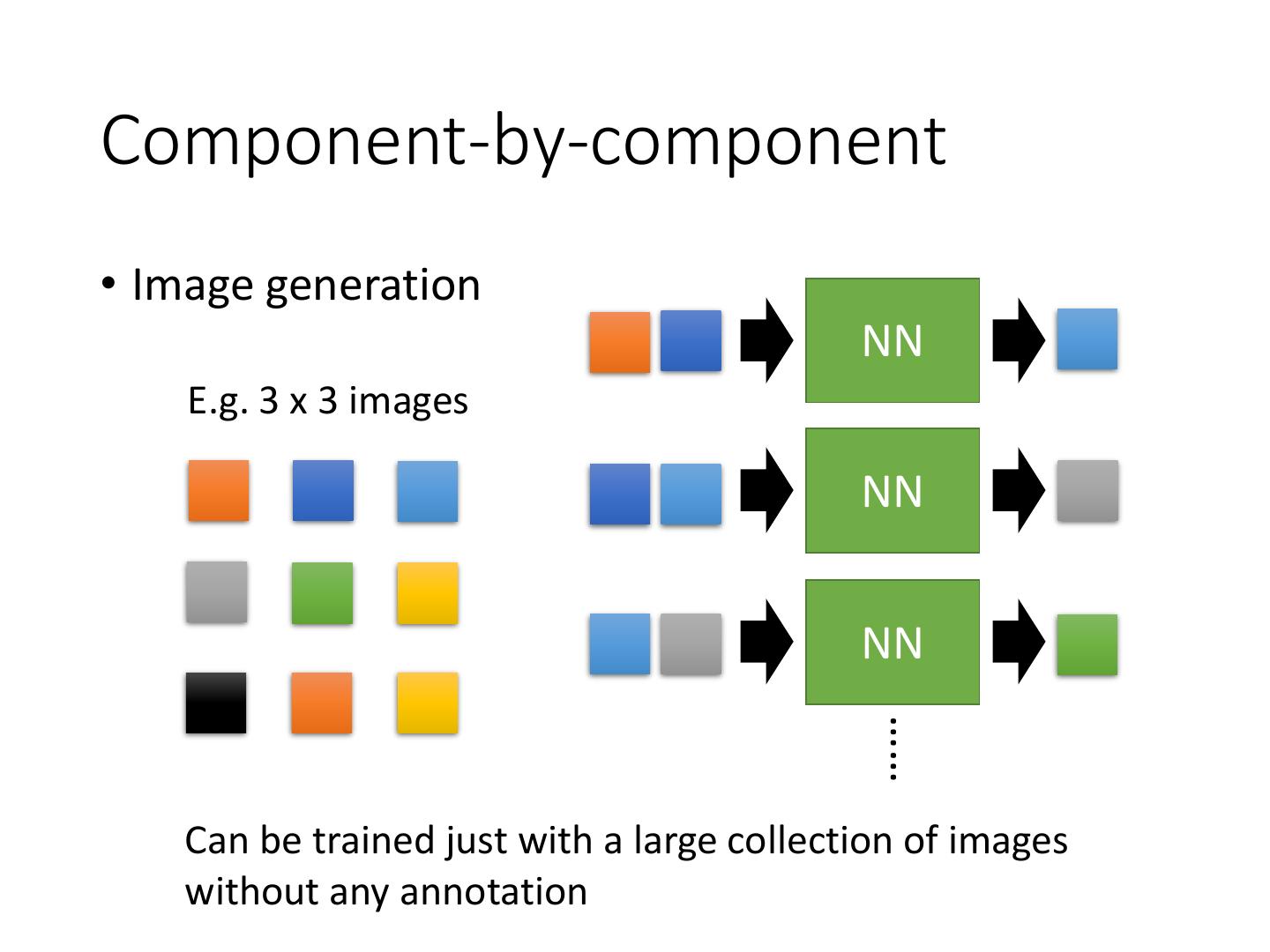 7 .Component-by-component • Image generation NN E.g. 3 x 3 images NN NN …… Can be trained just with a large collection of images without any annotation