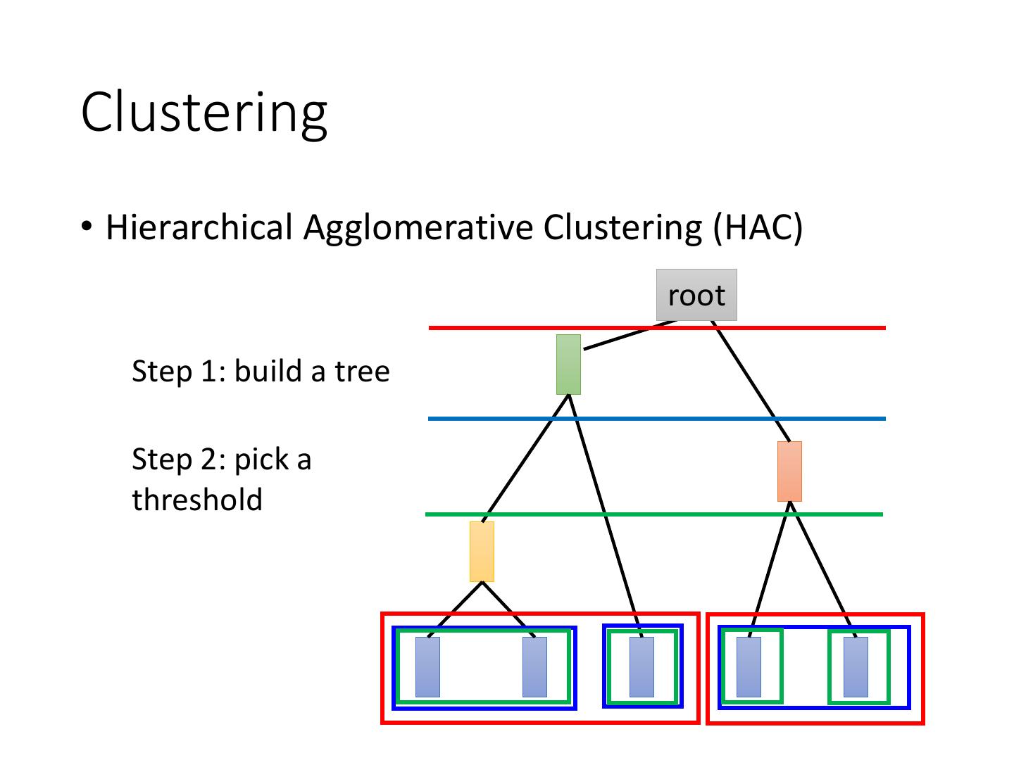 6 .Clustering • Hierarchical Agglomerative Clustering (HAC) root Step 1: build a tree Step 2: pick a threshold