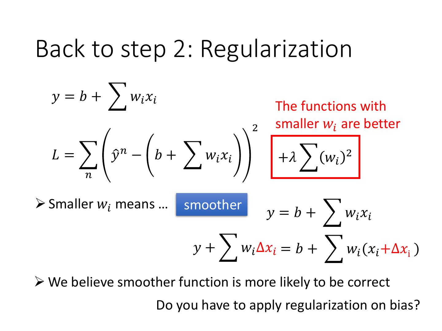 17 .Step 3: Gradient Descent • Formulation of 𝜕𝐿Τ𝜕𝑤 and 𝜕𝐿Τ𝜕𝑏 10 2 𝑛 𝑛 𝐿 𝑤, 𝑏 = 𝑦ො − 𝑏 + 𝑤 ∙ 𝑥𝑐𝑝 𝑛=1 10 𝜕𝐿 =? 2 𝑦ො 𝑛 − 𝑏 + 𝑤 ∙ 𝑥𝑐𝑝 𝑛 𝑛 −𝑥𝑐𝑝 𝜕𝑤 𝑛=1 𝜕𝐿 =? 𝜕𝑏