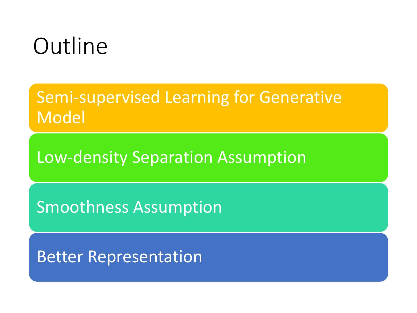 5 .Outline Semi-supervised Learning for Generative Model Low-density Separation Assumption Smoothness Assumption Better Representation