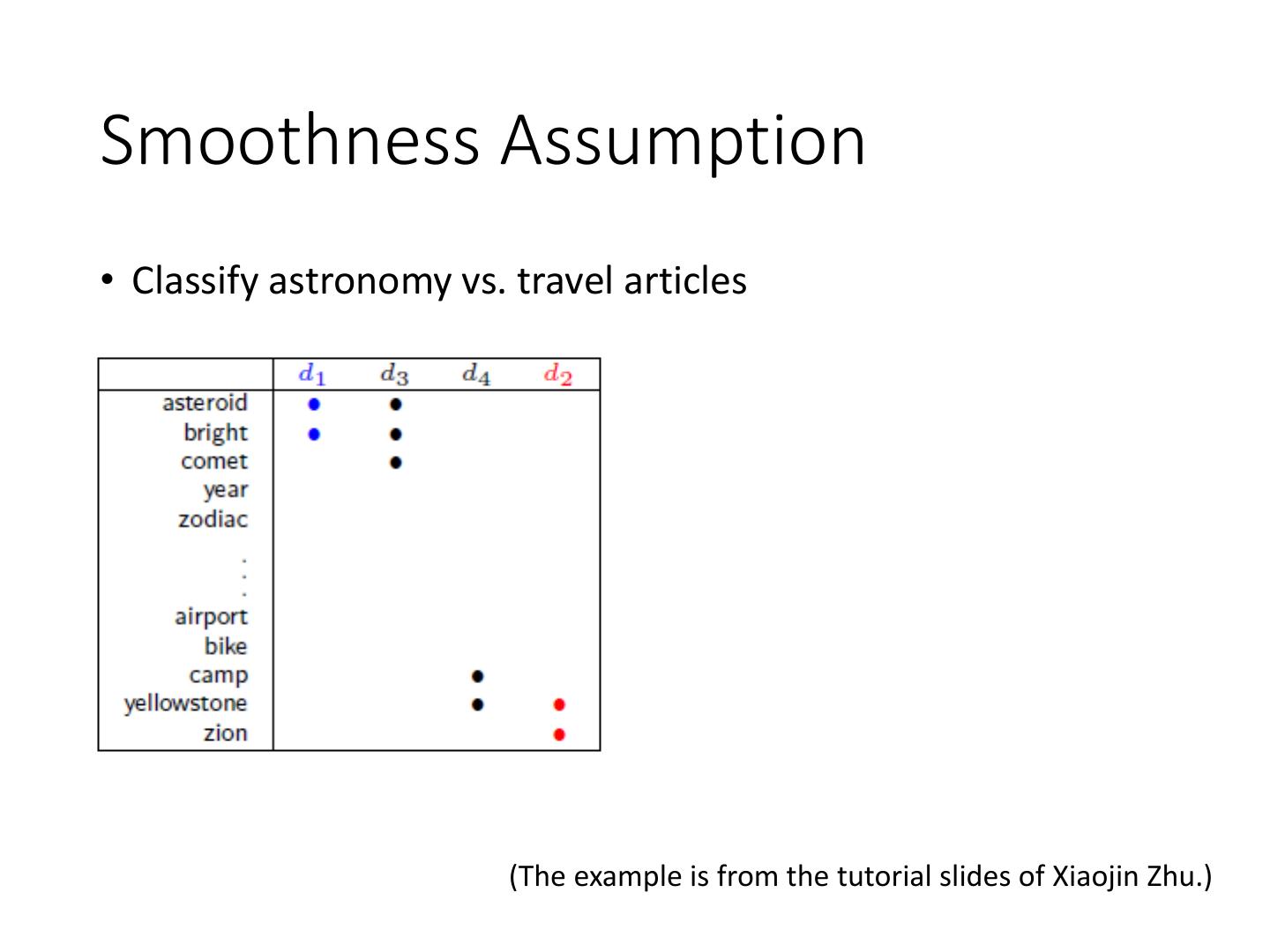 21 .Smoothness Assumption • Classify astronomy vs. travel articles (The example is from the tutorial slides of Xiaojin Zhu.)