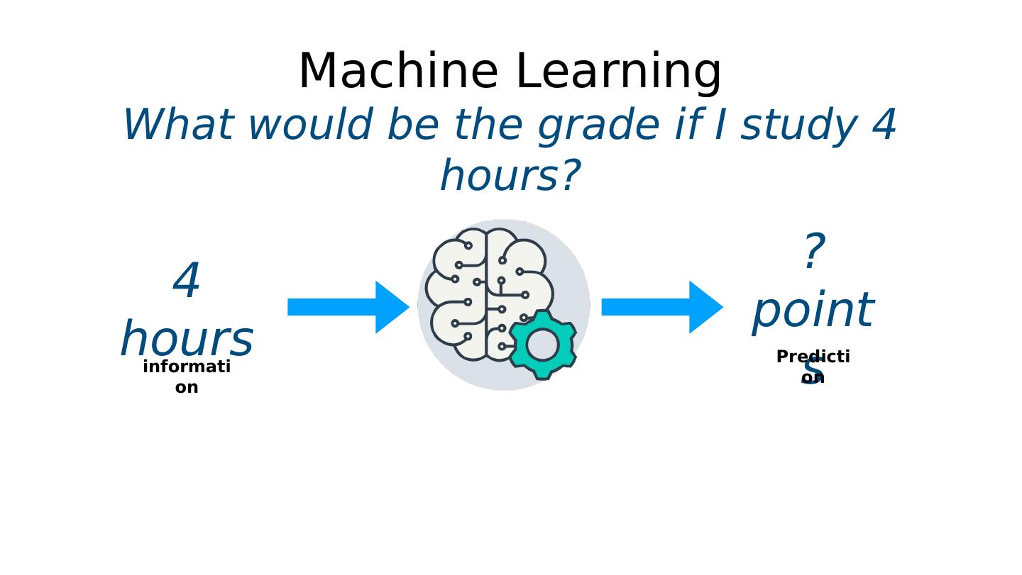 22 .Machine Learning What would be the grade if I study 4 hours? ? points information Prediction 4 hours