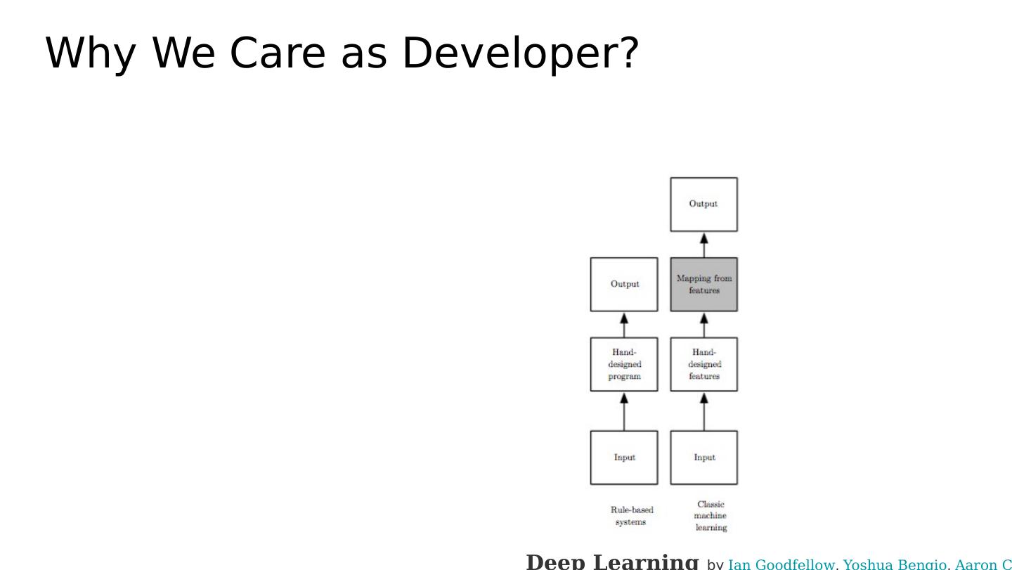 16 .Deep Learning by Ian Goodfellow , Yoshua Bengio , Aaron Courville Why We Care as Developer?