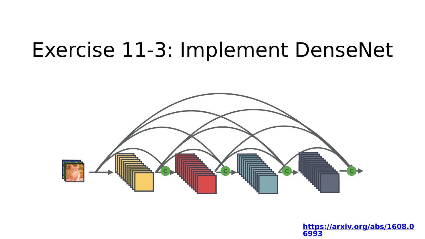 24 .Inception Module class InceptionA(nn.Module): def __init__ ( self , in_channels): super (InceptionA, self ). __init__ () self .branch1x1 = nn.Conv2d(in_channels, 16 , kernel_size = 1 ) self .branch5x5_1 = nn.Conv2d(in_channels, 16 , kernel_size = 1 ) self .branch5x5_2 = nn.Conv2d( 16 , 24 , kernel_size = 5 , padding = 2 ) self .branch3x3dbl_1 = nn.Conv2d(in_channels, 16 , kernel_size = 1 ) self .branch3x3dbl_2 = nn.Conv2d( 16 , 24 , kernel_size = 3 , padding = 1 ) self .branch3x3dbl_3 = nn.Conv2d( 24 , 24 , kernel_size = 3 , padding = 1 ) self .branch_pool = nn.Conv2d(in_channels, 24 , kernel_size = 1 ) def forward( self , x): branch1x1 = self .branch1x1(x) branch5x5 = self .branch5x5_1(x) branch5x5 = self .branch5x5_2(branch5x5) branch3x3dbl = self .branch3x3dbl_1(x) branch3x3dbl = self .branch3x3dbl_2(branch3x3dbl) branch3x3dbl = self .branch3x3dbl_3(branch3x3dbl) branch_pool = F.avg_pool2d(x, kernel_size = 3 , stride = 1 , padding = 1 ) branch_pool = self .branch_pool(branch_pool) outputs = [branch1x1, branch5x5, branch3x3dbl, branch_pool] return torch.cat(outputs, 1 ) class Net(nn.Module): def __init__ ( self ): super (Net, self ). __init__ () self .conv1 = nn.Conv2d( 1 , 10 , kernel_size = 5 ) self .conv2 = nn.Conv2d( 88 , 20 , kernel_size = 5 ) self .incept1 = InceptionA( in_channels = 10 ) self .incept2 = InceptionA( in_channels = 20 ) self .mp = nn.MaxPool2d( 2 ) self .fc = nn.Linear( 1408 , 10 ) def forward( self , x): in_size = x.size( 0 ) x = F.relu( self .mp( self .conv1(x))) x = self .incept1(x) x = F.relu( self .mp( self .conv2(x))) x = self .incept2(x) x = x.view(in_size, - 1 ) # flatten the tensor x = self .fc(x) return F.log_softmax(x) https://github.com/.../torchvision/models/inception.py