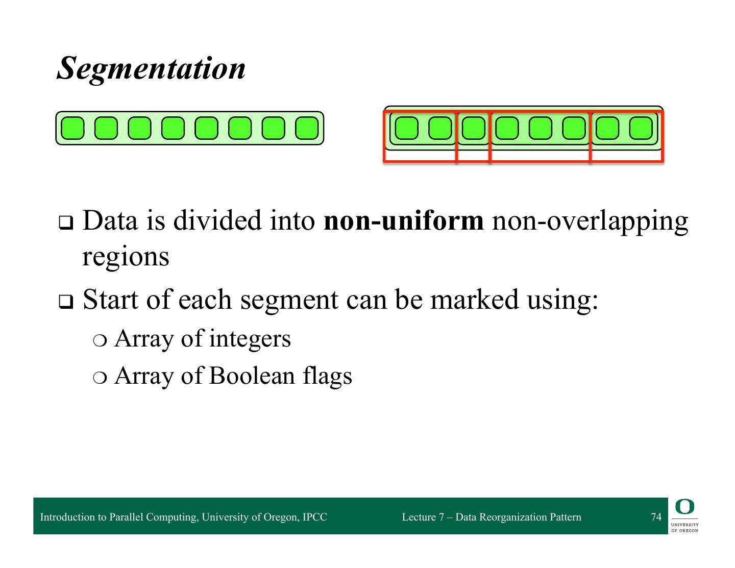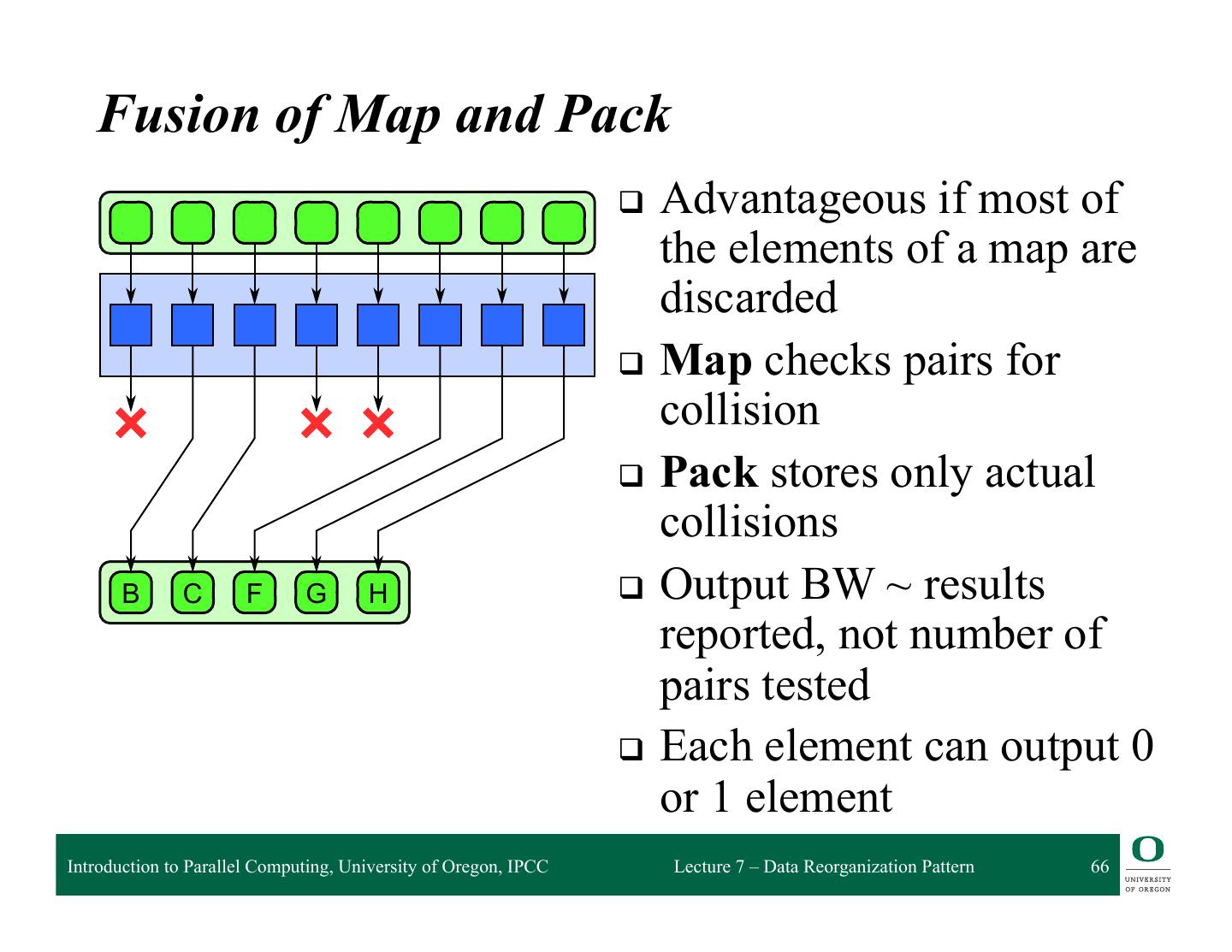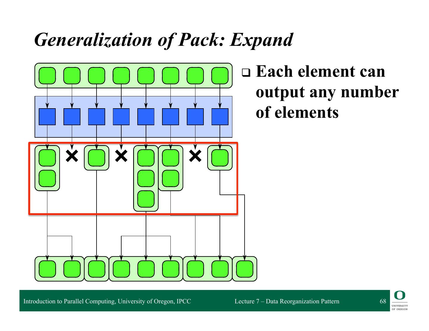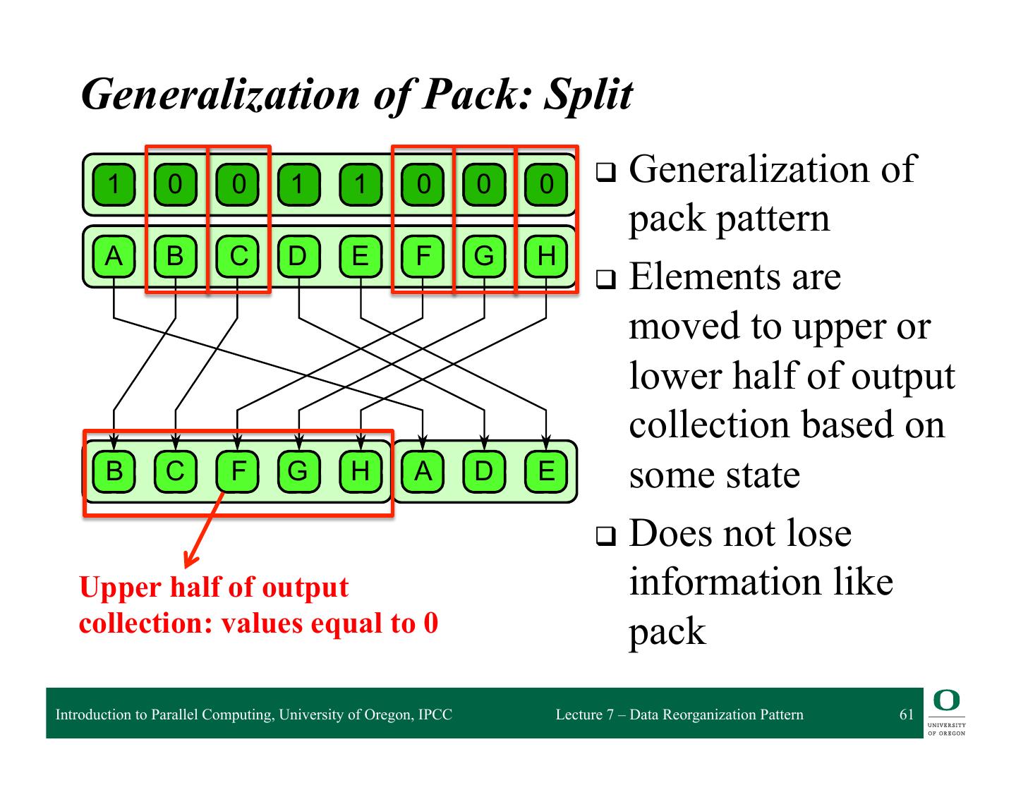28 . More about Zip q Can be generalized to more elements q Can zip data of unlike types Introduction to Parallel Computing, University of Oregon, IPCC Lecture 7 – Data Reorganization Pattern 28