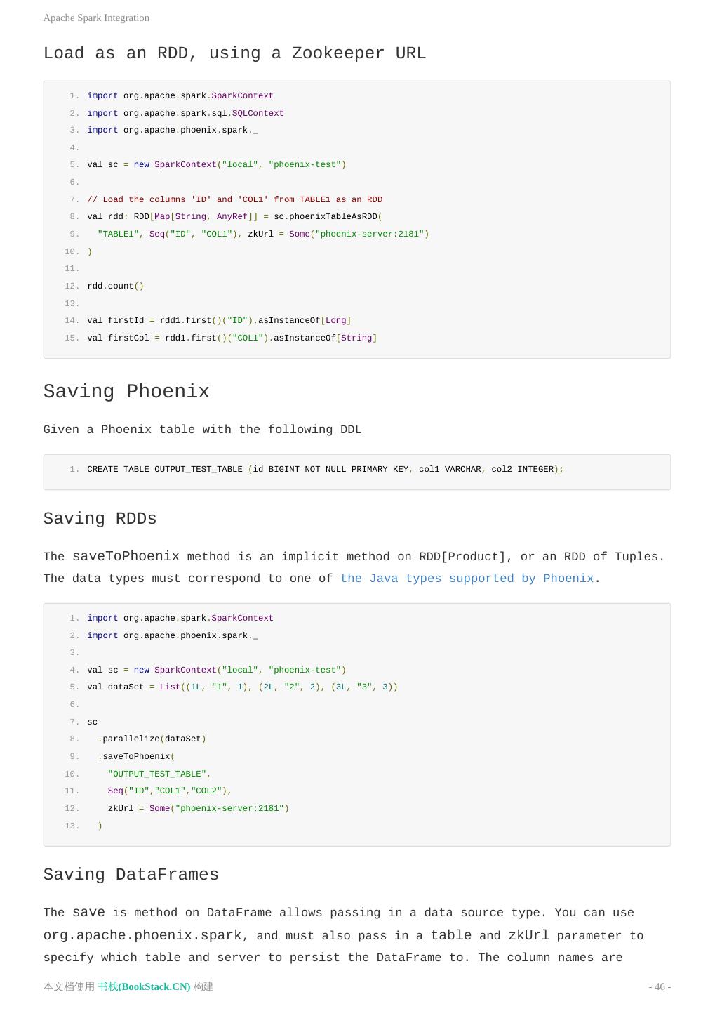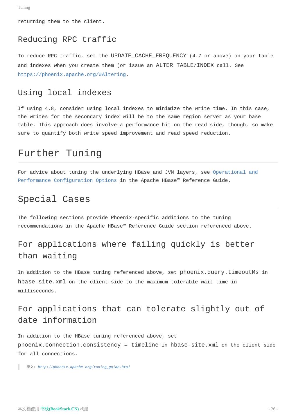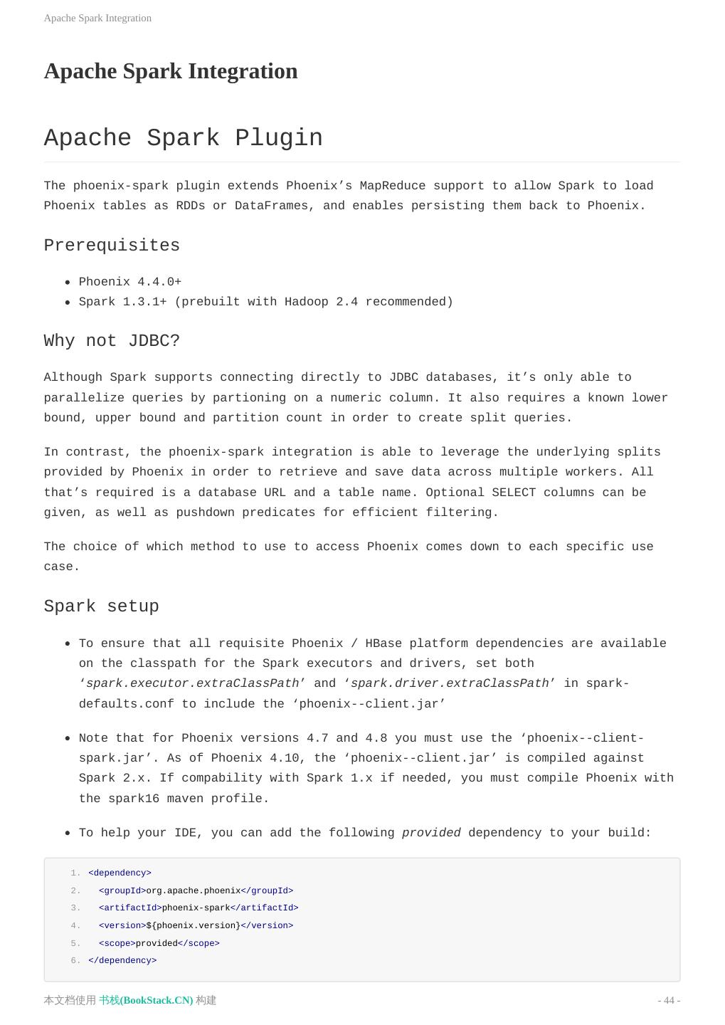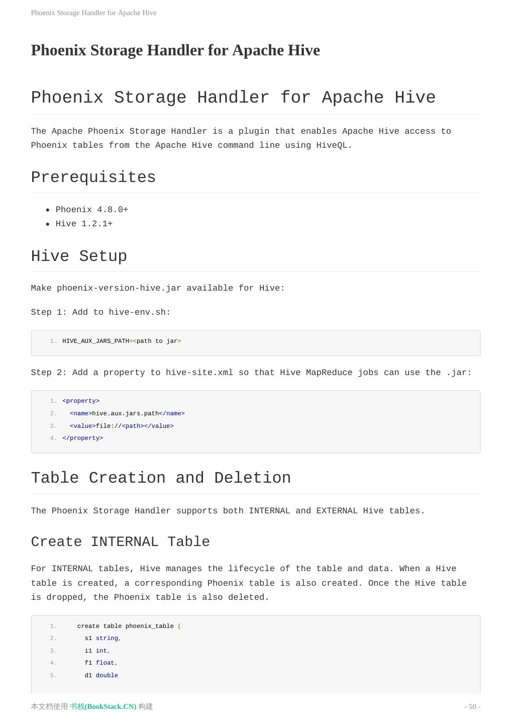 3 .致谢 致谢 当前文档 《Apache Phoenix使用文档(英文)》 由 进击的皇虫 使用 书栈(BookStack.CN) 进行构建,生 成于 2018-07-15。 书栈(BookStack.CN) 仅提供文档编写、整理、归类等功能,以及对文档内容的生成和导出工具。 文档内容由网友们编写和整理,书栈(BookStack.CN) 难以确认文档内容知识点是否错漏。如果您在阅读文档 获取知识的时候,发现文档内容有不恰当的地方,请向我们反馈,让我们共同携手,将知识准确、高效且有效地传递 给每一个人。 同时,如果您在日常工作、生活和学习中遇到有价值有营养的知识文档,欢迎分享到 书栈(BookStack.CN) , 为知识的传承献上您的一份力量! 如果当前文档生成时间太久,请到 书栈(BookStack.CN) 获取最新的文档,以跟上知识更新换代的步伐。 文档地址:http://www.bookstack.cn/books/Apache-Phoenix-en 书栈官网:http://www.bookstack.cn 书栈开源:https://github.com/TruthHun 分享,让知识传承更久远! 感谢知识的创造者,感谢知识的分享者,也感谢每一位阅读到此处的读者,因为我们 都将成为知识的传承者。 本文档使用 书栈(BookStack.CN) 构建 - 3 -