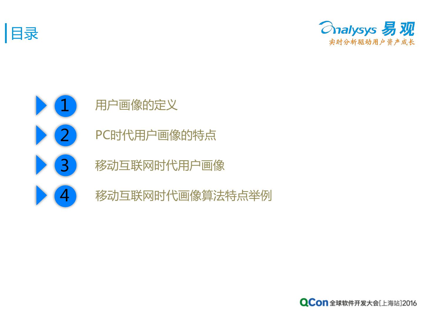 13 .目录 1 用户画像的定义 2 PC时代用户画像的特点 3 移动互联网时代用户画像 4 移动互联网时代画像算法特点举例