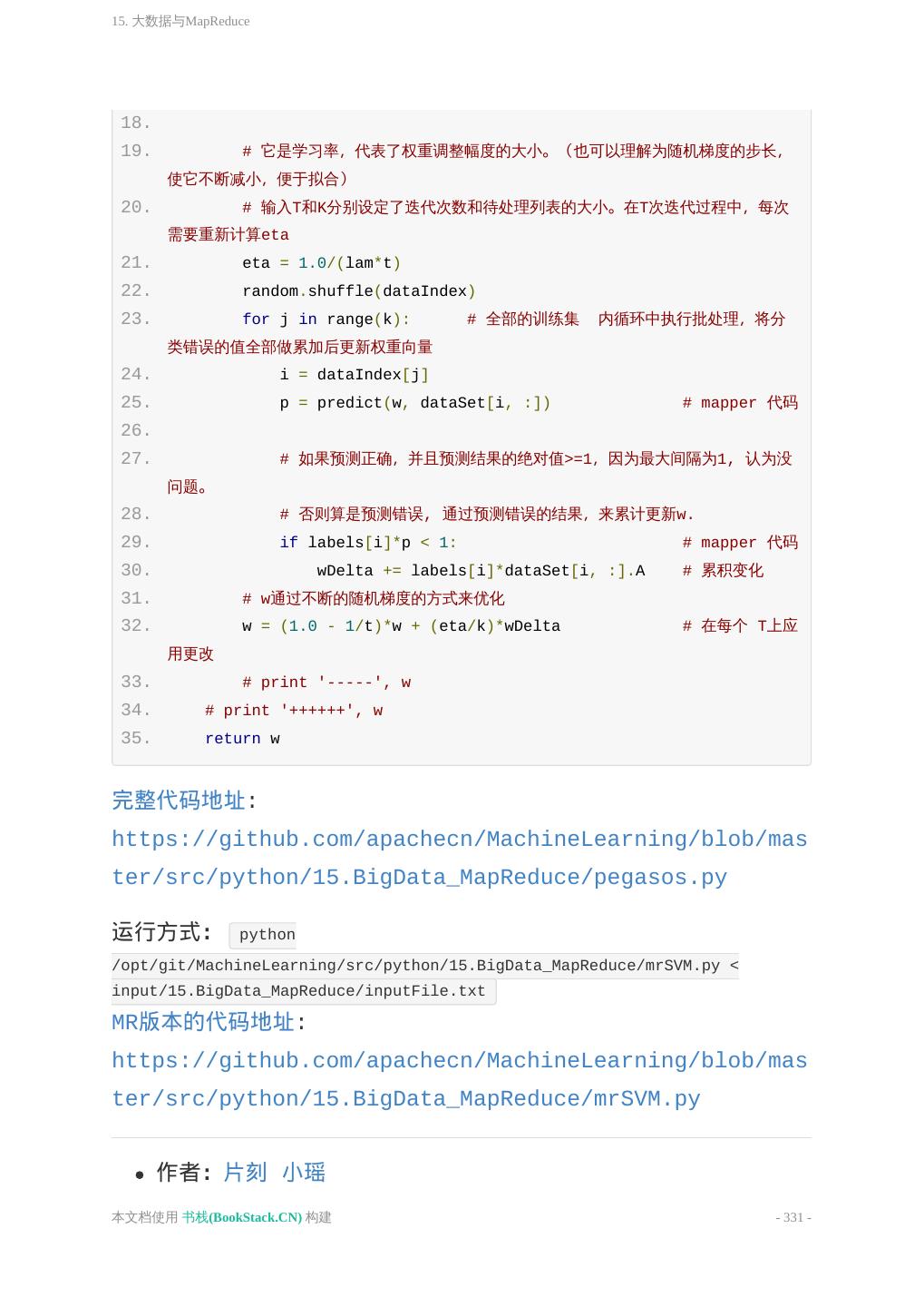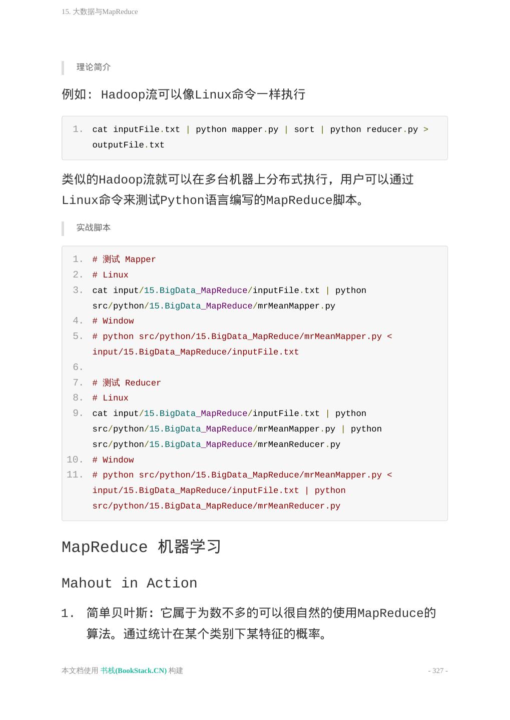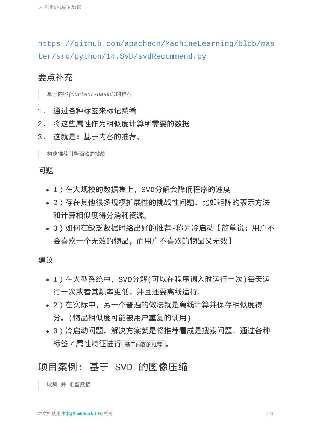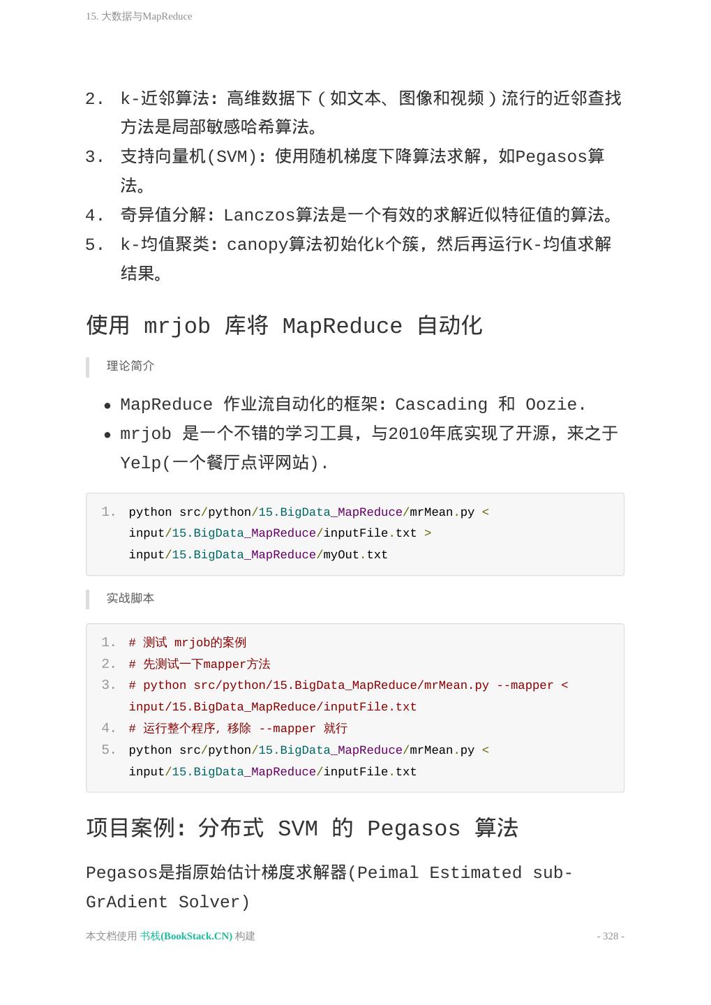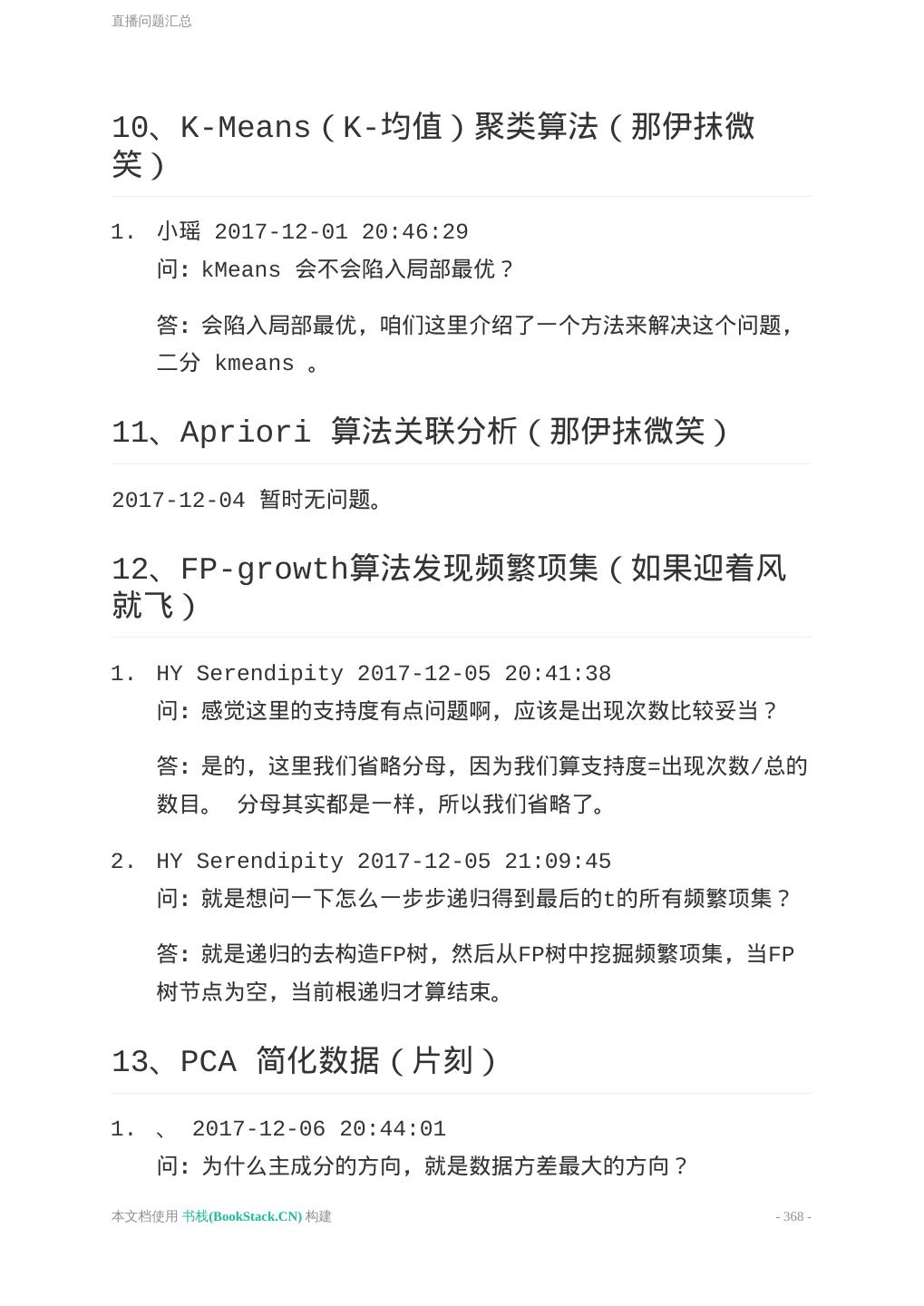 7 .阅前必读 机器学习 第 12 章: FP-growth 高效发现 频繁 @程威 842725815 实战 频繁项集 项集 机器学习 第 13 章: 利用 PCA 来简化数据 工具 @廖立娟 835670618 实战 机器学习 第 14 章: 利用 SVD 来简化数据 工具 @张俊皓 714974242 实战 机器学习 第 15 章: 大数据与 MapReduce 工具 @范未太 842376188 实战 项目贡献者 @jiangzhonglian(片刻) @wangyangting(那伊抹微笑) @chenyyx(瑶妹) @geekidentity(侯法超) @mikechengwei(Mike) @hello19883(hello19883) @sheepmen(徐鑫) @highfei2011(ibe) @LeeMoonCh(Arithmetic) @caopeirui(Veyron C) @Cugtyt(Cugtyt) 加入方式 企鹅: 529815144(片刻) 1042658081(那伊抹微笑) 190442212(瑶妹) ApacheCN(apache中文网) 维护更新 关于我们 加入我们 网站视频 本文档使用 书栈(BookStack.CN) 构建 - 7 -
