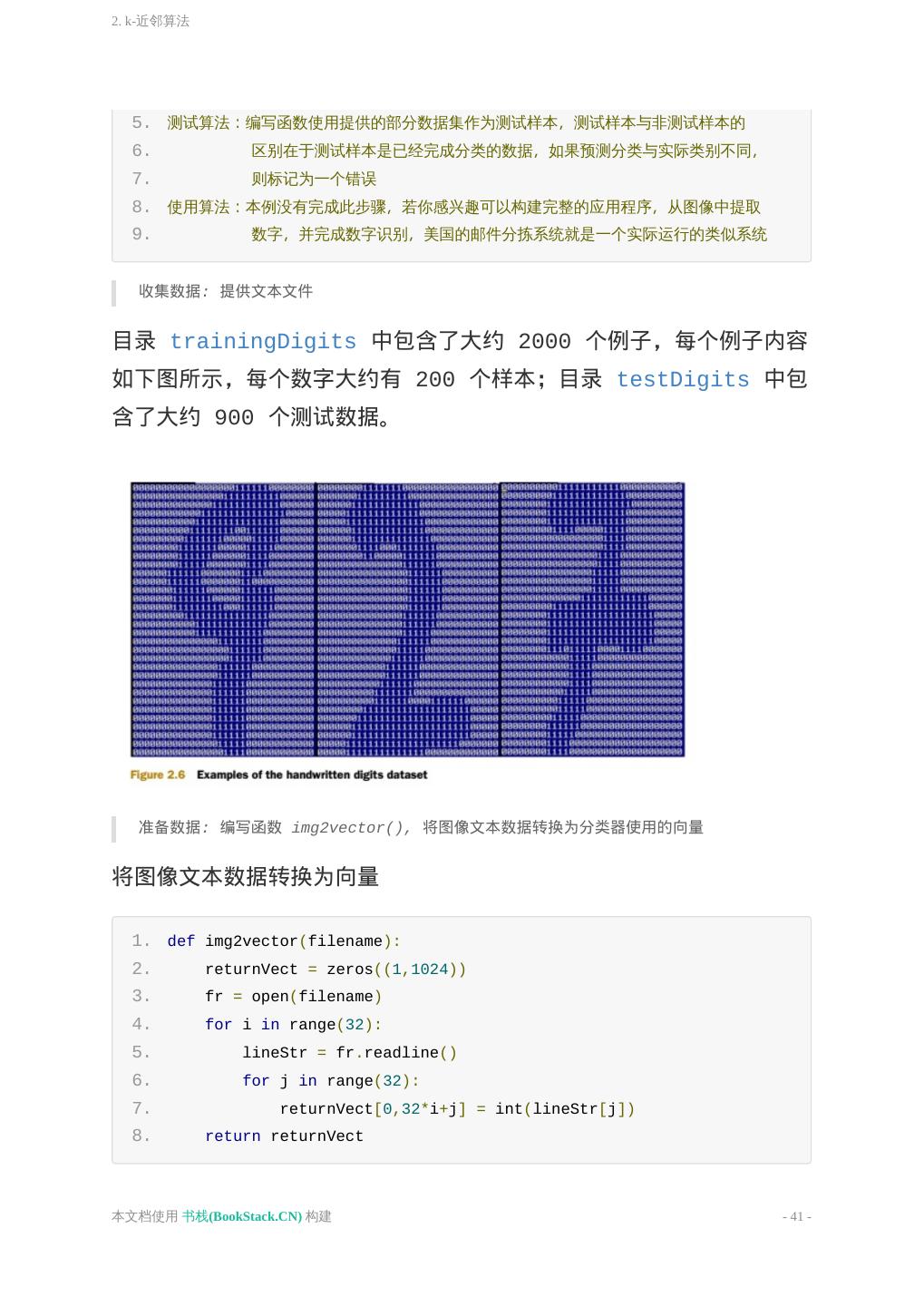 28 .2. k-近邻算法 2. k-近邻算法 第2章 k-近邻算法 KNN 概述 KNN 场景 KNN 原理 KNN 项目案例 项目案例1: 优化约会网站的配对效果 项目概述 开发流程 项目案例2: 手写数字识别系统 项目概述 开发流程 KNN 小结 第2章 k-近邻算法 本文档使用 书栈(BookStack.CN) 构建 - 28 -