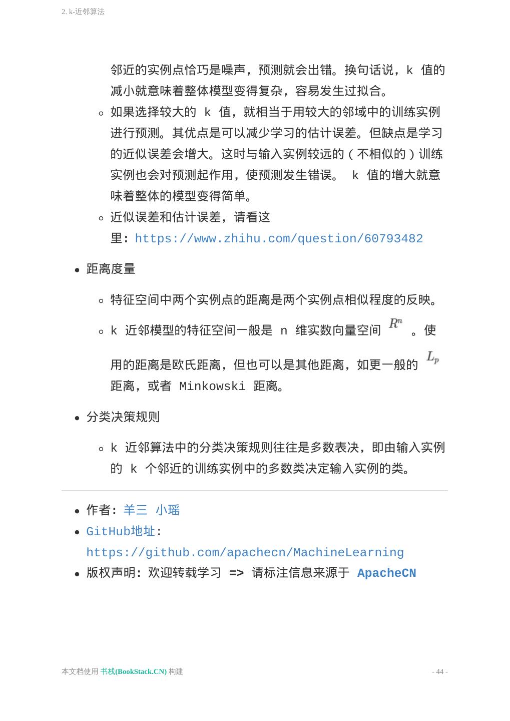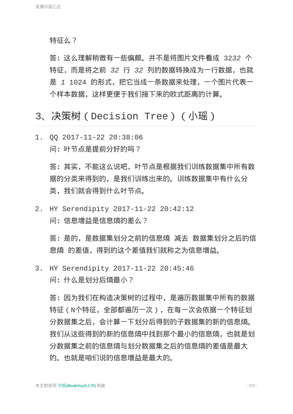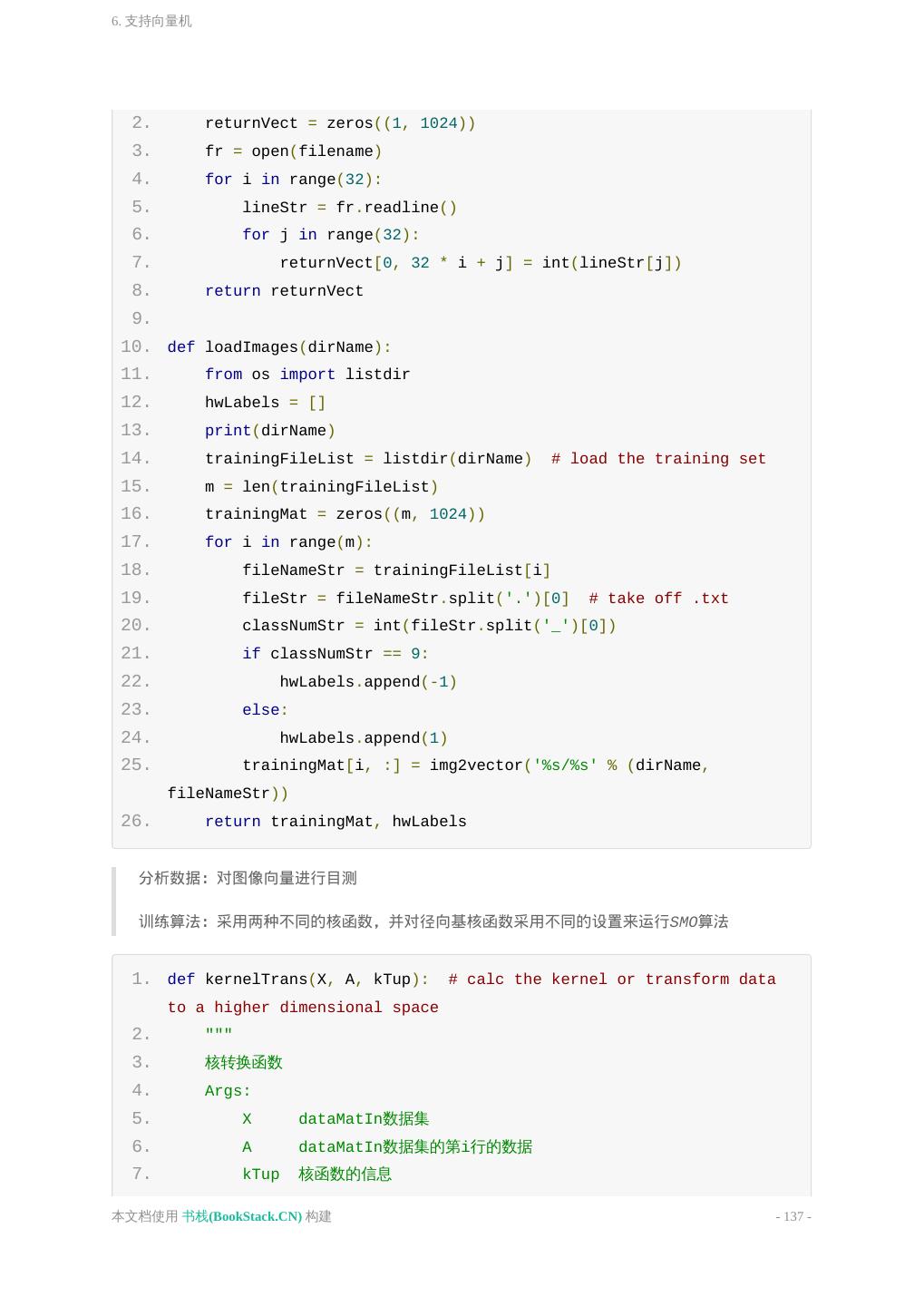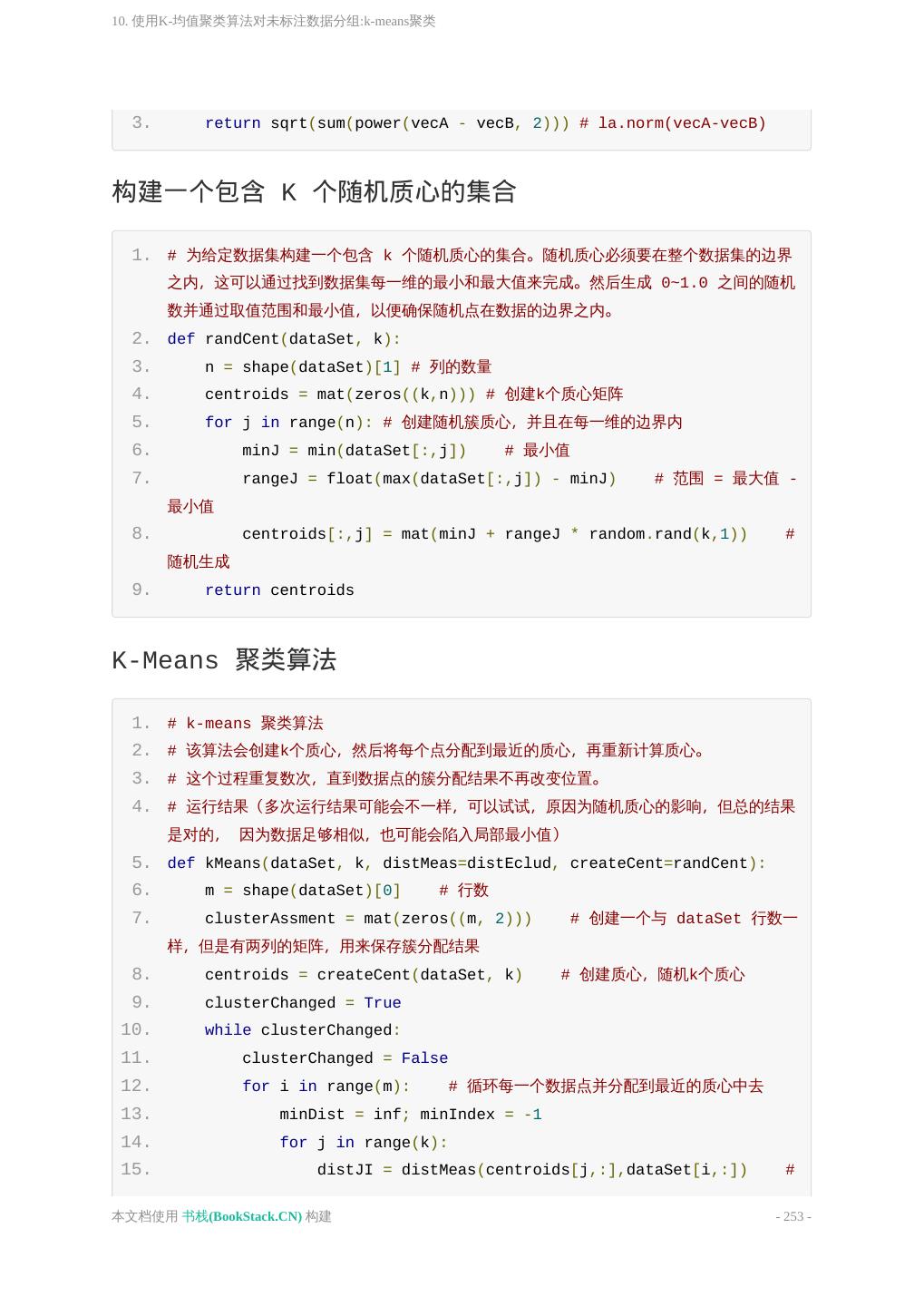2 .致谢 致谢 当前文档 《机器学习实战(Machine Learning in Action)》 由 进击的皇虫 使用 书栈(BookStack.CN) 进行构 建,生成于 2018-02-16。 书栈(BookStack.CN) 仅提供文档编写、整理、归类等功能,以 及对文档内容的生成和导出工具。 文档内容由网友们编写和整理,书栈(BookStack.CN) 难以确认 文档内容知识点是否错漏。如果您在阅读文档获取知识的时候,发现文 档内容有不恰当的地方,请向我们反馈,让我们共同携手,将知识准 确、高效且有效地传递给每一个人。 同时,如果您在日常生活、工作和学习中遇到有价值有营养的知识 文档,欢迎分享到 书栈(BookStack.CN) ,为知识的传承献上您的 一份力量! 如果当前文档生成时间太久,请到 书栈(BookStack.CN) 获取 最新的文档,以跟上知识更新换代的步伐。 文档地 址:http://www.bookstack.cn/books/MachineLearning 书栈官网:http://www.bookstack.cn 书栈开源:https://github.com/TruthHun 分享,让知识传承更久远! 感谢知识的创造者,感谢知识的分享 者,也感谢每一位阅读到此处的读者,因为我们都将成为知识的传承 者。 本文档使用 书栈(BookStack.CN) 构建 - 2 -