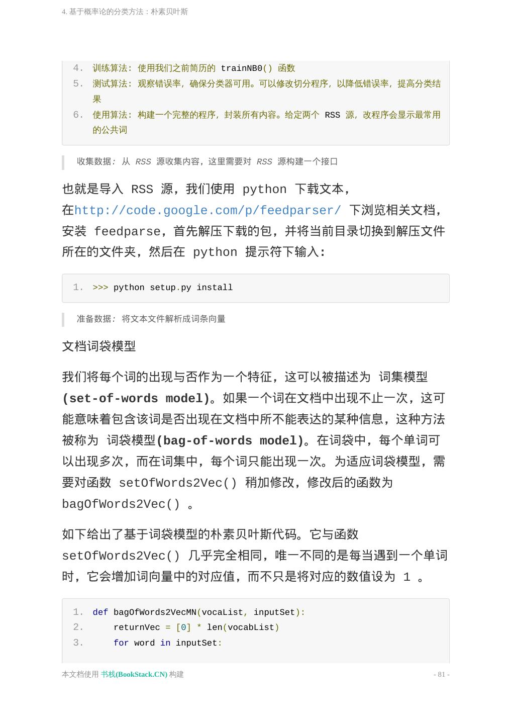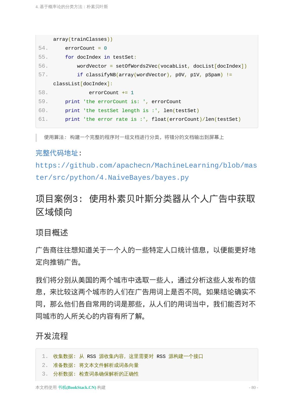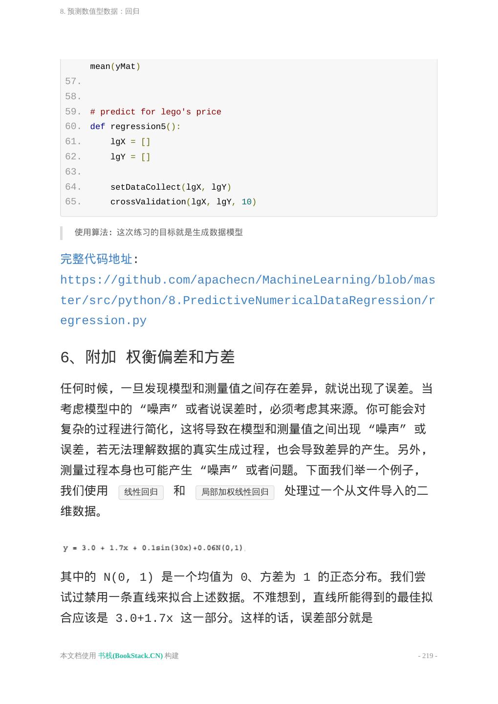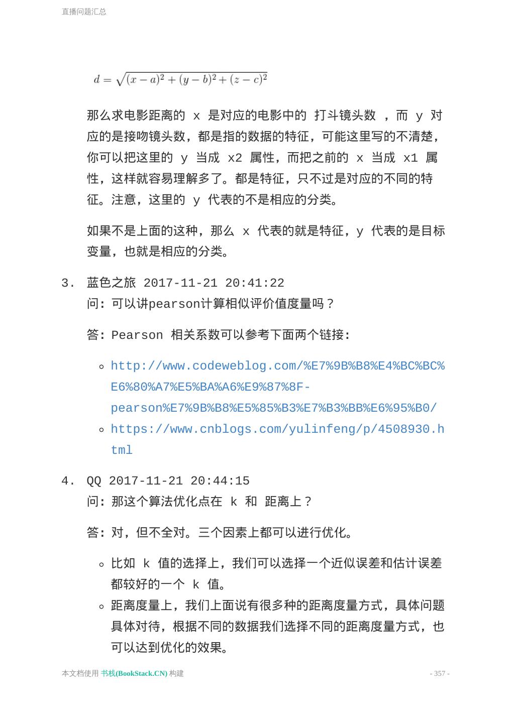 2 .致谢 致谢 当前文档 《机器学习实战(Machine Learning in Action)》 由 进击的皇虫 使用 书栈(BookStack.CN) 进行构 建,生成于 2018-02-16。 书栈(BookStack.CN) 仅提供文档编写、整理、归类等功能,以 及对文档内容的生成和导出工具。 文档内容由网友们编写和整理,书栈(BookStack.CN) 难以确认 文档内容知识点是否错漏。如果您在阅读文档获取知识的时候,发现文 档内容有不恰当的地方,请向我们反馈,让我们共同携手,将知识准 确、高效且有效地传递给每一个人。 同时,如果您在日常生活、工作和学习中遇到有价值有营养的知识 文档,欢迎分享到 书栈(BookStack.CN) ,为知识的传承献上您的 一份力量! 如果当前文档生成时间太久,请到 书栈(BookStack.CN) 获取 最新的文档,以跟上知识更新换代的步伐。 文档地 址:http://www.bookstack.cn/books/MachineLearning 书栈官网:http://www.bookstack.cn 书栈开源:https://github.com/TruthHun 分享,让知识传承更久远! 感谢知识的创造者,感谢知识的分享 者,也感谢每一位阅读到此处的读者,因为我们都将成为知识的传承 者。 本文档使用 书栈(BookStack.CN) 构建 - 2 -