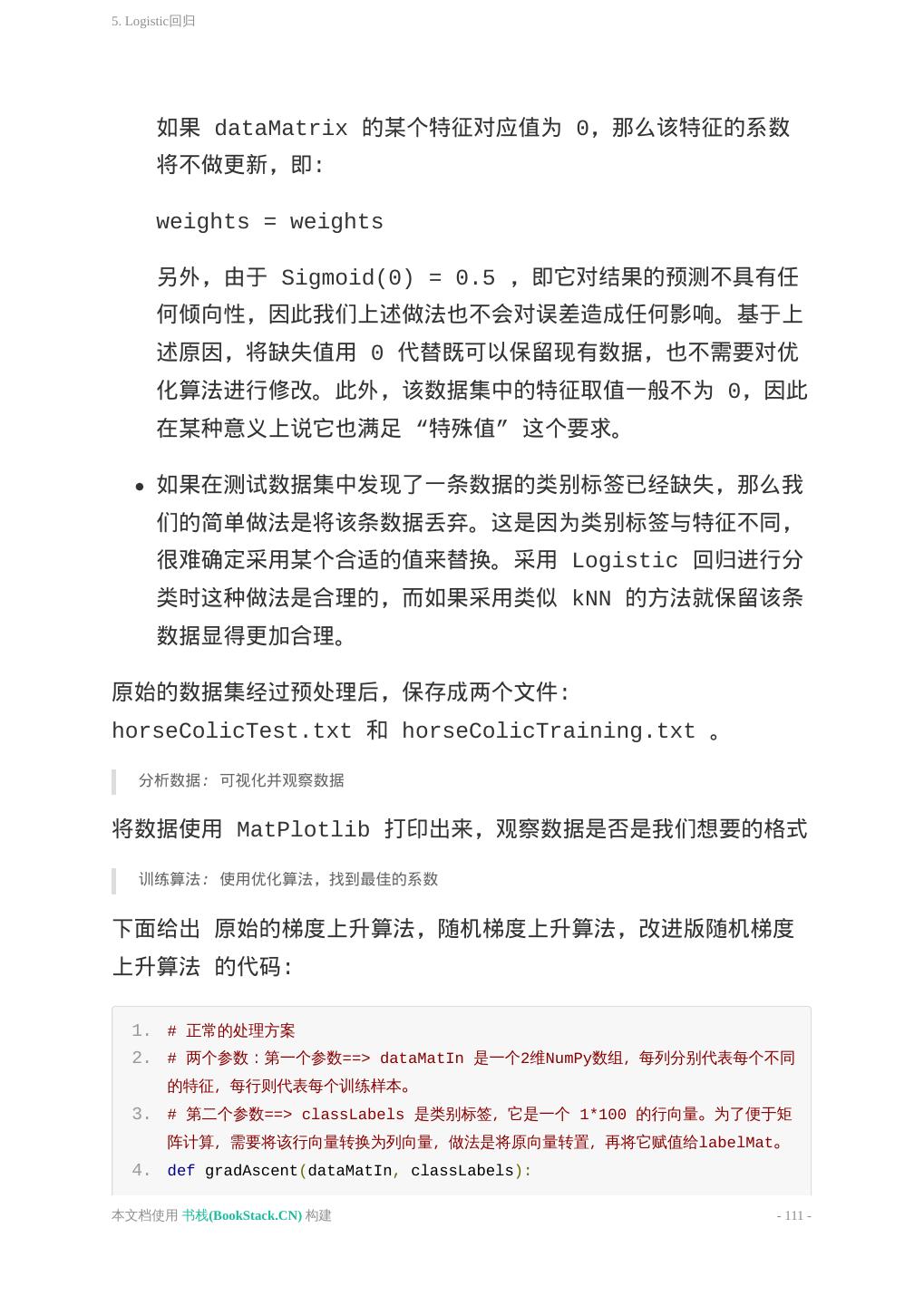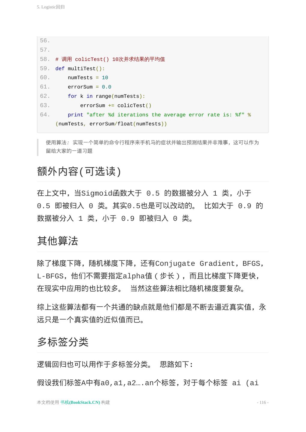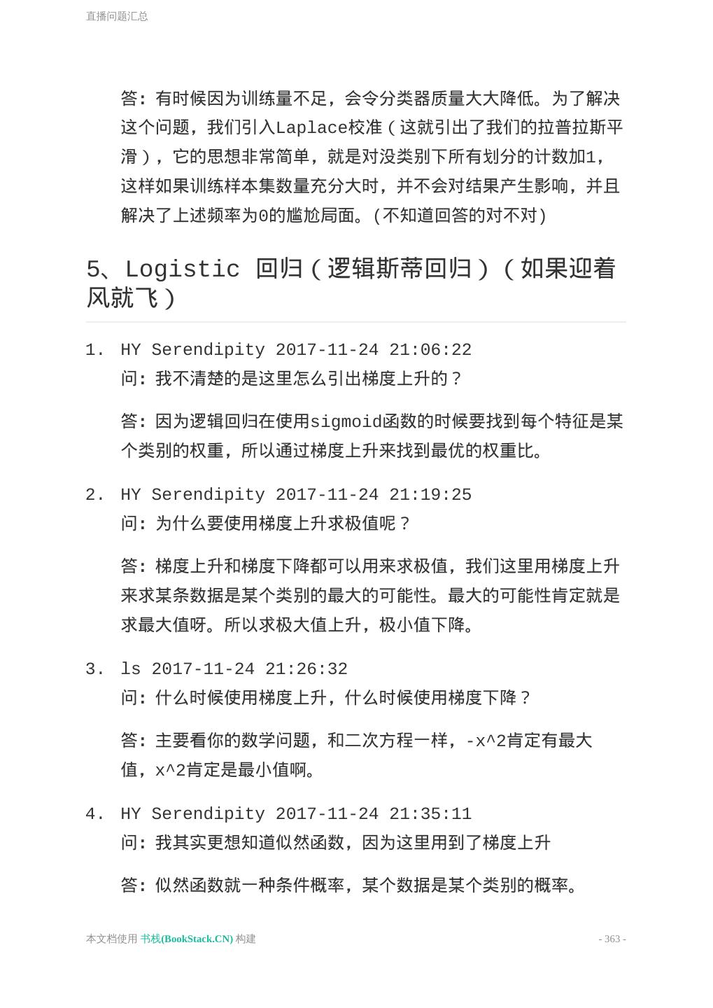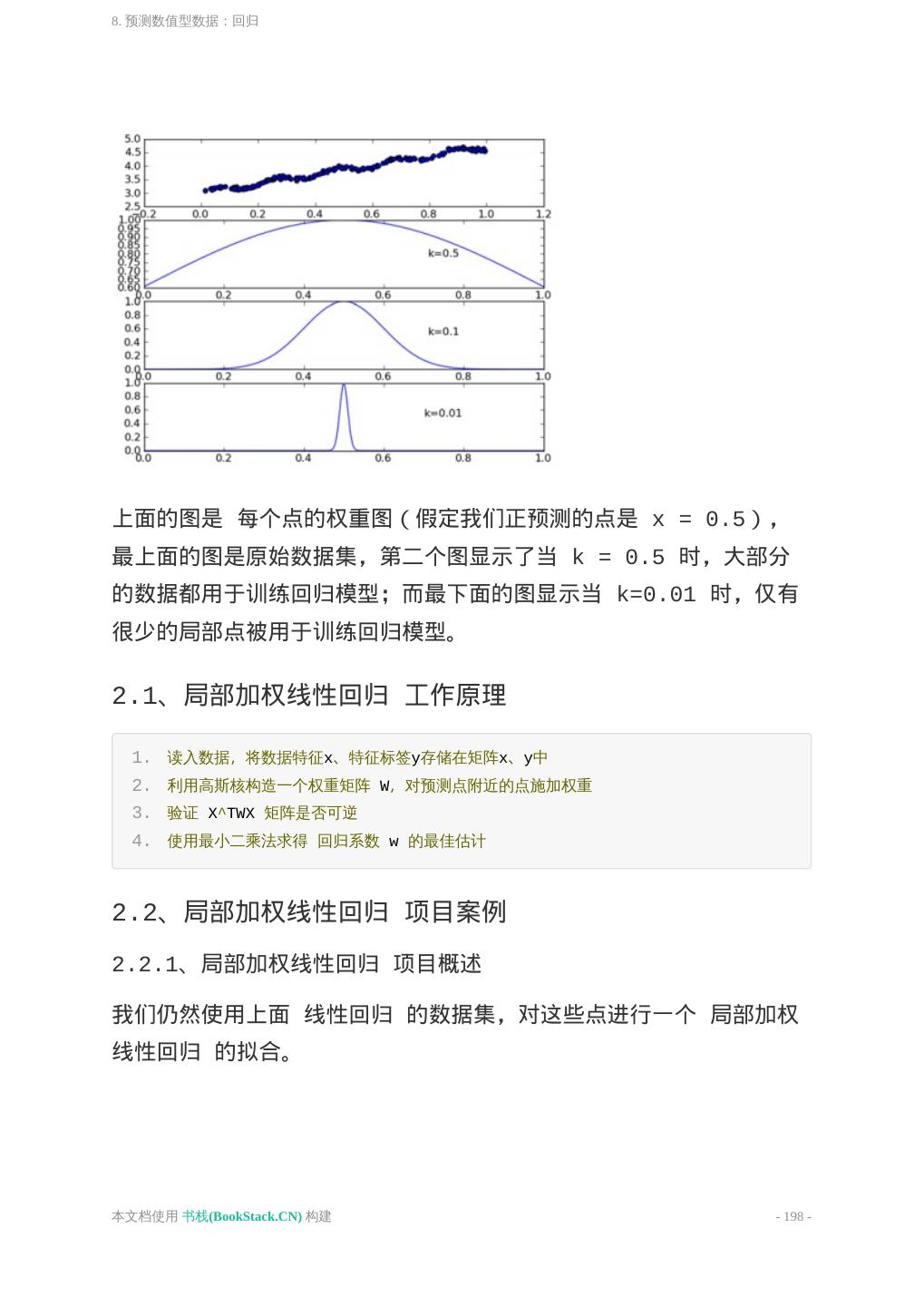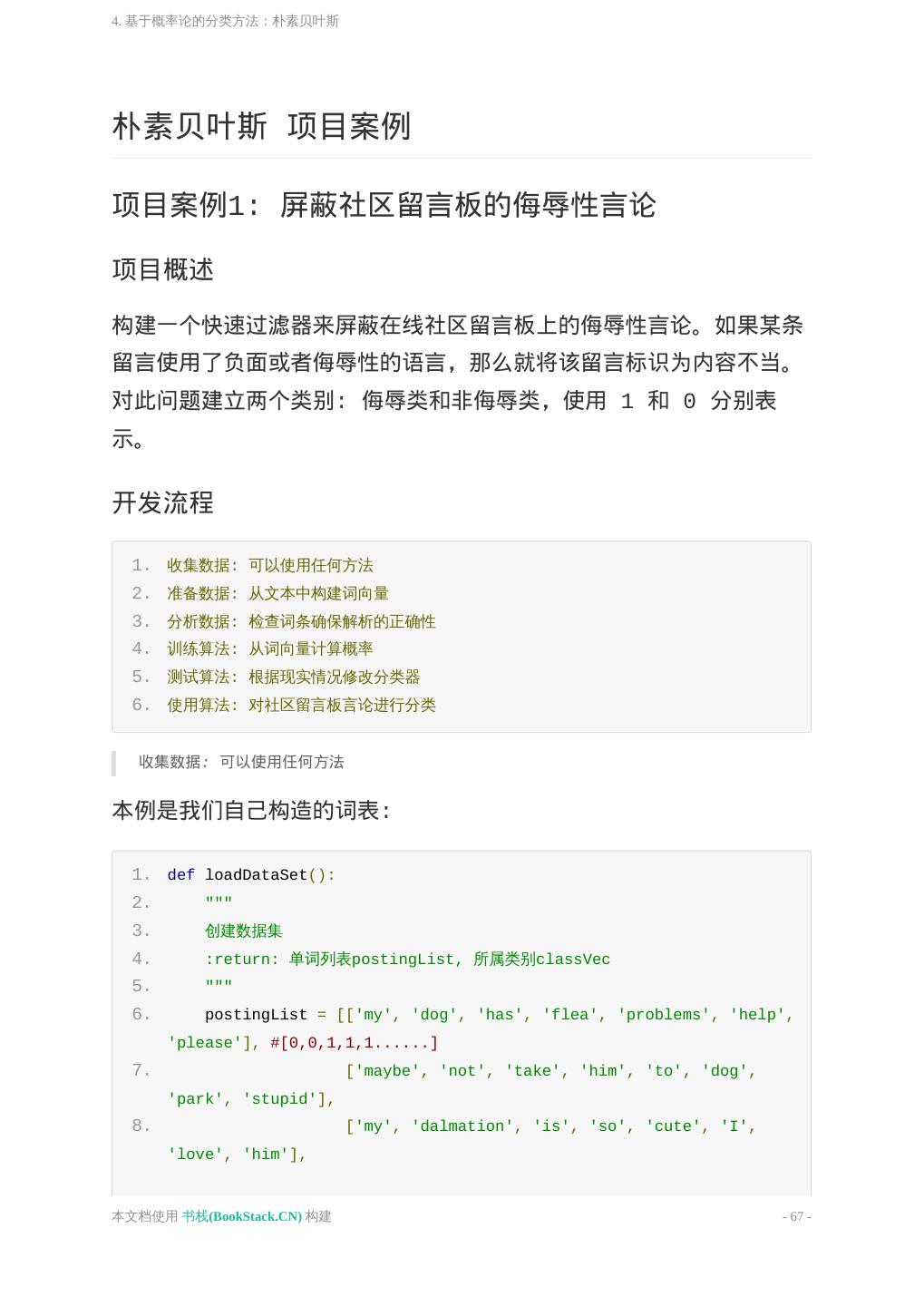 2 .致谢 致谢 当前文档 《机器学习实战(Machine Learning in Action)》 由 进击的皇虫 使用 书栈(BookStack.CN) 进行构 建,生成于 2018-02-16。 书栈(BookStack.CN) 仅提供文档编写、整理、归类等功能,以 及对文档内容的生成和导出工具。 文档内容由网友们编写和整理,书栈(BookStack.CN) 难以确认 文档内容知识点是否错漏。如果您在阅读文档获取知识的时候,发现文 档内容有不恰当的地方,请向我们反馈,让我们共同携手,将知识准 确、高效且有效地传递给每一个人。 同时,如果您在日常生活、工作和学习中遇到有价值有营养的知识 文档,欢迎分享到 书栈(BookStack.CN) ,为知识的传承献上您的 一份力量! 如果当前文档生成时间太久,请到 书栈(BookStack.CN) 获取 最新的文档,以跟上知识更新换代的步伐。 文档地 址:http://www.bookstack.cn/books/MachineLearning 书栈官网:http://www.bookstack.cn 书栈开源:https://github.com/TruthHun 分享,让知识传承更久远! 感谢知识的创造者,感谢知识的分享 者,也感谢每一位阅读到此处的读者,因为我们都将成为知识的传承 者。 本文档使用 书栈(BookStack.CN) 构建 - 2 -