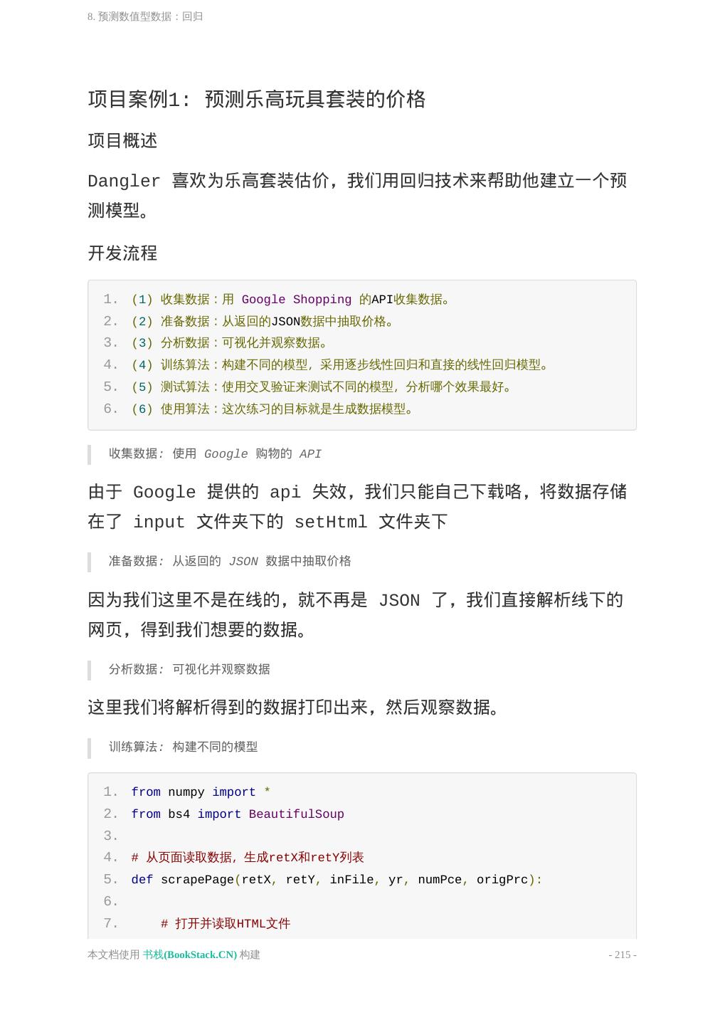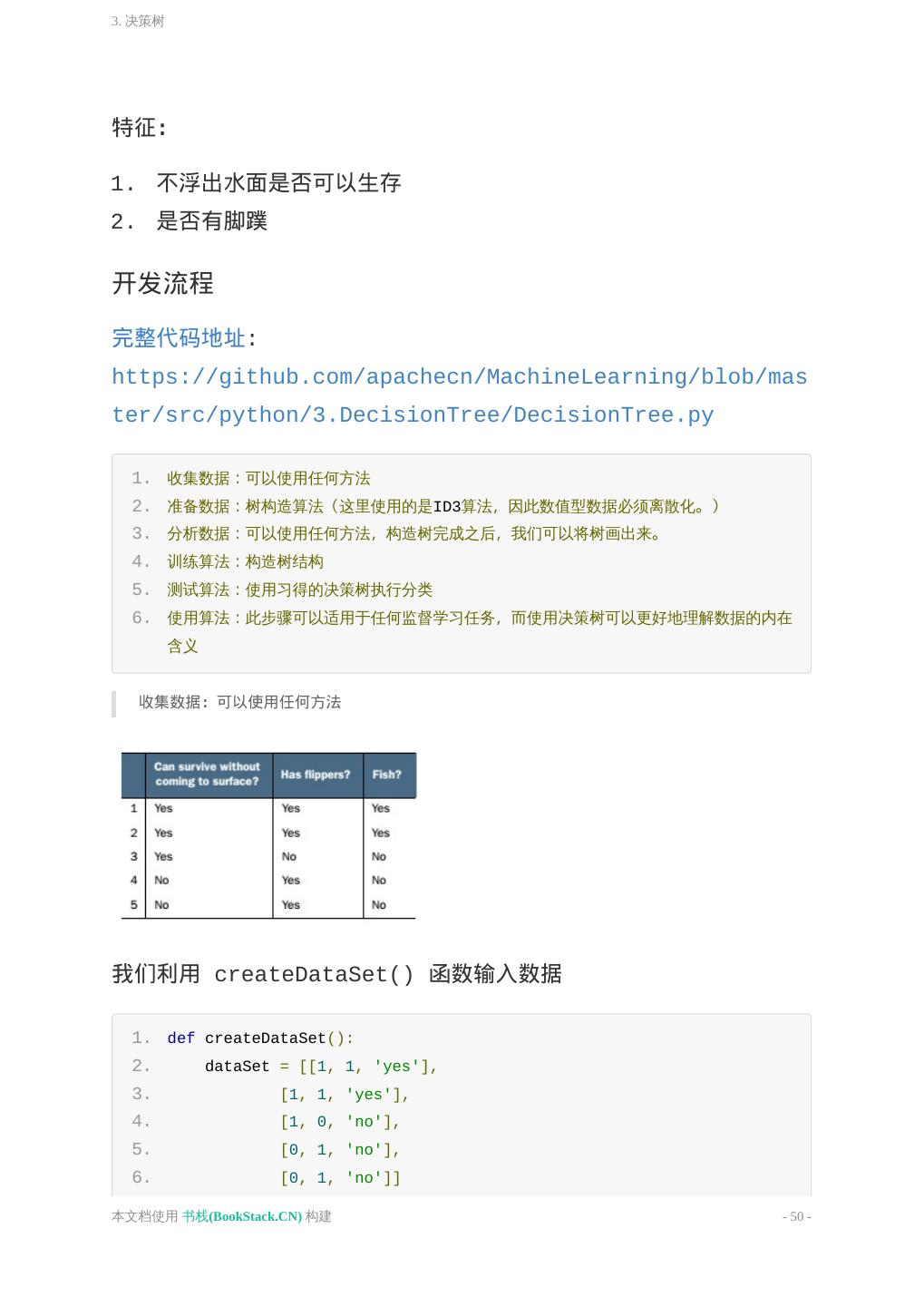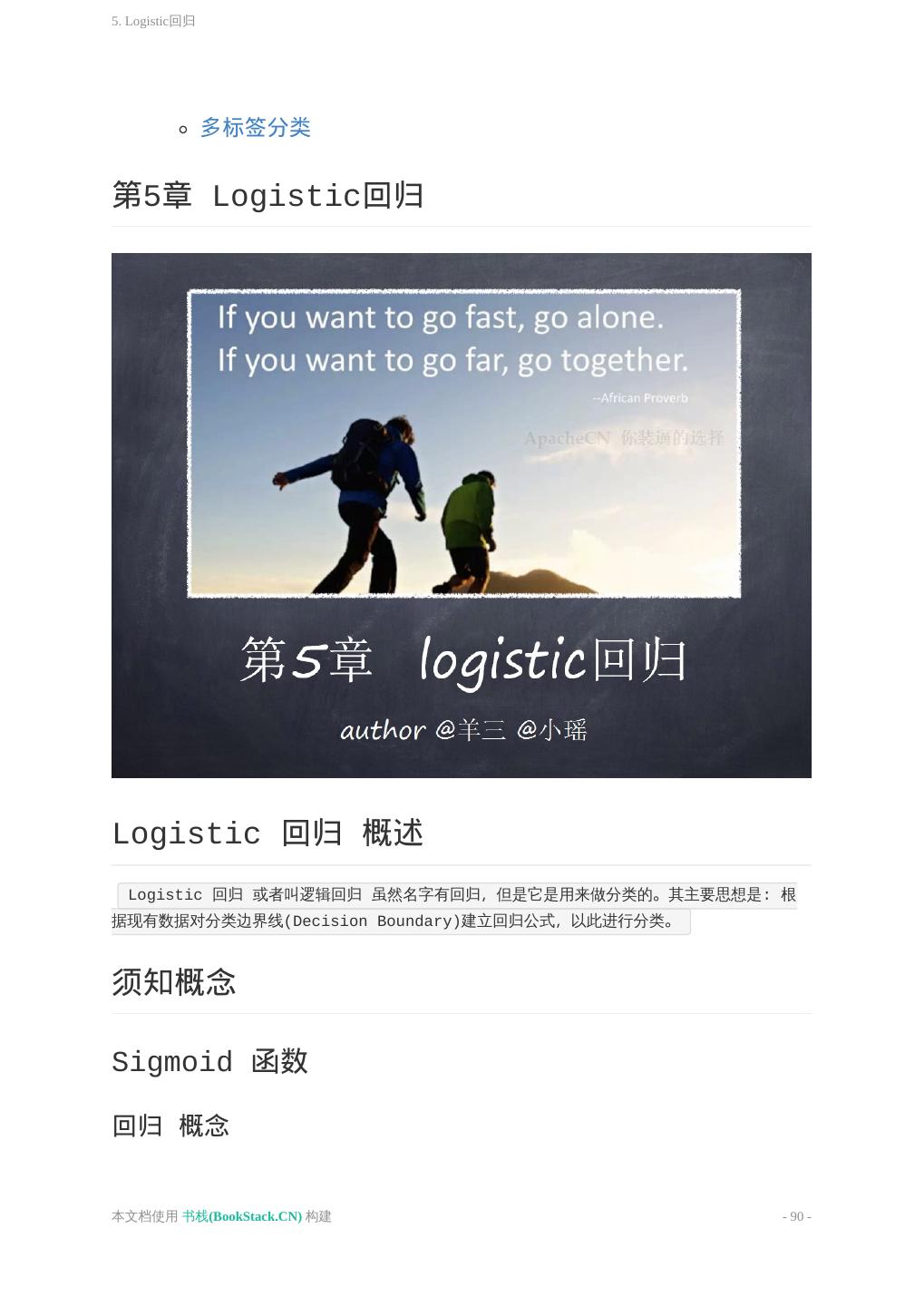 4 .阅前必读 阅前必读 MachineLearning 第一部分 分类 第二部分 利用回归预测数值型数据 第三部分 无监督学习 第四部分 其他工具 第五部分 项目实战(非课本内容) 阶段性总结 联系方式 网站视频 ApacheCN 组织资源 MachineLearning 欢迎任何人参与和完善:一个人可以走的很快,但是一群人却可以走的更远 ApacheCN - 学习机器学习群【629470233】 Machine Learning in Action (机器学习实战) | ApacheCN(apache中文网) 电子版书籍:【机器学习实战-中文版-带目录版.pdf】 — 感谢 大佬 Wizard Zhang 生成的电子书《机器学习实战- ApacheCN.pdf》 视频已更新完成,如果你觉得有价值,请帮忙点 Star【后续组织 学习活动:sklearn、kaggle 和 tensorflow】 — 视频网站:优酷/bilibili / Acfun ,可直接在线播放。 (最下方有相应链接) — 对于帮忙转发 MachineLearning(机器学习) 学习路线图 的 朋友,可以加群后私聊 瑶妹 企鹅 赠送《机器学习实战》百度云 本文档使用 书栈(BookStack.CN) 构建 - 4 -