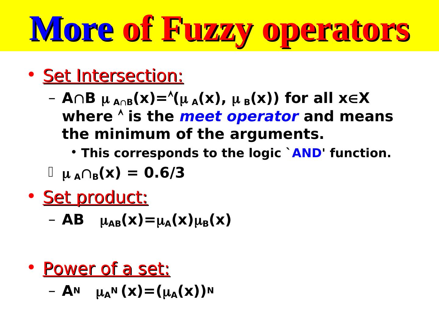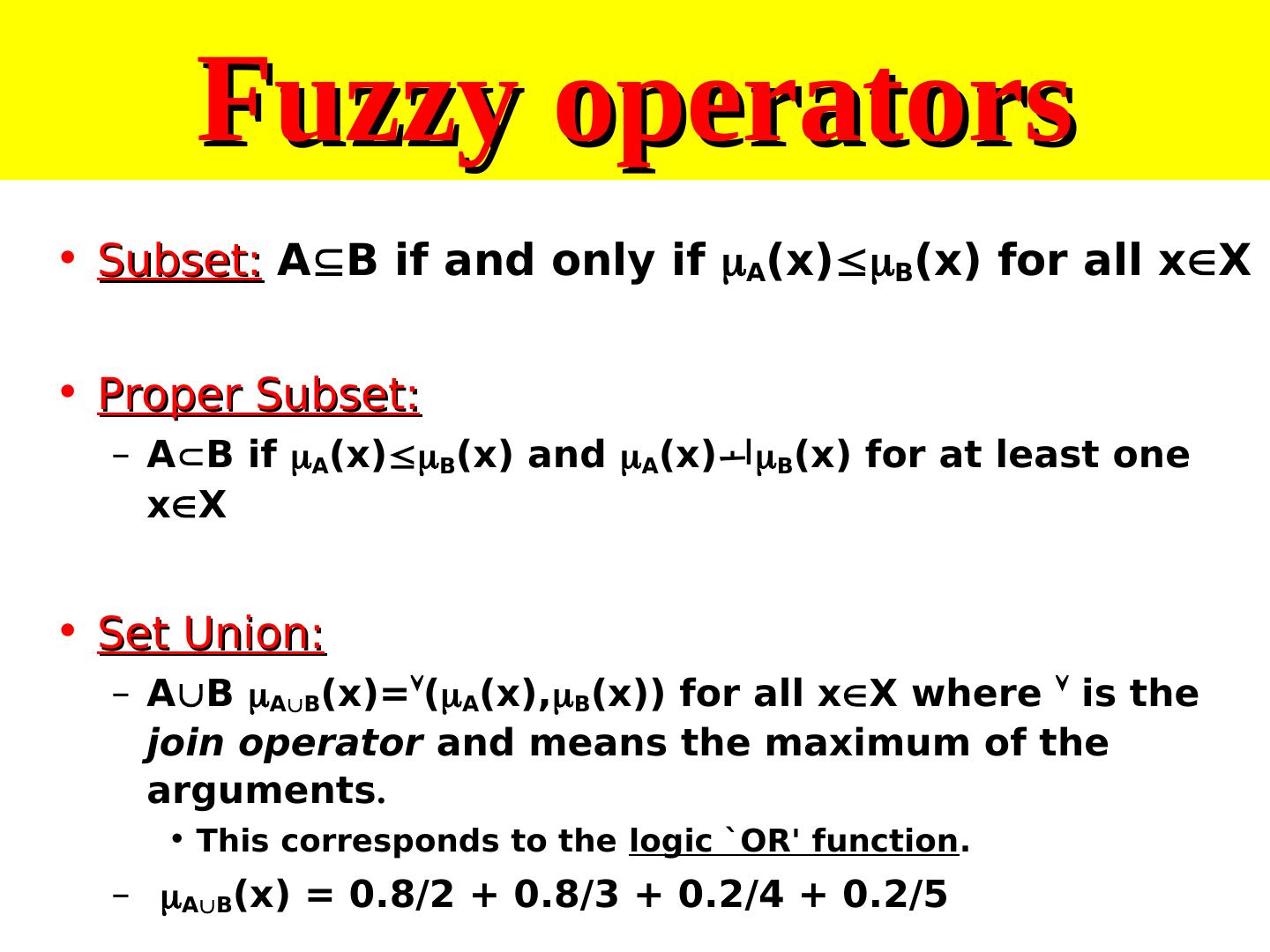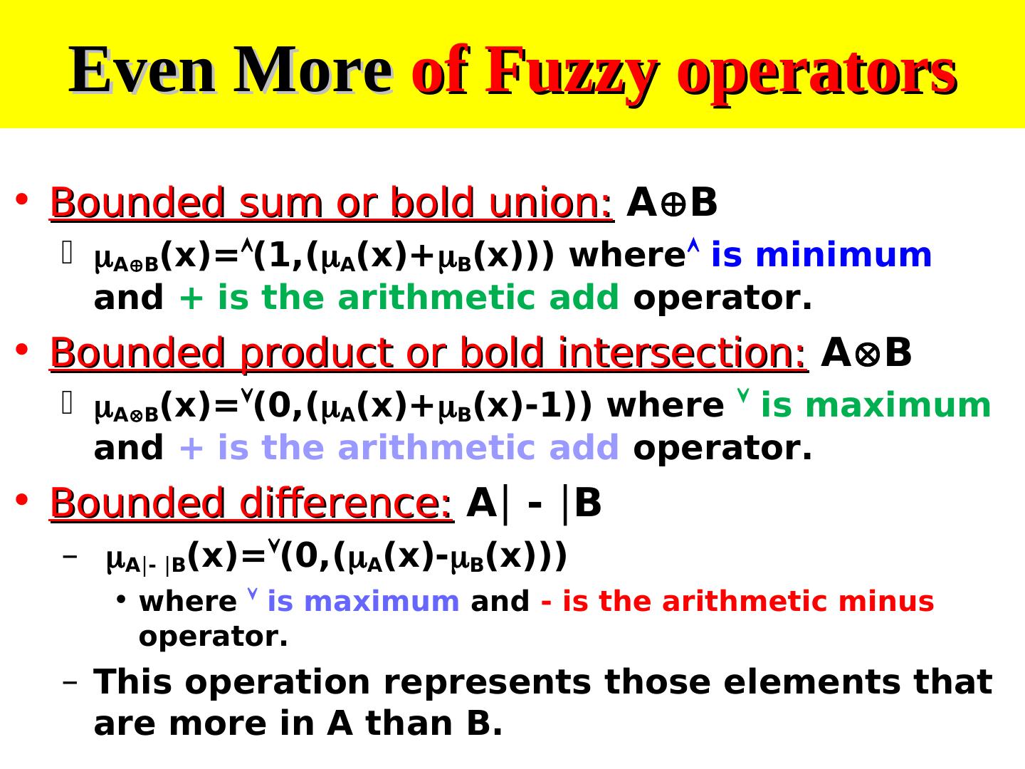 23 . Fuzzy Intersection and Union • From the membership functions shown in the top in (a), and complement X’ (b) the intersection of fuzzy variable X and its complement X’ is shown bottom in (a). • From the membership functions shown in the top in (a), and complement X’ (b) the union of fuzzy variable X and its complement X’ is shown bottom in (b). Fuzzy Fuzzy union intersection