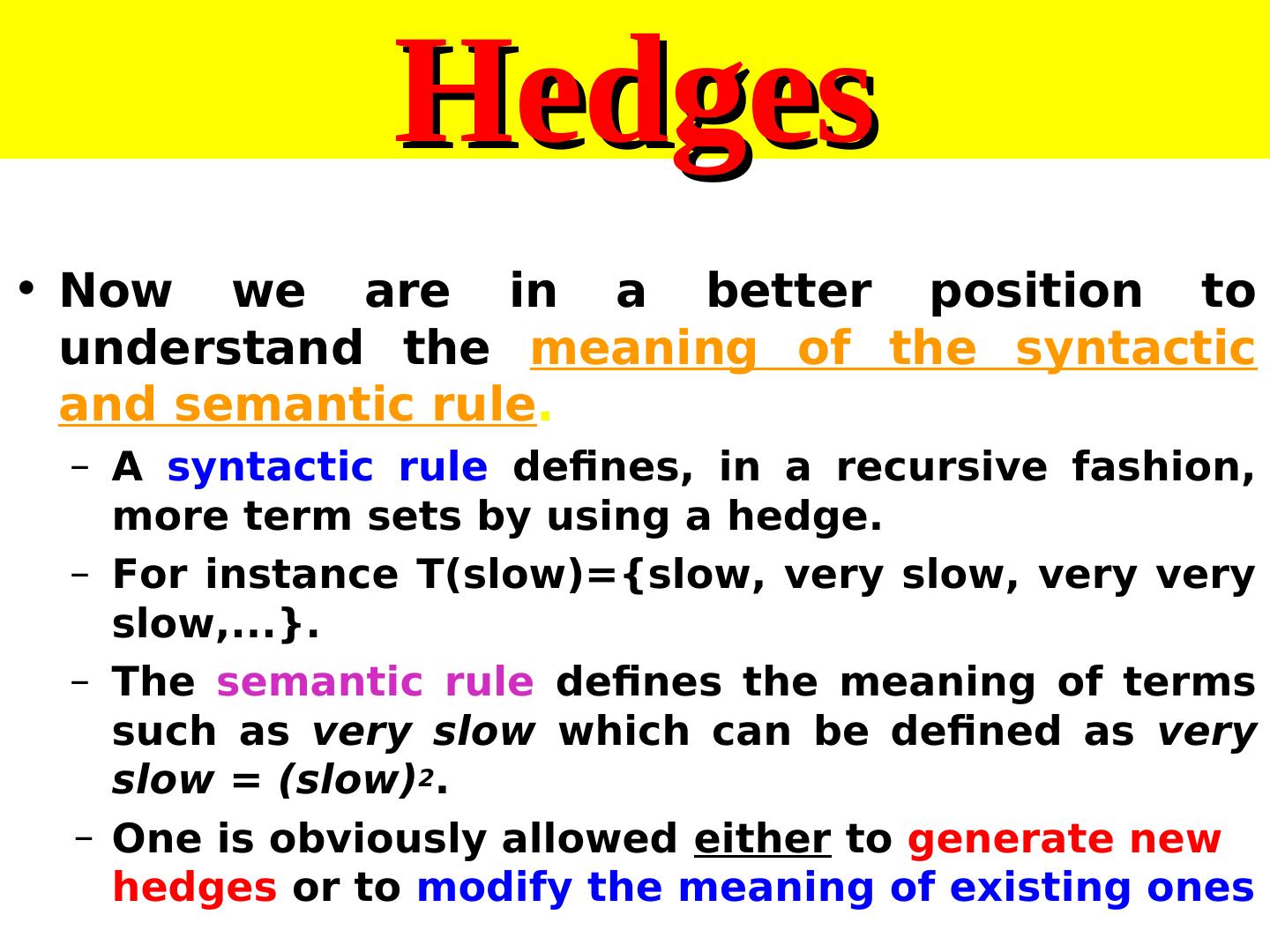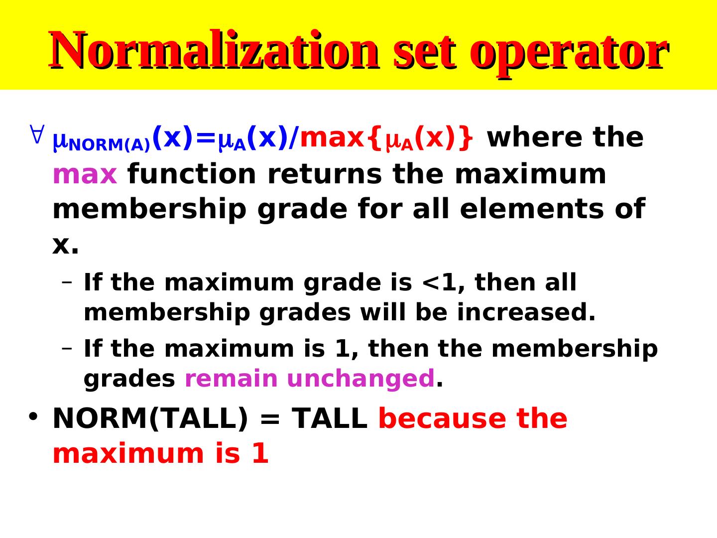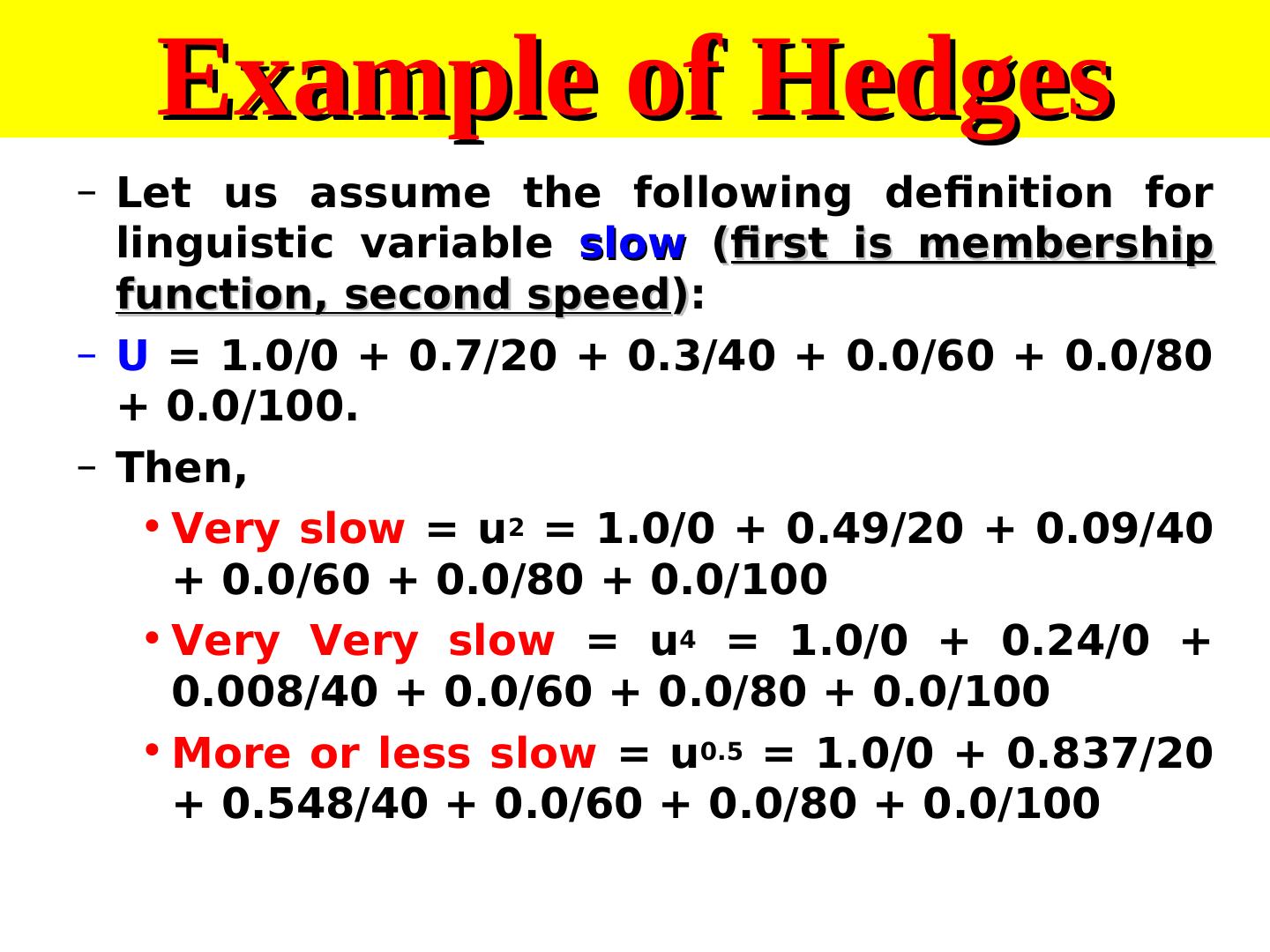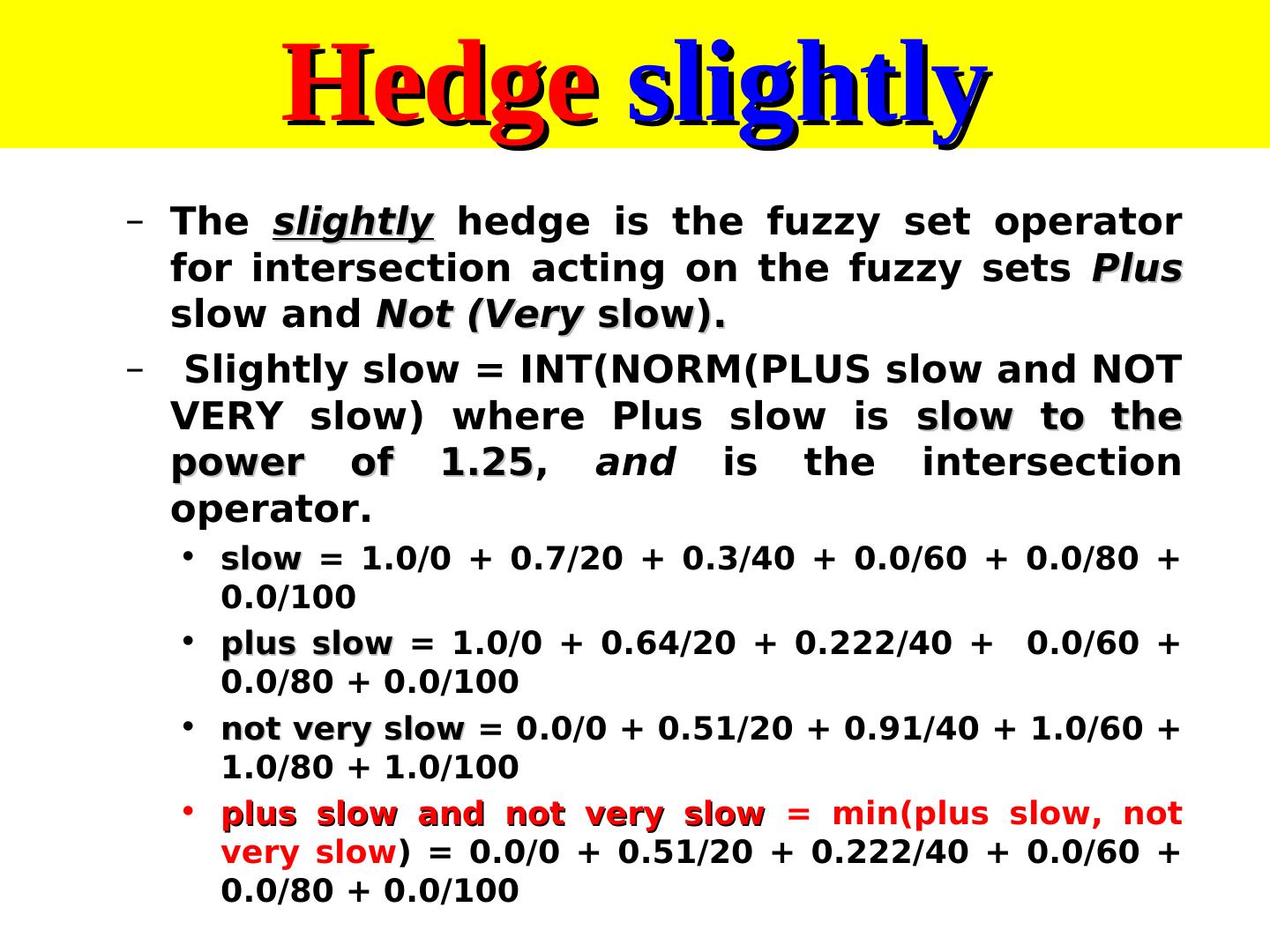 5 .• In traditional logic, statements can be either true or false, and sets can either contain an element or not. • These logic values and set memberships are typically represented with number 1 and 0. • Fuzzy logic generalizes traditional logic by allowing statements to be somewhat true, partially true, etc. • Likewise, sets can have full members, tall partial members, and so on. • For example, a person whose height is 5’ 9” might be assigned a medium membership of 0.6 in the fuzzy set “tall people”. • The statement “Joe is tall” is 60% true of Joe is 5’9”. • Fuzzy logic is a set of “if--then” statements based on combining fuzzy sets. (Beale & Demuth..Fuzzy Systems Toolbox.)