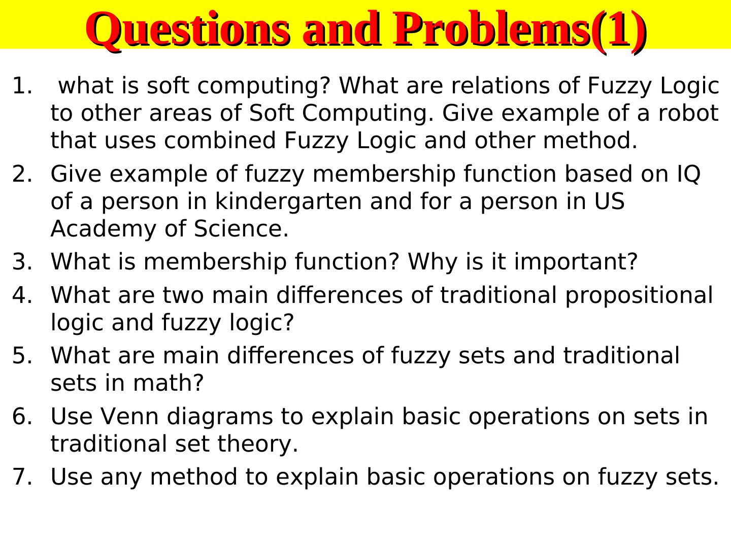 1 .Soft Computing Fuzzy logic is part of soft computing