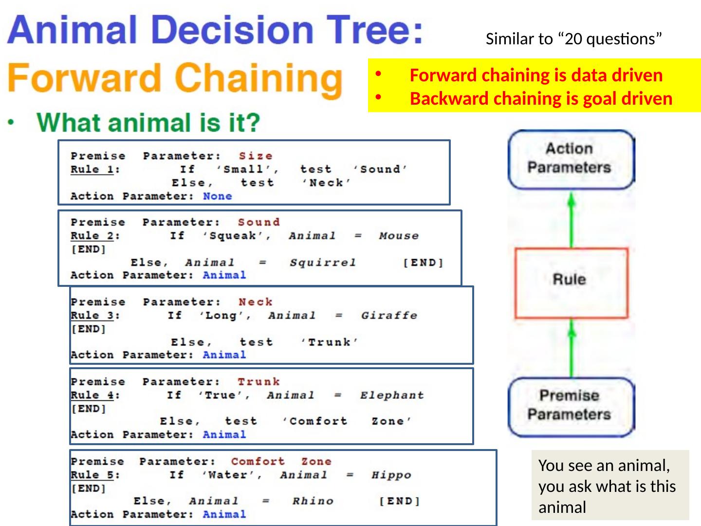26 .Similar to “20 questions” Forward chaining is data driven Backward chaining is goal driven You see an animal, you ask what is this animal