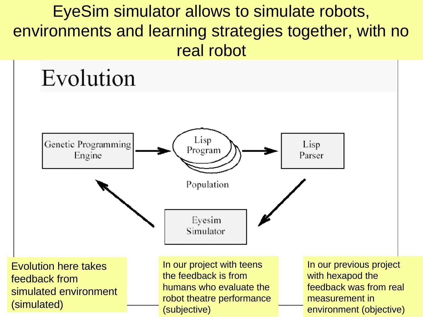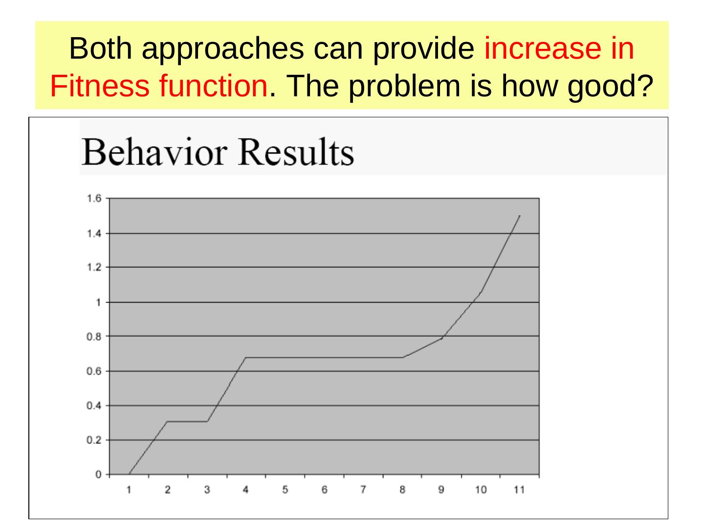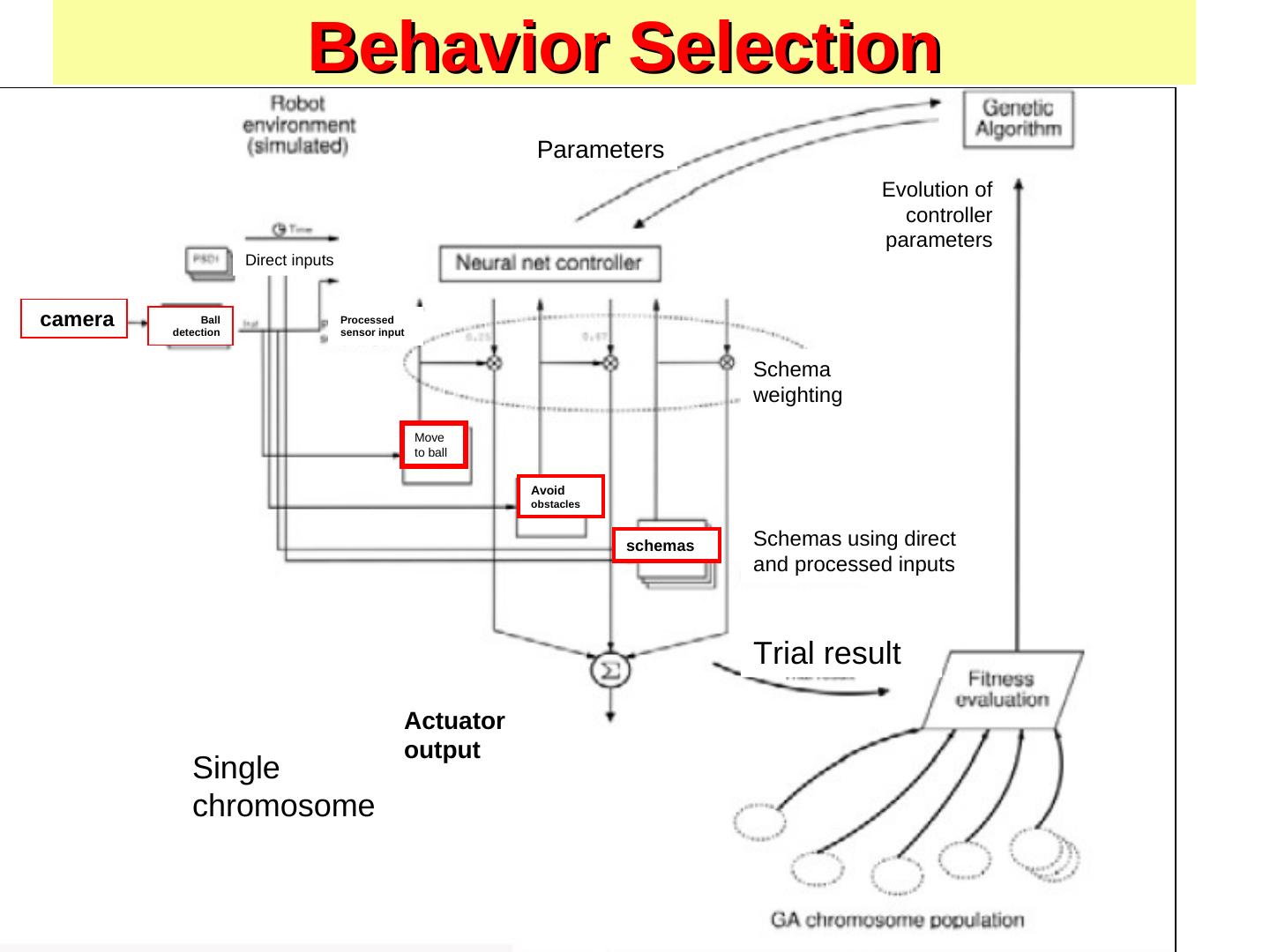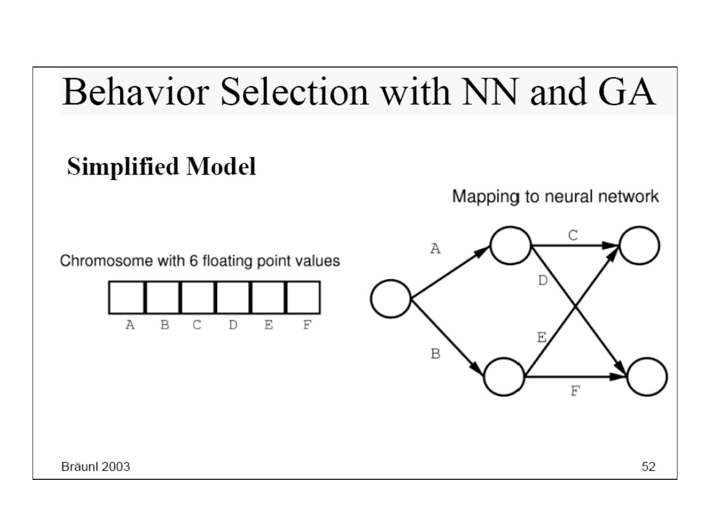7 . Genetic Algorithms 1. Fitness function (quality function) 2. Selection scheme 3. Genetic operators 1. Crossover 2. Mutation 4. Create bitstrings 5. Evaluate bitstrings (genotype) 6. Transform bitstrings to robot behaviors (phenotype) Genetic Programming (GP) use trees instead of strings.