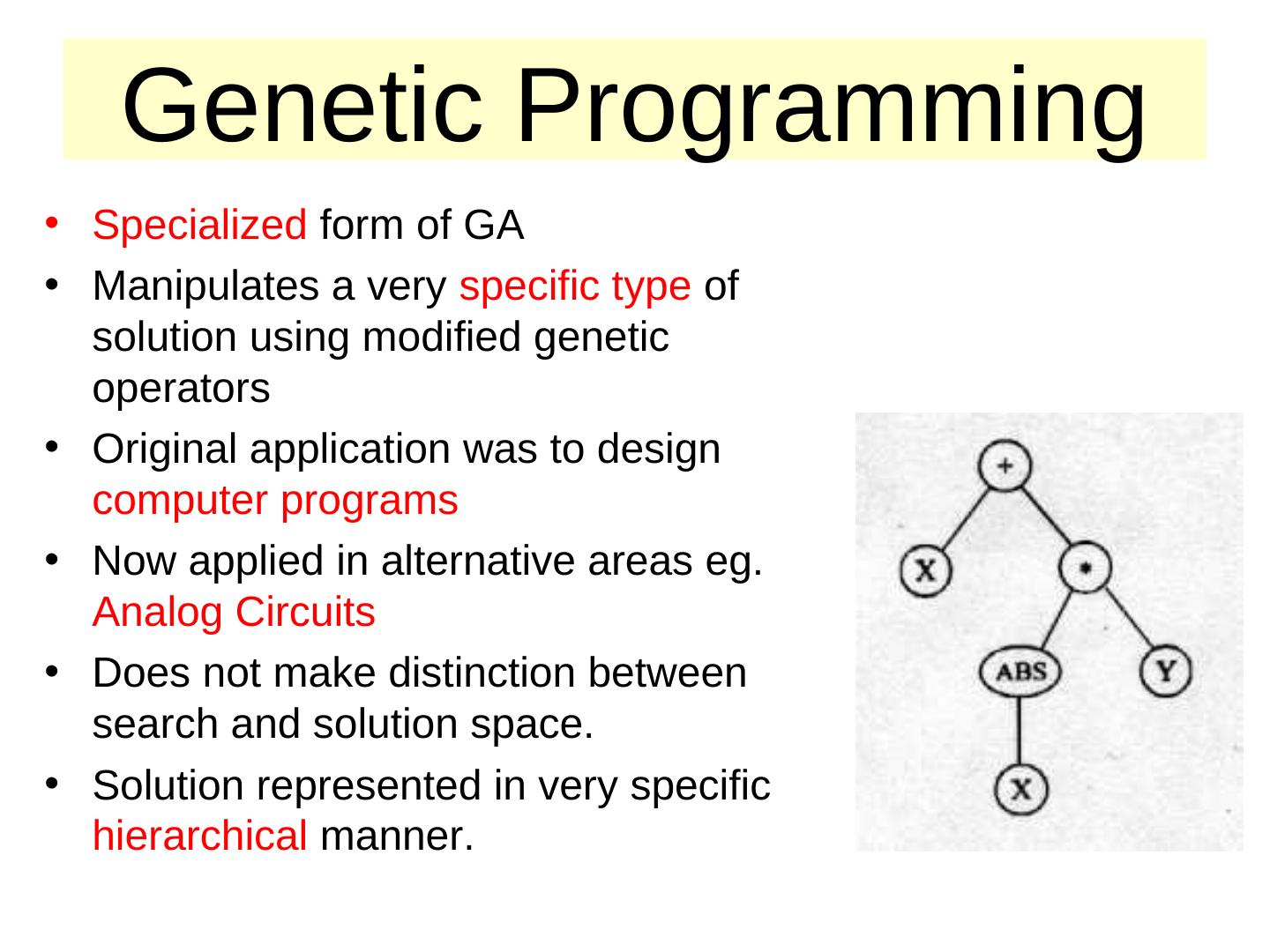 19 . Genetic Programming • Specialized form of GA • Manipulates a very specific type of solution using modified genetic operators • Original application was to design computer programs • Now applied in alternative areas eg. Analog Circuits • Does not make distinction between search and solution space. • Solution represented in very specific hierarchical manner.