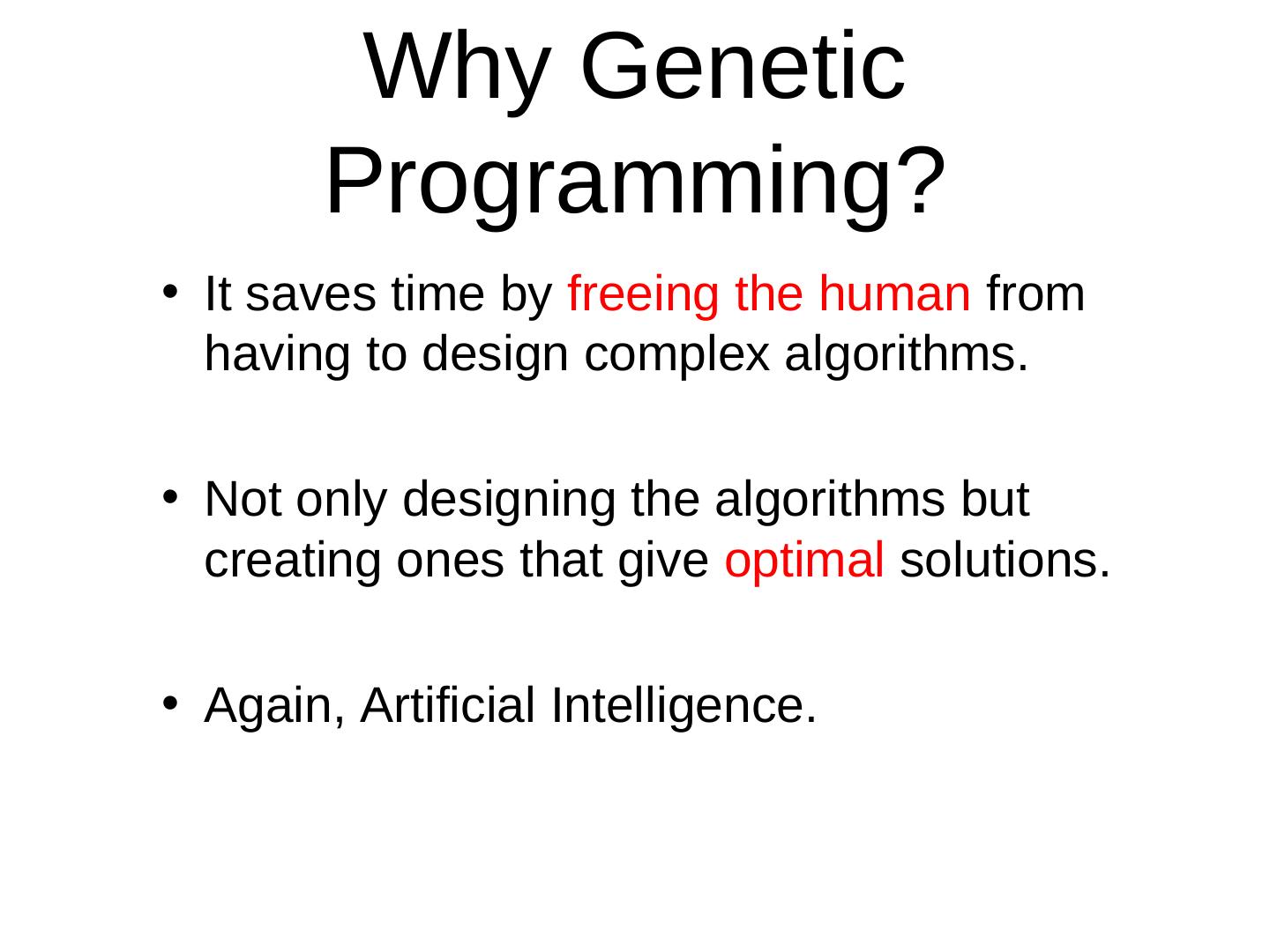 21 . Why Genetic Programming? • It saves time by freeing the human from having to design complex algorithms. • Not only designing the algorithms but creating ones that give optimal solutions. • Again, Artificial Intelligence.