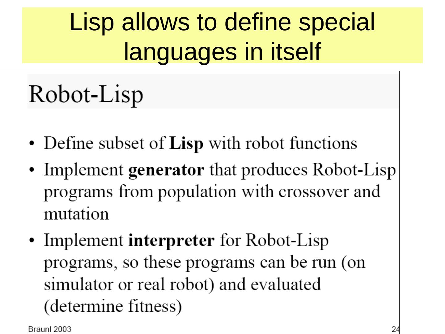 22 . What Constitutes a Genetic Program? • Starts with "What needs to be done" • Agent figures out "How to do it" • Produces a computer program - “Breeding Programs” • Fitness Test • Code reuse • Architecture Design - Hierarchies • Produce results that are competitive with human produced results
