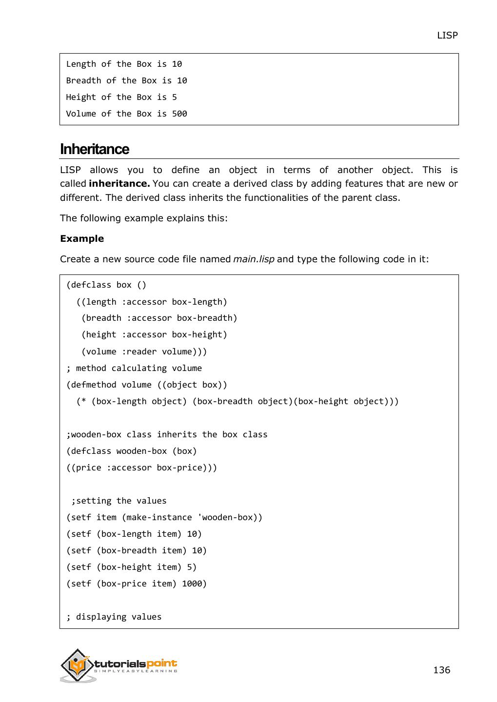 8 . LISP Defining a Class Method................................................................................................................................135 Inheritance ....................................................................................................................................................136 vii