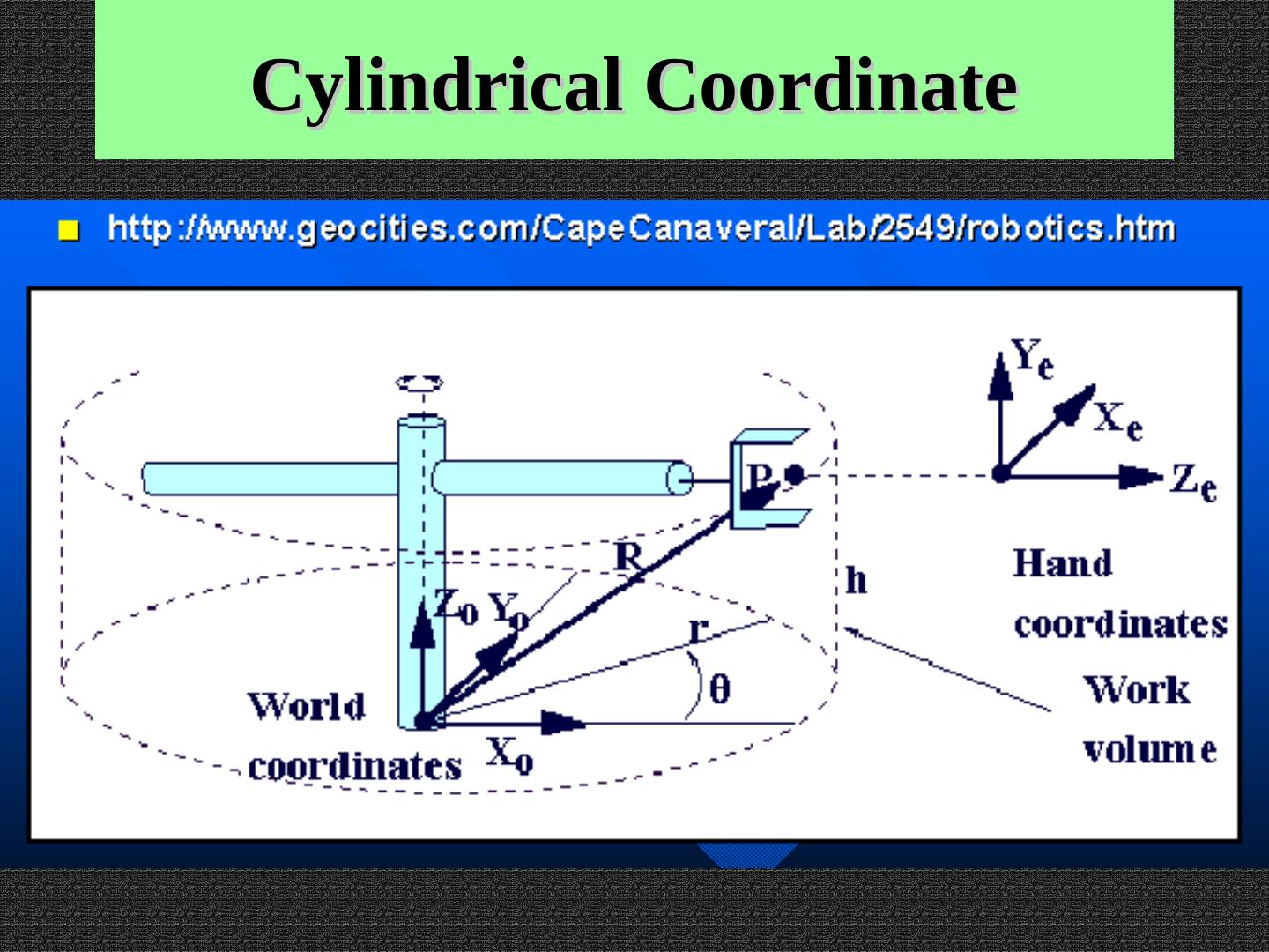 8 . Disadvantages of Cylindrical 1. Some restrictions on compatibility with other manipulators in a common work space 2. Less accuracy and resolution compared with Cartesian