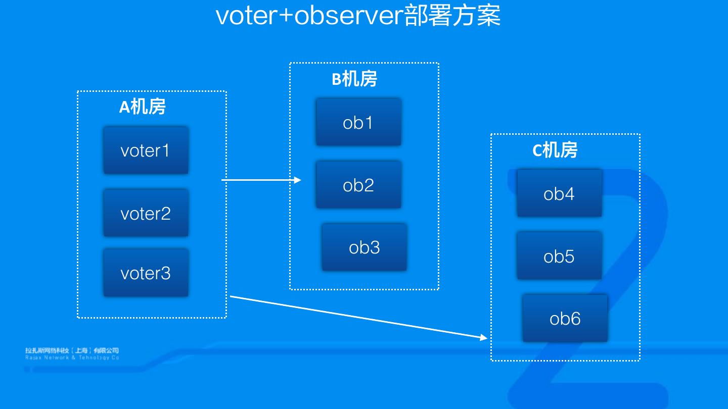 14 . voter+observer部署方案 B机房 A机房 ob1 voter1 C机房 ob2 ob4 voter2 ob3 ob5 voter3 ob6