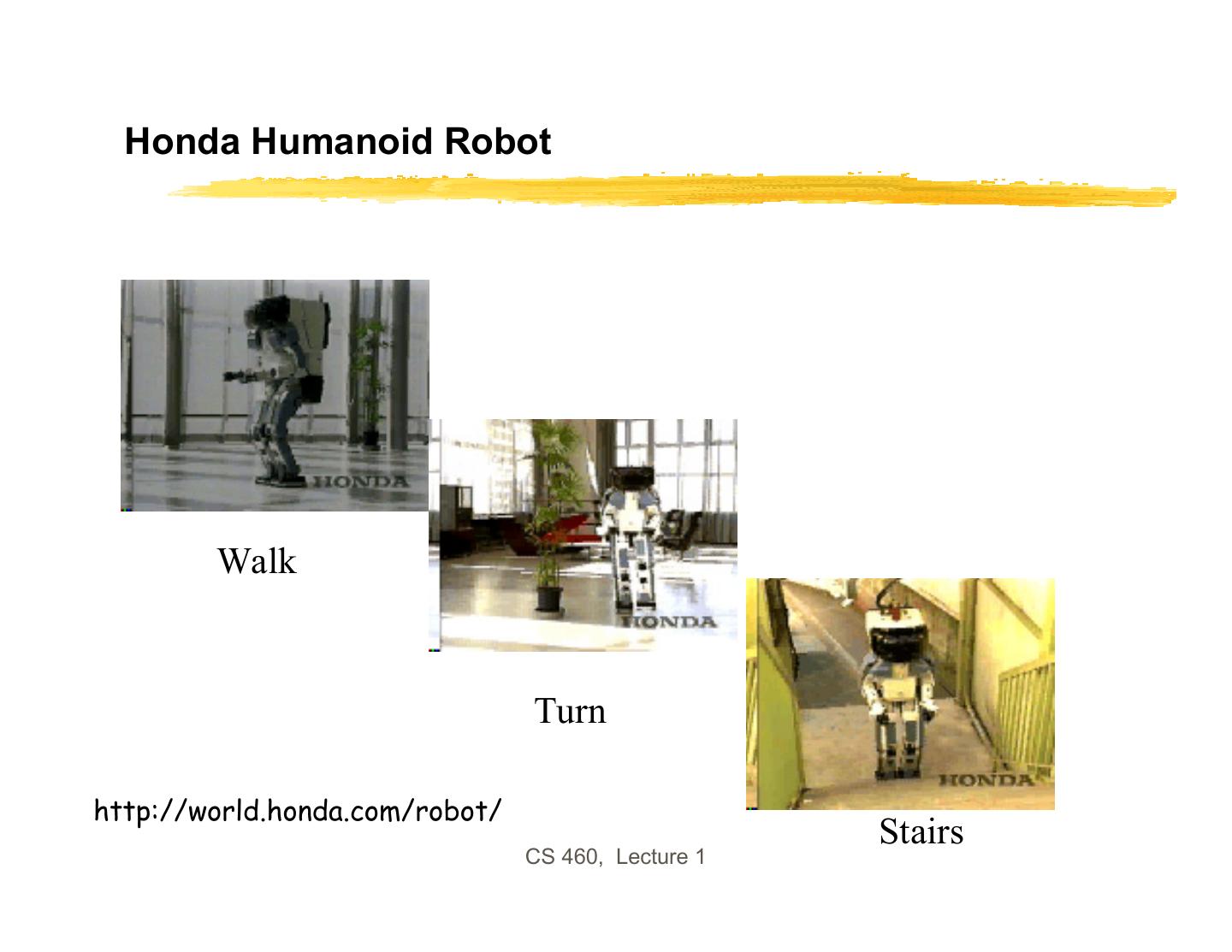 5 . Honda Humanoid Robot Walk Turn http://world.honda.com/robot/ Stairs CS 460, Lecture 1