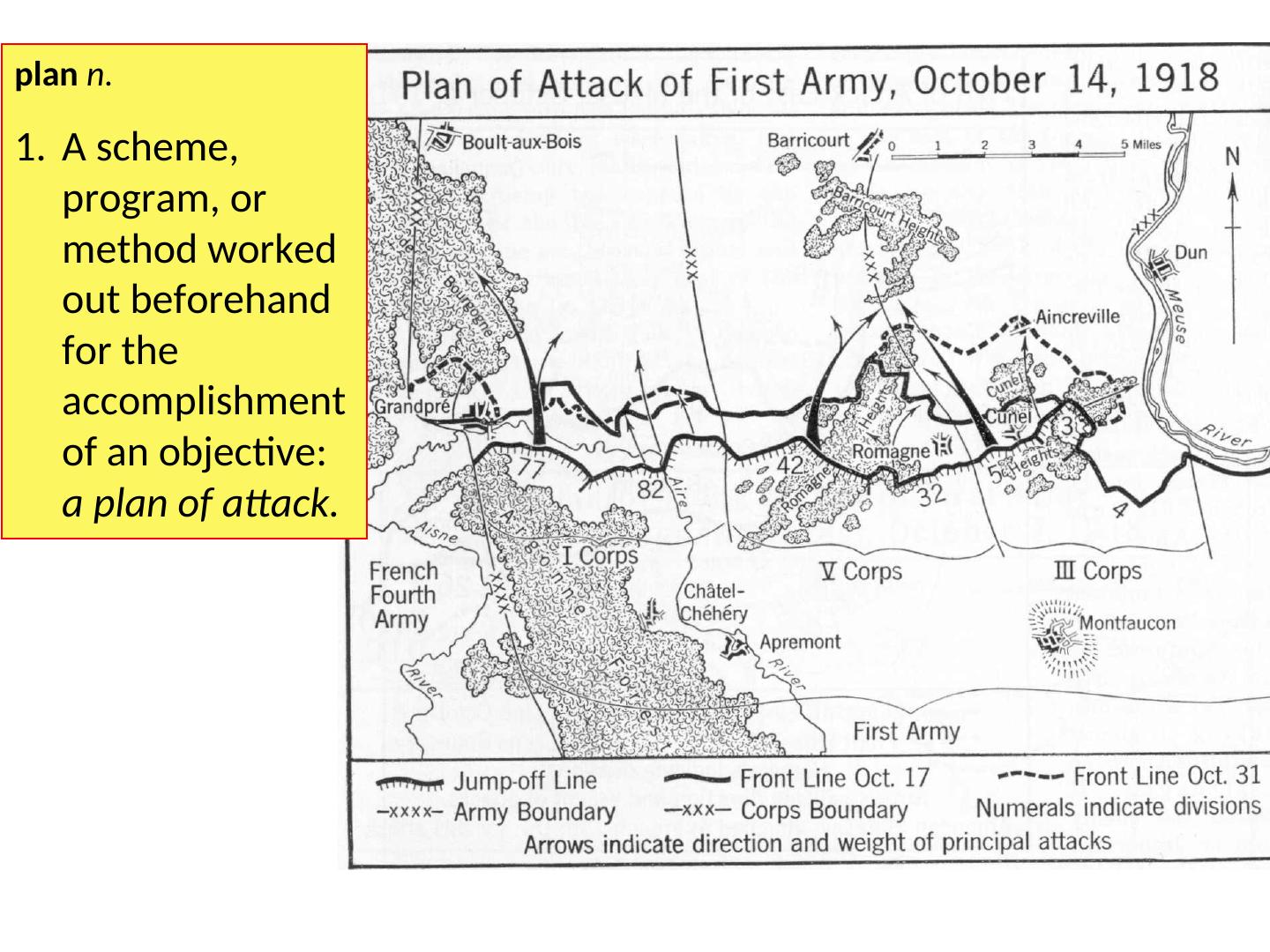 3 .plan n. 1. A scheme, program, or method worked out beforehand for the accomplishment of an objective: a plan of attack.
