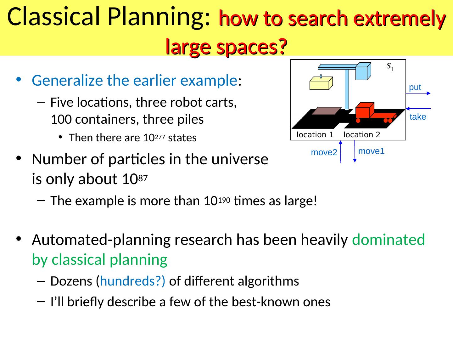26 . 1. Domain-Specific Planners • Made or tuned for a specific domain • Won’t work well (if at all) in any other domain • Most successful real-world planning systems work this way