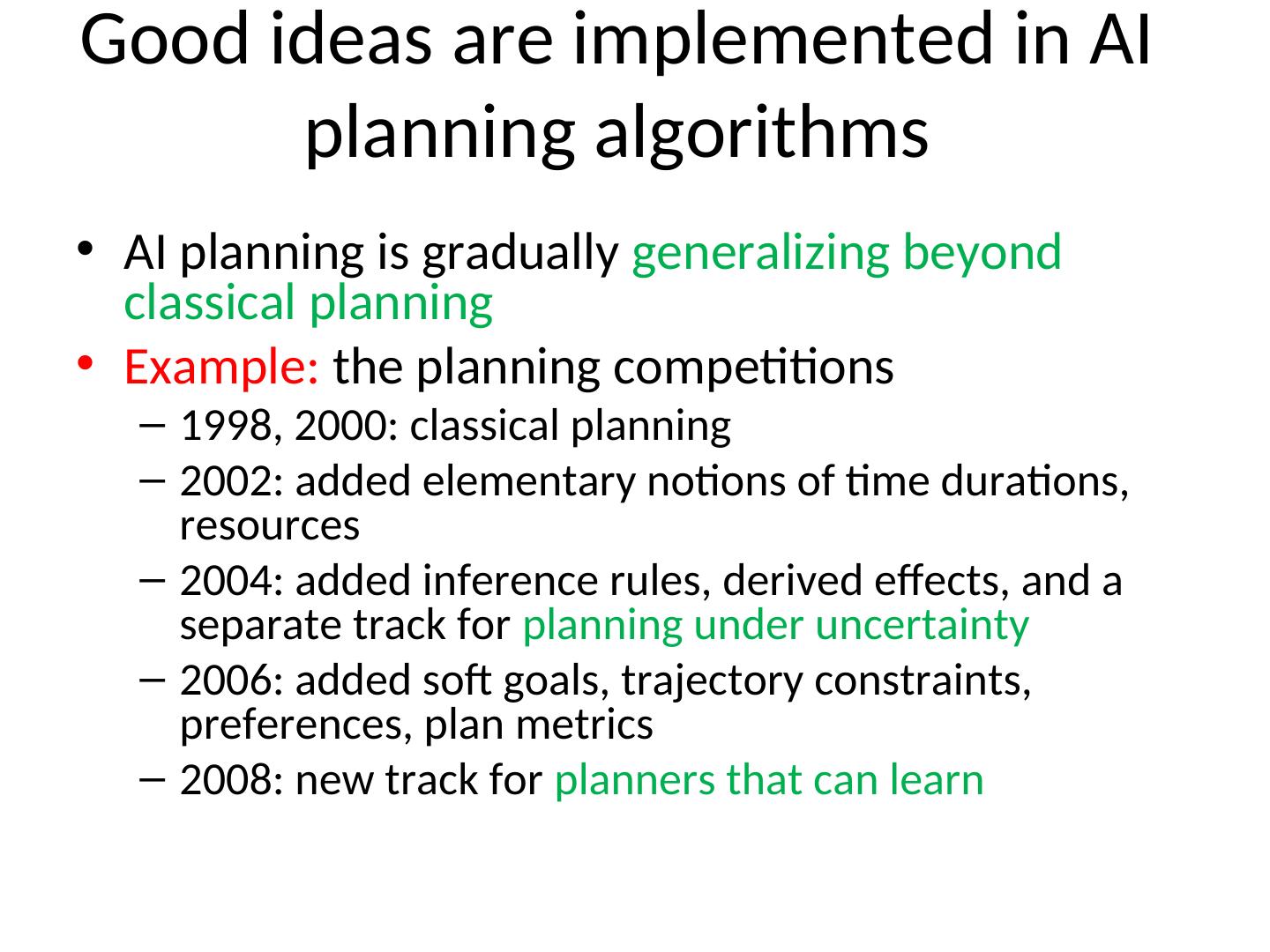 14 . Outline of lecture • Conceptual model for planning • Example planning algorithms • What’s bad • What’s good
