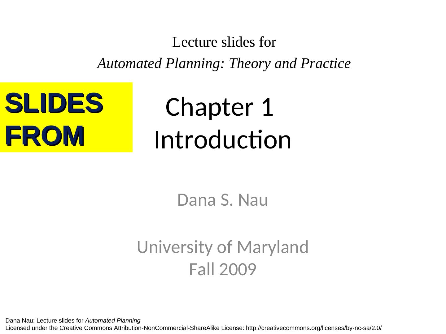 1 . Introduction to Robot Planning Slides modified from Dana S. Nau University of Maryland