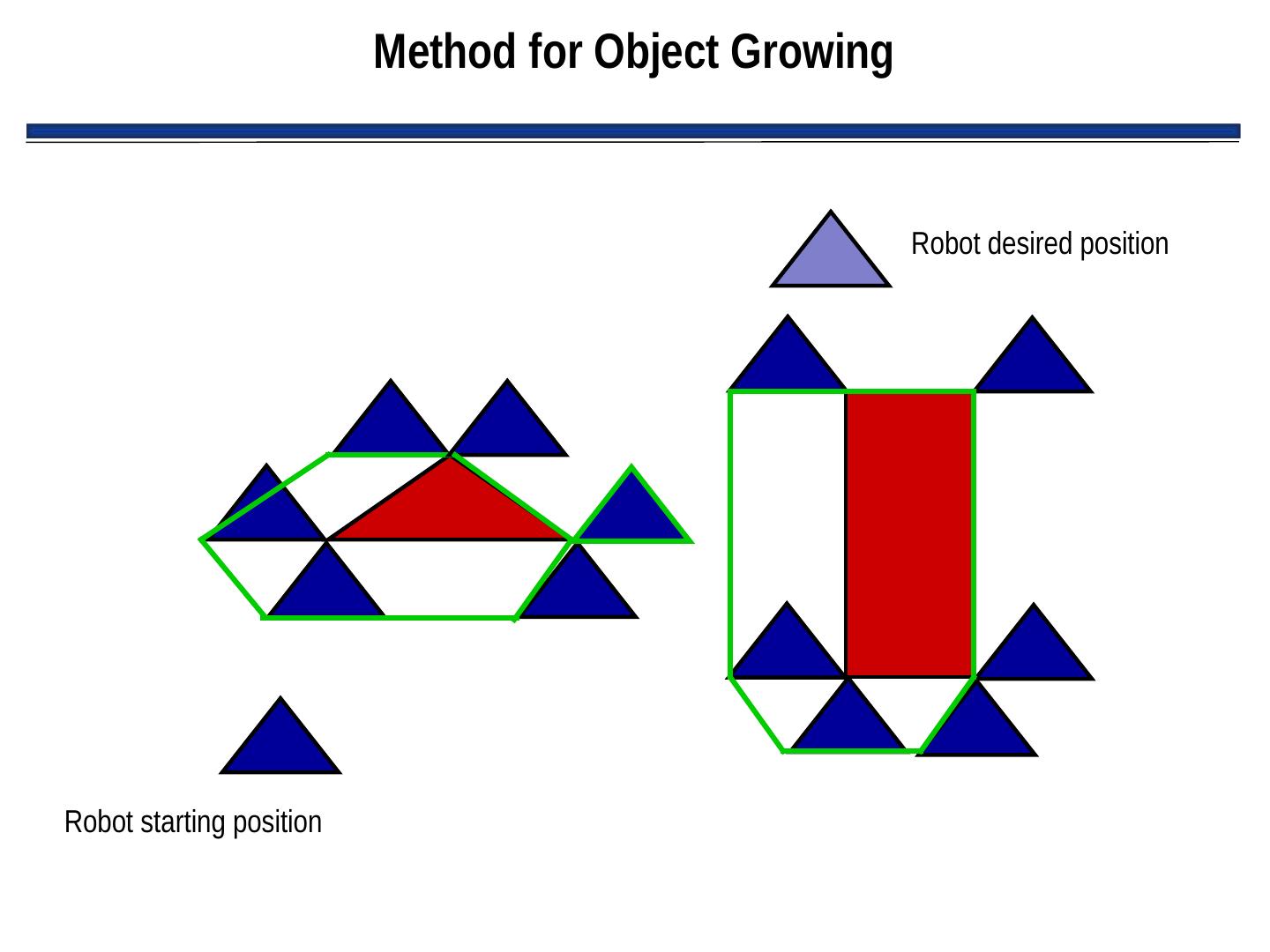 15 . Method for Object Growing • In this example: Triangular robot • Configuration growing: based on robot’s bottom left Robot desired position corner • Method: conceptually move robot around obstacles without collision, marking path of robot’s bottom left corner Robot starting position