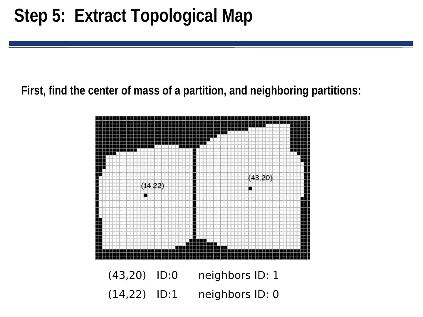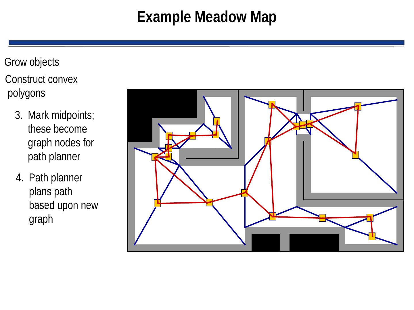 21 . Example Meadow Map Grow objects Construct convex polygons 3. Mark midpoints; these become graph nodes for path planner 4. Path planner plans path based upon new graph