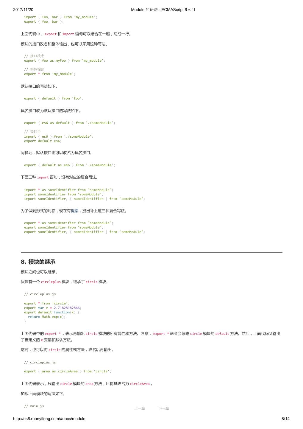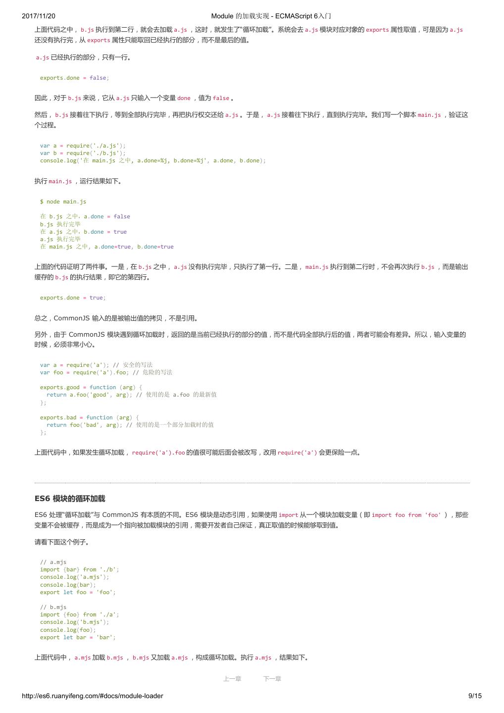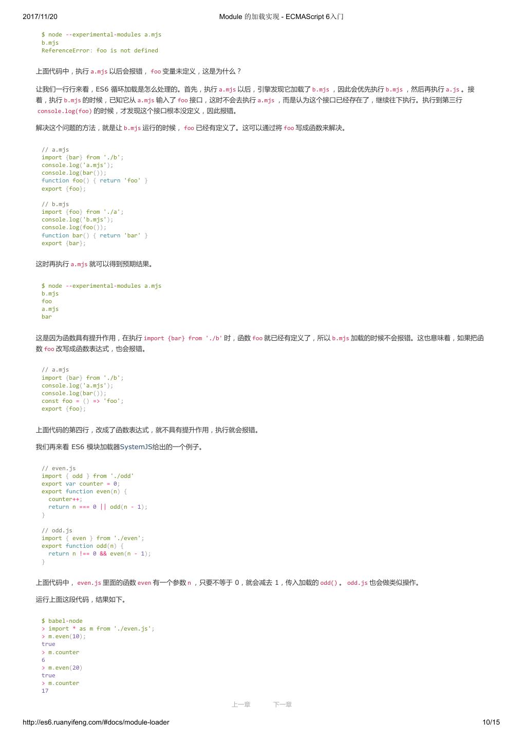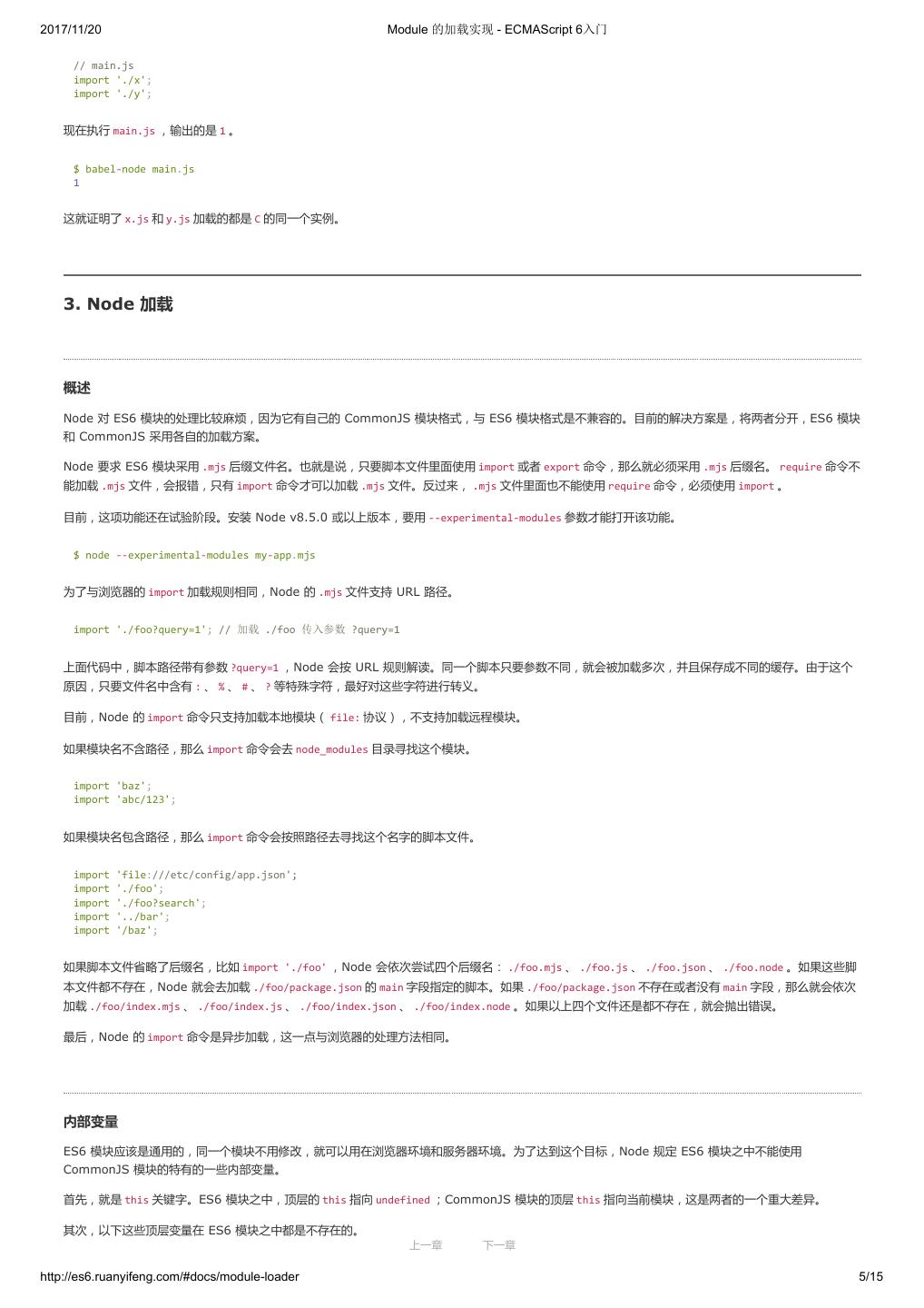 10 .2017/11/20 ECMAScript 6 简介 - ECMAScript 6入门 }; ($traceurRuntime.createClass)(Calc, {add: function(a, b) { return a + b; }}, {}); var c = new Calc(); console.log(c.add(4, 5)); return {}; }); </script> 命令行转换 作为命令行工具使用时,Traceur 是一个 Node 的模块,首先需要用 npm 安装。 $ npm install -g traceur 安装成功后,就可以在命令行下使用 Traceur 了。 Traceur 直接运行 ES6 脚本文件,会在标准输出显示运行结果,以前面的 calc.js 为例。 $ traceur calc.js Calc constructor 9 如果要将 ES6 脚本转为 ES5 保存,要采用下面的写法。 $ traceur --script calc.es6.js --out calc.es5.js 上面代码的 --script 选项表示指定输入文件, --out 选项表示指定输出文件。 为了防止有些特性编译不成功,最好加上 --experimental 选项。 $ traceur --script calc.es6.js --out calc.es5.js --experimental 命令行下转换生成的文件,就可以直接放到浏览器中运行。 Node 环境的用法 Traceur 的 Node 用法如下(假定已安装 traceur 模块)。 var traceur = require('traceur'); var fs = require('fs'); // 将 ES6 脚本转为字符串 var contents = fs.readFileSync('es6-file.js').toString(); var result = traceur.compile(contents, { filename: 'es6-file.js', sourceMap: true, // 其他设置 modules: 'commonjs' }); if (result.error) throw result.error; // result 对象的 js 属性就是转换后的 ES5 代码 fs.writeFileSync('out.js', result.js); // sourceMap 属性对应 map 文件 fs.writeFileSync('out.js.map', result.sourceMap); 留言 上一章 下一章 http://es6.ruanyifeng.com/#docs/intro 9/11