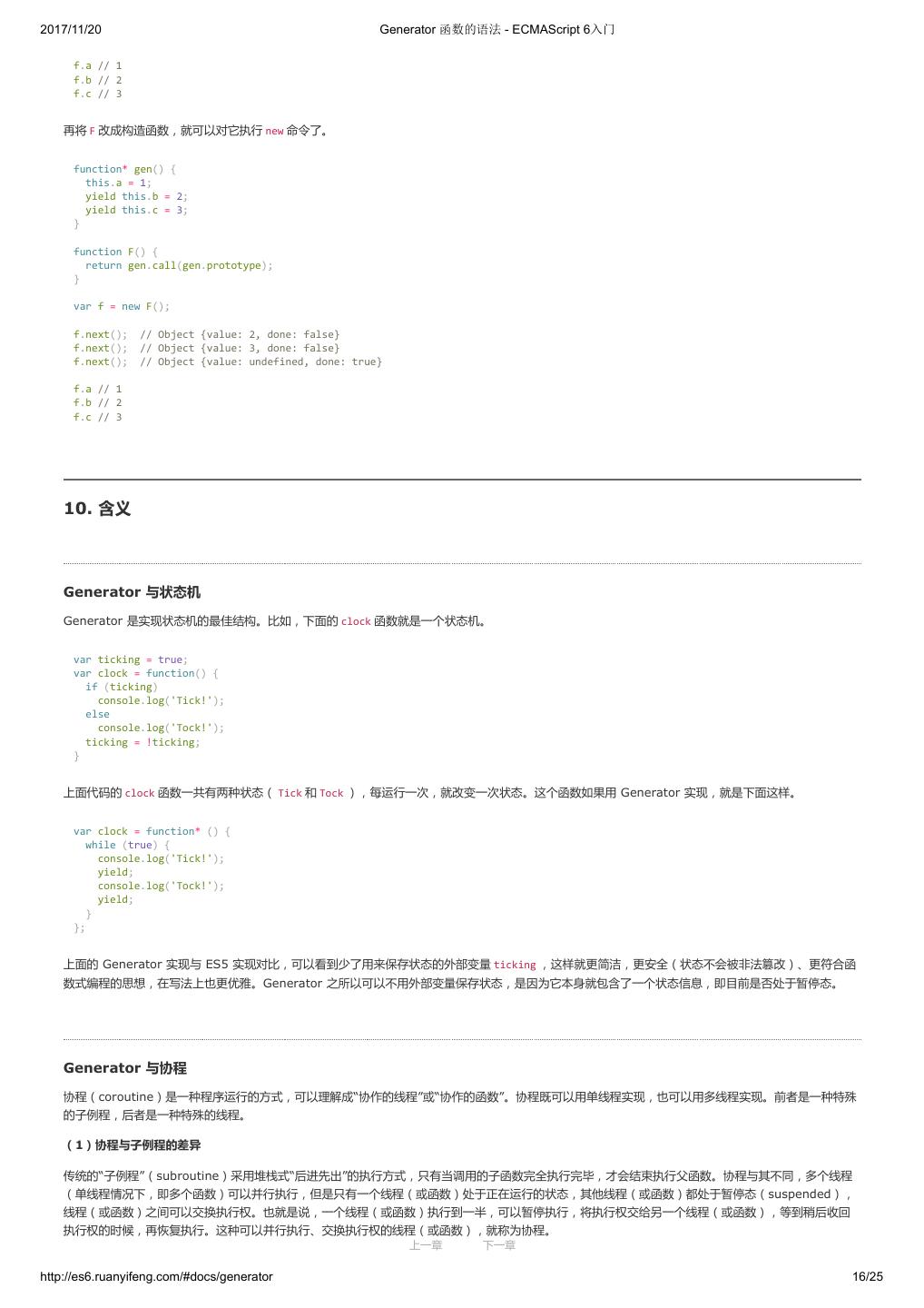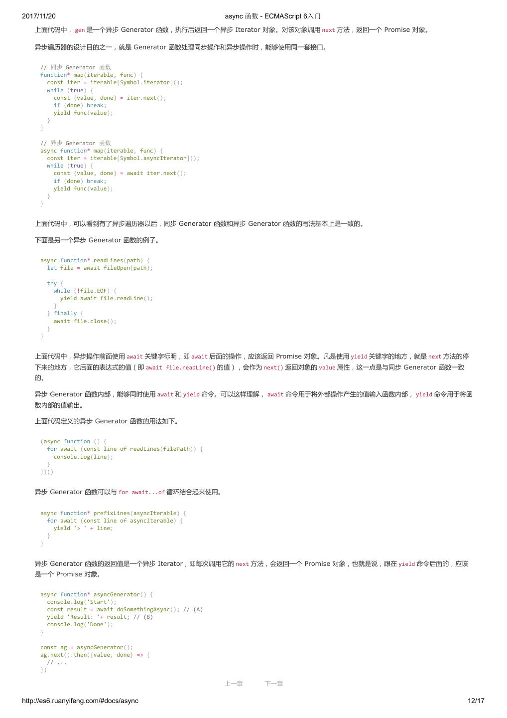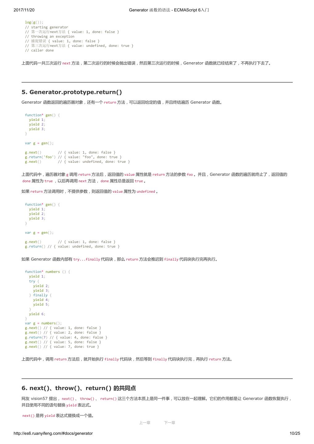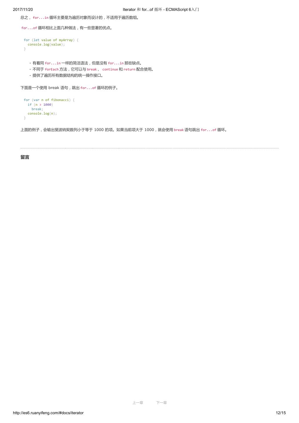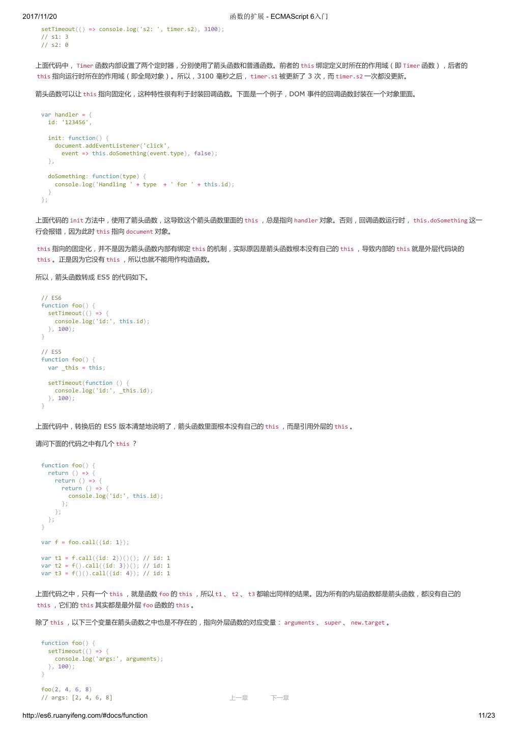 1 .2017/11/20 ECMAScript 6 入门 - ECMAScript 6入门 本书覆盖 ES6 与上一个版本 ES5 的所有不同之处,对涉及的语法知识给予详细介绍,并给出大量简洁易懂的示例代码。 本书为中级难度,适合已经掌握 ES5 的读者,用来了解这门语言的最新发展;也可当作参考手册,查寻新增的语法点。 全书已由电子工业出版社出版,2017年9月推出了第三版,书名为《ES6 标准入门》。纸版是基于网站内容排版印刷的。 感谢张春雨编辑支持我将全书开源的做法。如果您认可这本书,建议购买纸版。这样可以使出版社不因出版开源书籍而亏钱,进而鼓励更多的作者开源自 己的书籍。下面是第三版的购买地址。 - 淘宝 - 京东 - 当当 - 亚马逊 - China-pub 版权许可 本书采用“保持署名—非商用”创意共享4.0许可证。 只要保持原作者署名和非商用,您可以自由地阅读、分享、修改本书。 详细的法律条文请参见创意共享网站。 留言 下一章 http://es6.ruanyifeng.com/#undefined 2/2