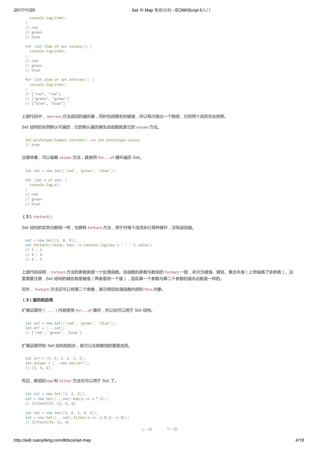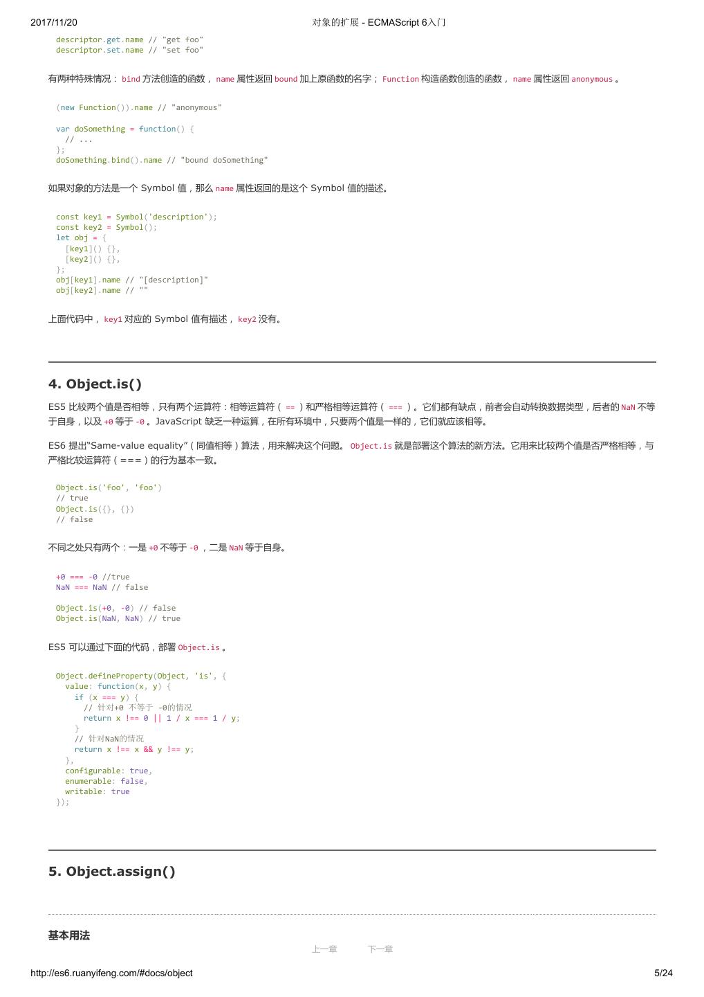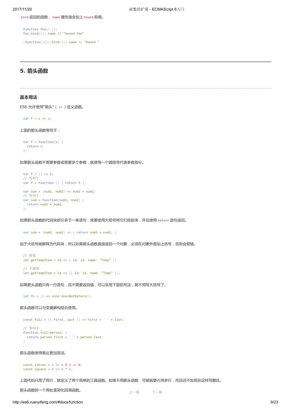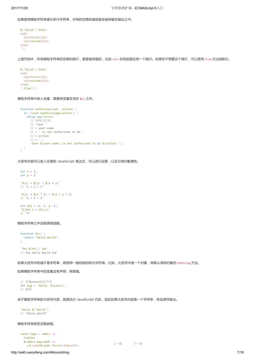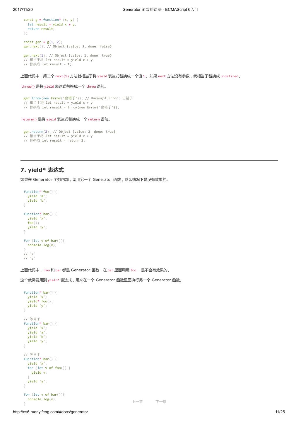 1 .2017/11/20 ECMAScript 6 入门 - ECMAScript 6入门 本书覆盖 ES6 与上一个版本 ES5 的所有不同之处,对涉及的语法知识给予详细介绍,并给出大量简洁易懂的示例代码。 本书为中级难度,适合已经掌握 ES5 的读者,用来了解这门语言的最新发展;也可当作参考手册,查寻新增的语法点。 全书已由电子工业出版社出版,2017年9月推出了第三版,书名为《ES6 标准入门》。纸版是基于网站内容排版印刷的。 感谢张春雨编辑支持我将全书开源的做法。如果您认可这本书,建议购买纸版。这样可以使出版社不因出版开源书籍而亏钱,进而鼓励更多的作者开源自 己的书籍。下面是第三版的购买地址。 - 淘宝 - 京东 - 当当 - 亚马逊 - China-pub 版权许可 本书采用“保持署名—非商用”创意共享4.0许可证。 只要保持原作者署名和非商用,您可以自由地阅读、分享、修改本书。 详细的法律条文请参见创意共享网站。 留言 下一章 http://es6.ruanyifeng.com/#undefined 2/2