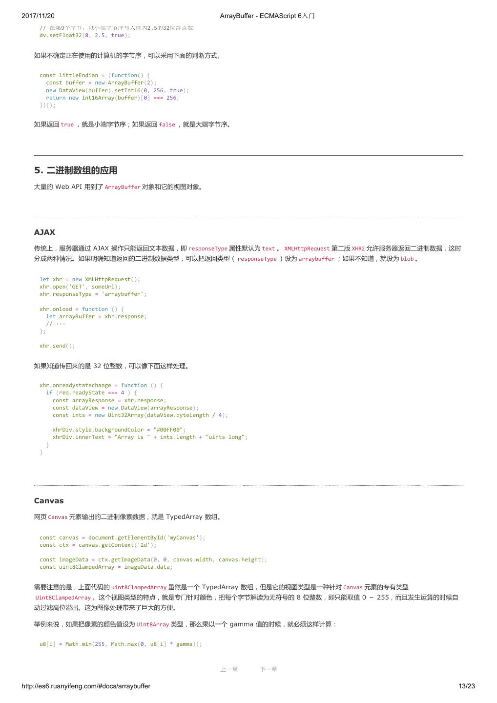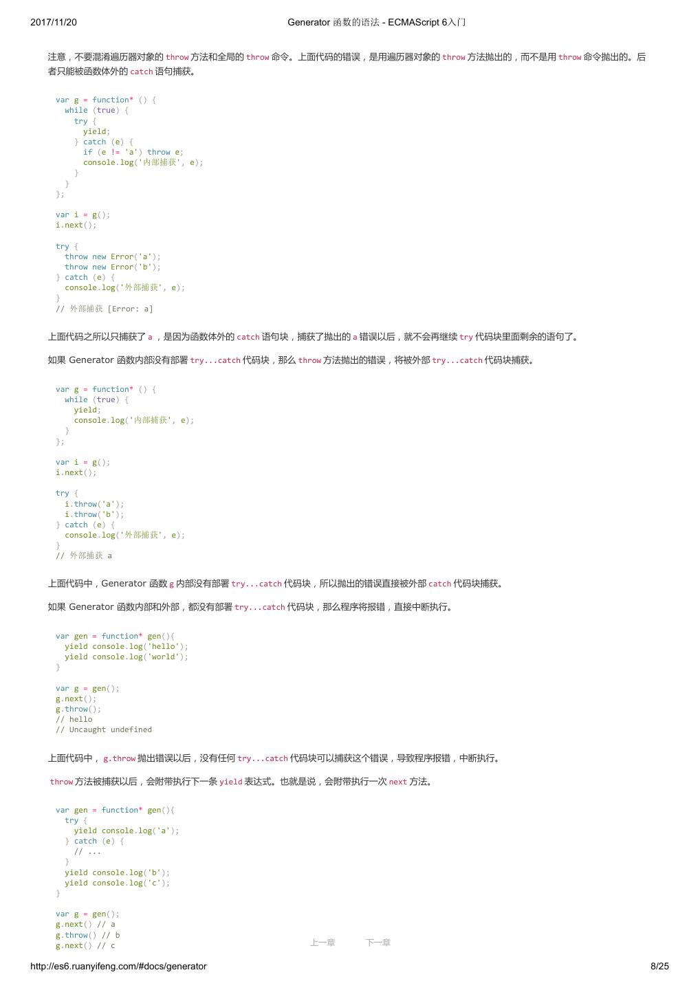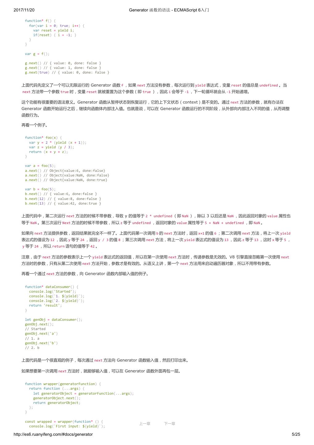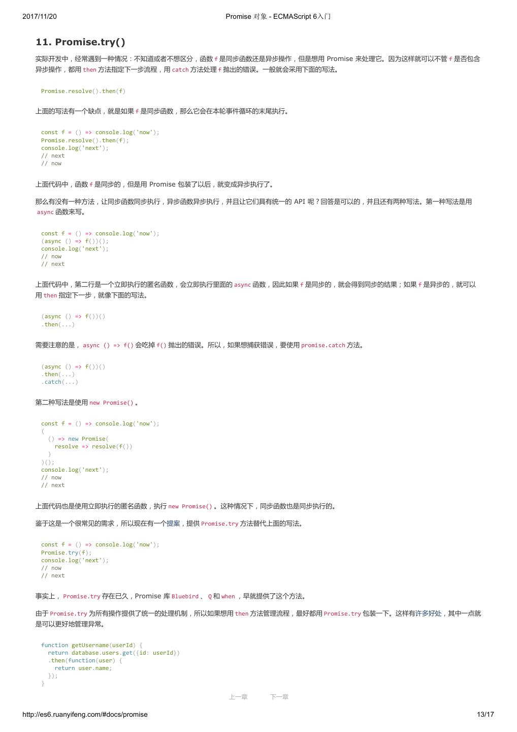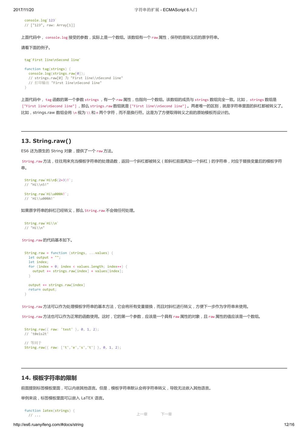 1 .2017/11/20 ECMAScript 6 入门 - ECMAScript 6入门 本书覆盖 ES6 与上一个版本 ES5 的所有不同之处,对涉及的语法知识给予详细介绍,并给出大量简洁易懂的示例代码。 本书为中级难度,适合已经掌握 ES5 的读者,用来了解这门语言的最新发展;也可当作参考手册,查寻新增的语法点。 全书已由电子工业出版社出版,2017年9月推出了第三版,书名为《ES6 标准入门》。纸版是基于网站内容排版印刷的。 感谢张春雨编辑支持我将全书开源的做法。如果您认可这本书,建议购买纸版。这样可以使出版社不因出版开源书籍而亏钱,进而鼓励更多的作者开源自 己的书籍。下面是第三版的购买地址。 - 淘宝 - 京东 - 当当 - 亚马逊 - China-pub 版权许可 本书采用“保持署名—非商用”创意共享4.0许可证。 只要保持原作者署名和非商用,您可以自由地阅读、分享、修改本书。 详细的法律条文请参见创意共享网站。 留言 下一章 http://es6.ruanyifeng.com/#undefined 2/2