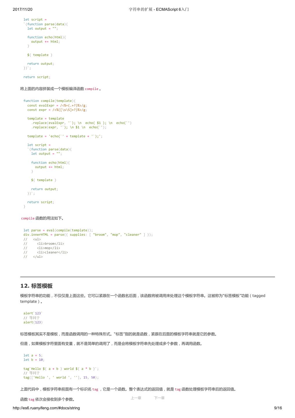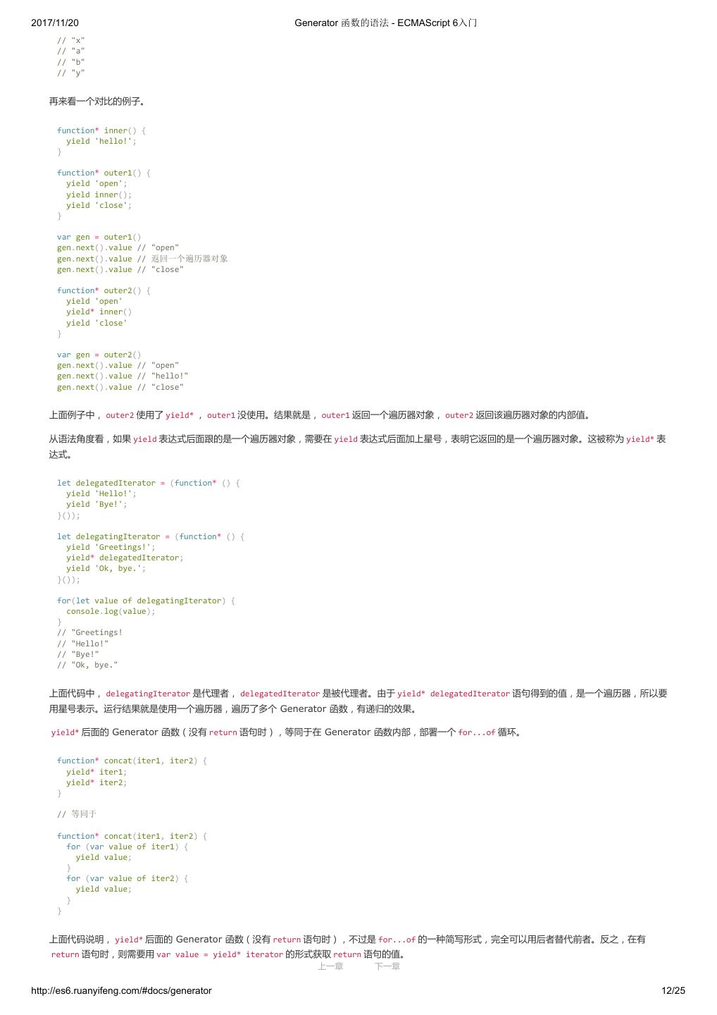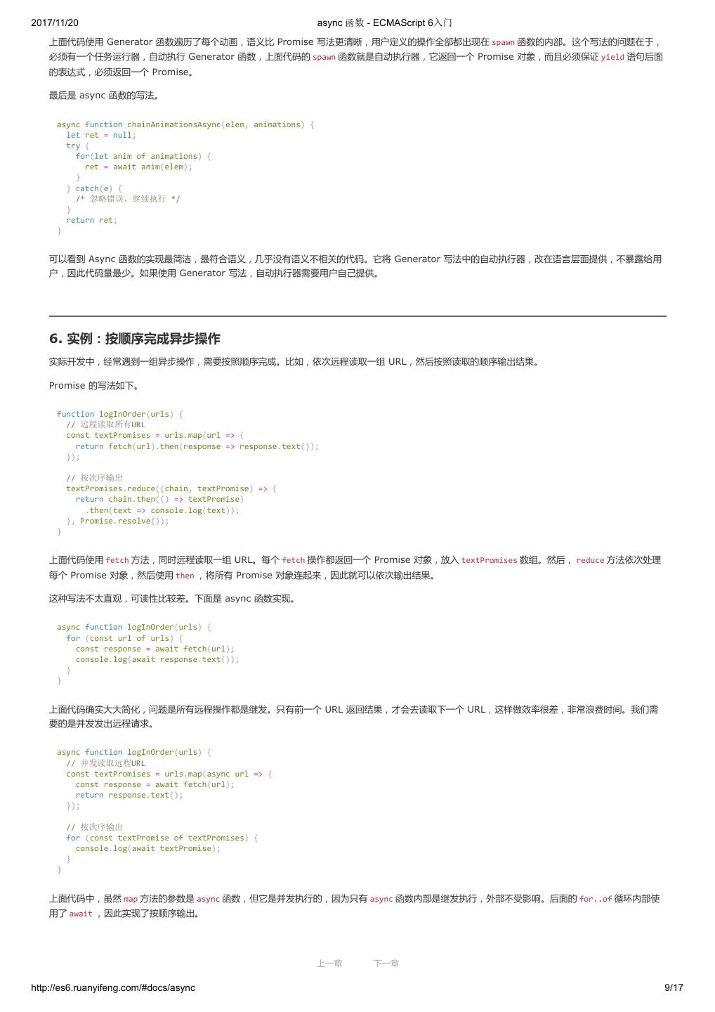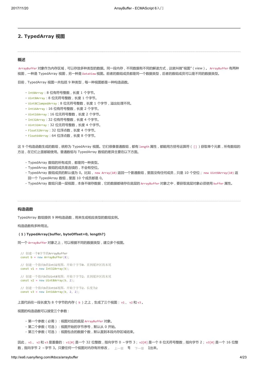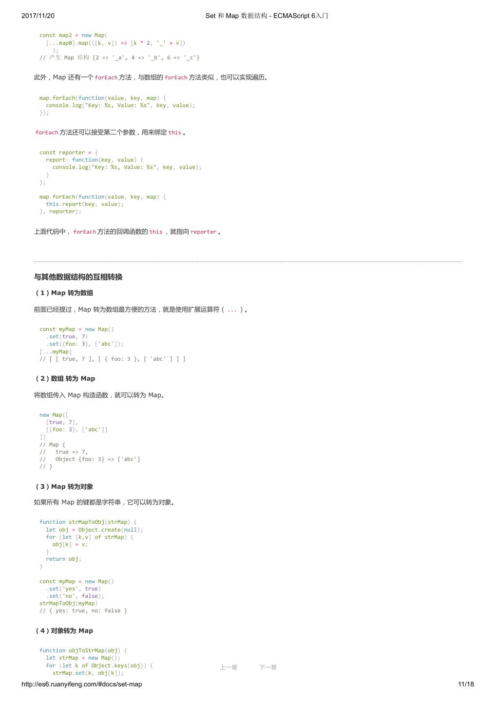 1 .2017/11/20 ECMAScript 6 入门 - ECMAScript 6入门 本书覆盖 ES6 与上一个版本 ES5 的所有不同之处,对涉及的语法知识给予详细介绍,并给出大量简洁易懂的示例代码。 本书为中级难度,适合已经掌握 ES5 的读者,用来了解这门语言的最新发展;也可当作参考手册,查寻新增的语法点。 全书已由电子工业出版社出版,2017年9月推出了第三版,书名为《ES6 标准入门》。纸版是基于网站内容排版印刷的。 感谢张春雨编辑支持我将全书开源的做法。如果您认可这本书,建议购买纸版。这样可以使出版社不因出版开源书籍而亏钱,进而鼓励更多的作者开源自 己的书籍。下面是第三版的购买地址。 - 淘宝 - 京东 - 当当 - 亚马逊 - China-pub 版权许可 本书采用“保持署名—非商用”创意共享4.0许可证。 只要保持原作者署名和非商用,您可以自由地阅读、分享、修改本书。 详细的法律条文请参见创意共享网站。 留言 下一章 http://es6.ruanyifeng.com/#undefined 2/2
