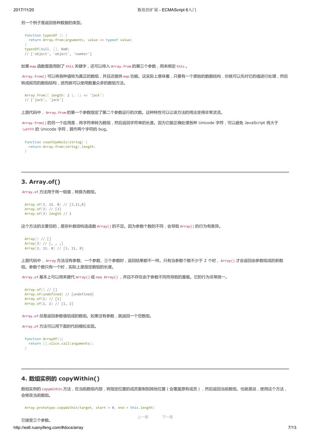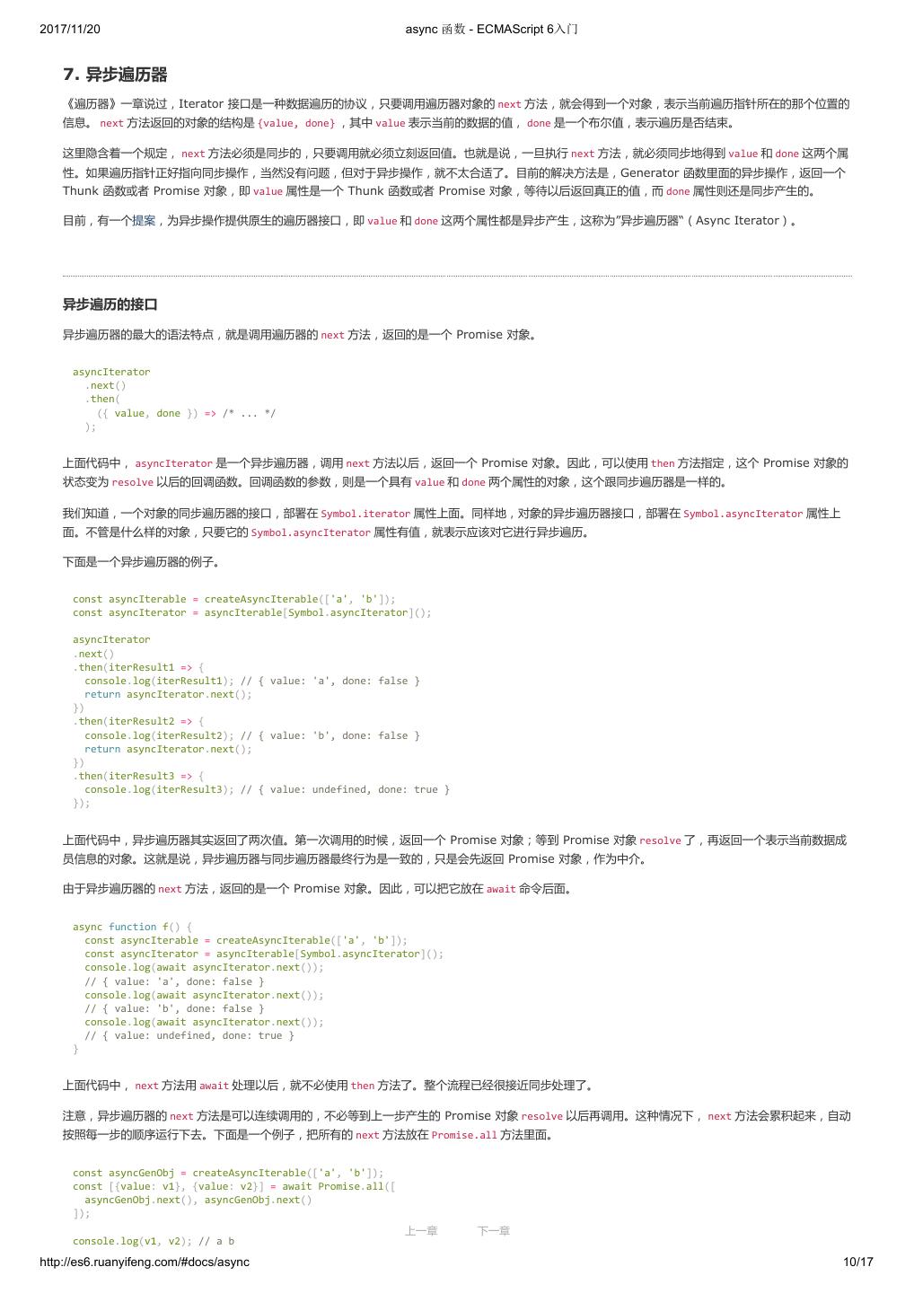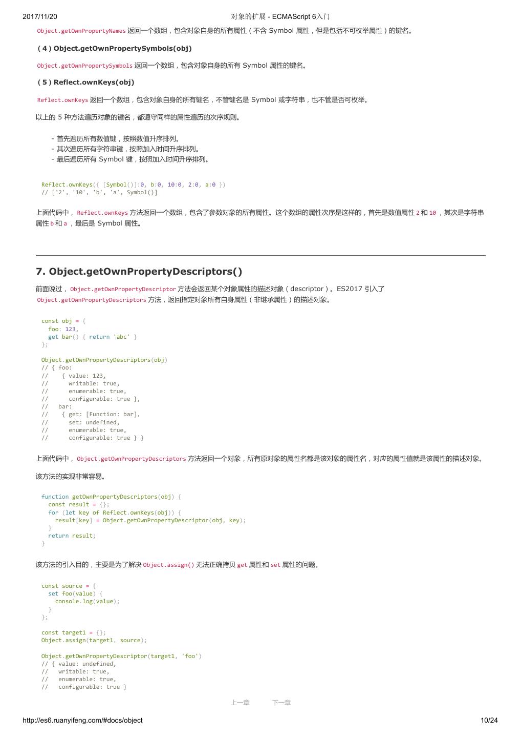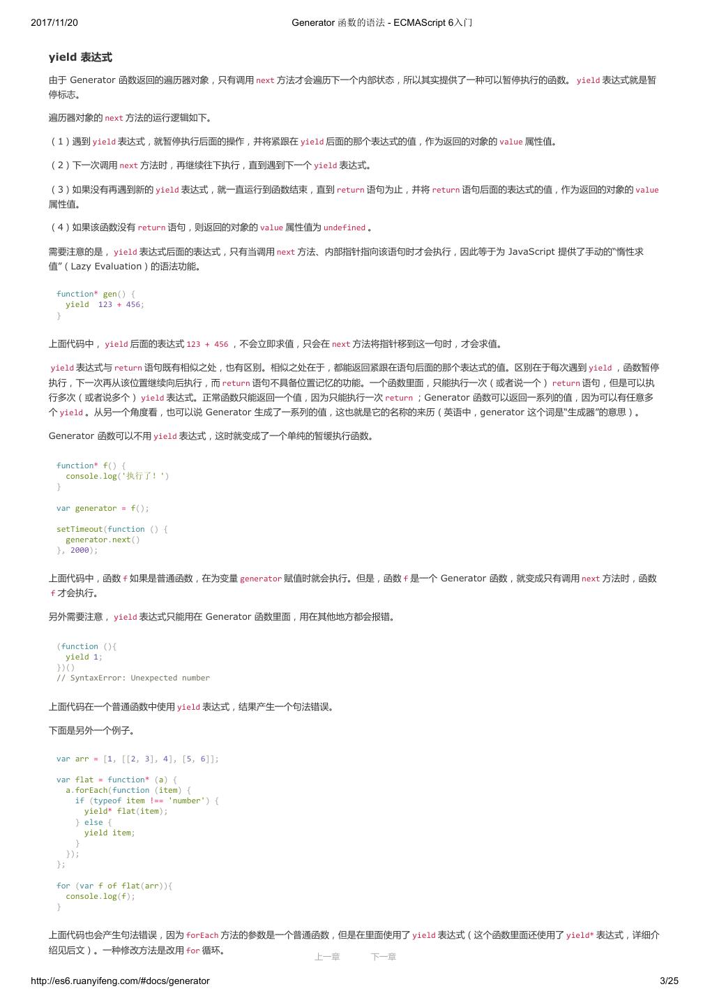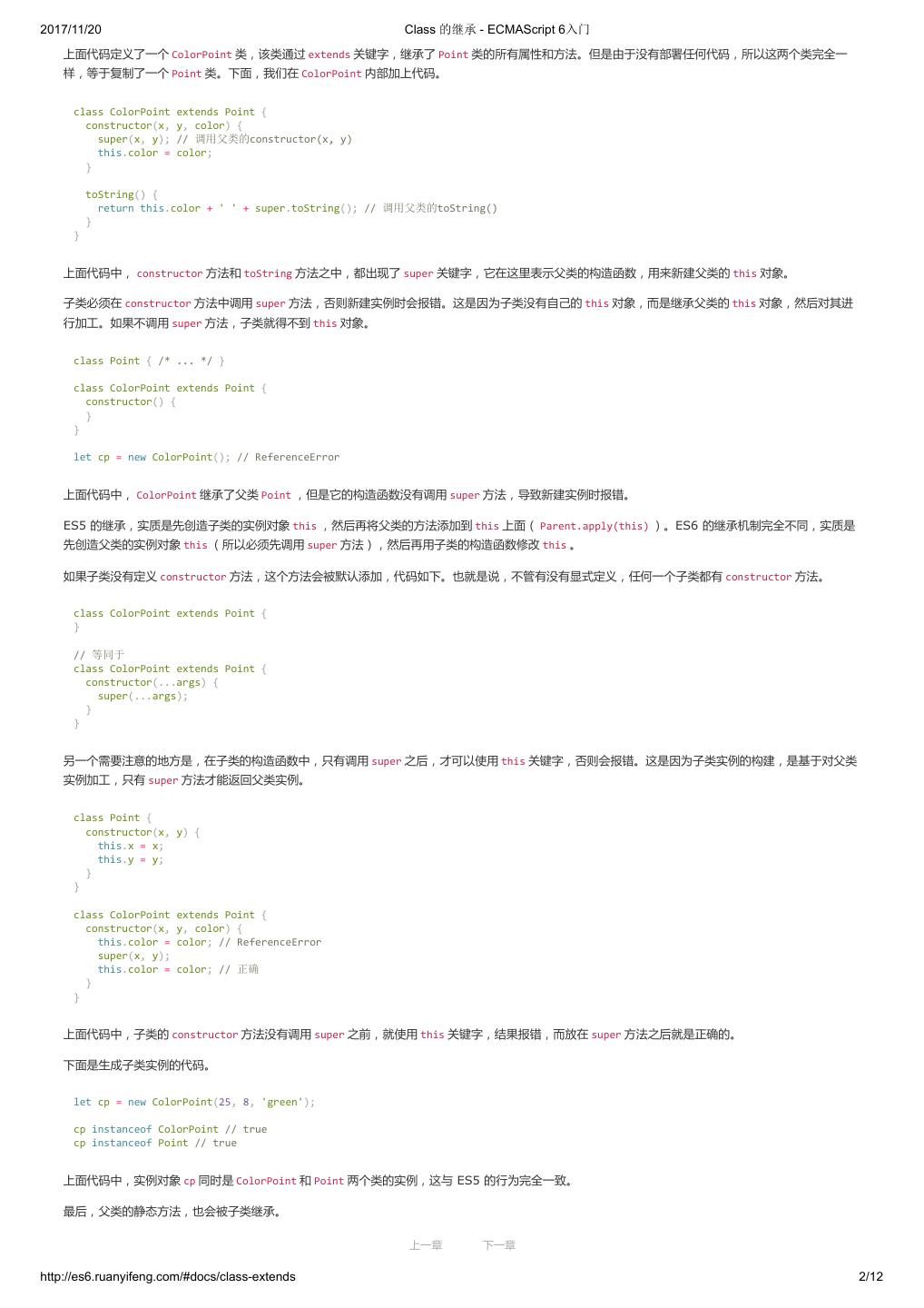 1 .2017/11/20 ECMAScript 6 入门 - ECMAScript 6入门 本书覆盖 ES6 与上一个版本 ES5 的所有不同之处,对涉及的语法知识给予详细介绍,并给出大量简洁易懂的示例代码。 本书为中级难度,适合已经掌握 ES5 的读者,用来了解这门语言的最新发展;也可当作参考手册,查寻新增的语法点。 全书已由电子工业出版社出版,2017年9月推出了第三版,书名为《ES6 标准入门》。纸版是基于网站内容排版印刷的。 感谢张春雨编辑支持我将全书开源的做法。如果您认可这本书,建议购买纸版。这样可以使出版社不因出版开源书籍而亏钱,进而鼓励更多的作者开源自 己的书籍。下面是第三版的购买地址。 - 淘宝 - 京东 - 当当 - 亚马逊 - China-pub 版权许可 本书采用“保持署名—非商用”创意共享4.0许可证。 只要保持原作者署名和非商用,您可以自由地阅读、分享、修改本书。 详细的法律条文请参见创意共享网站。 留言 下一章 http://es6.ruanyifeng.com/#undefined 2/2