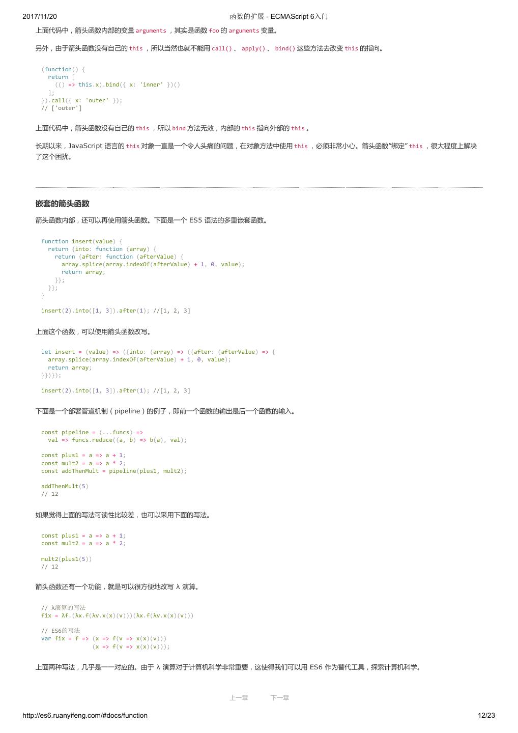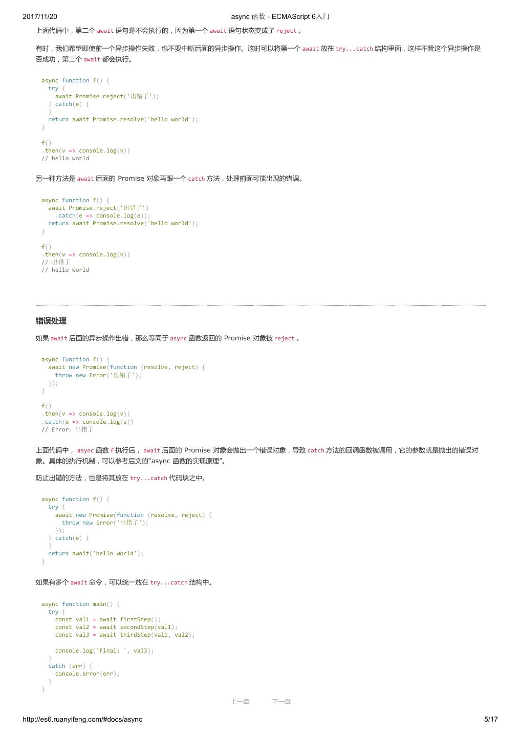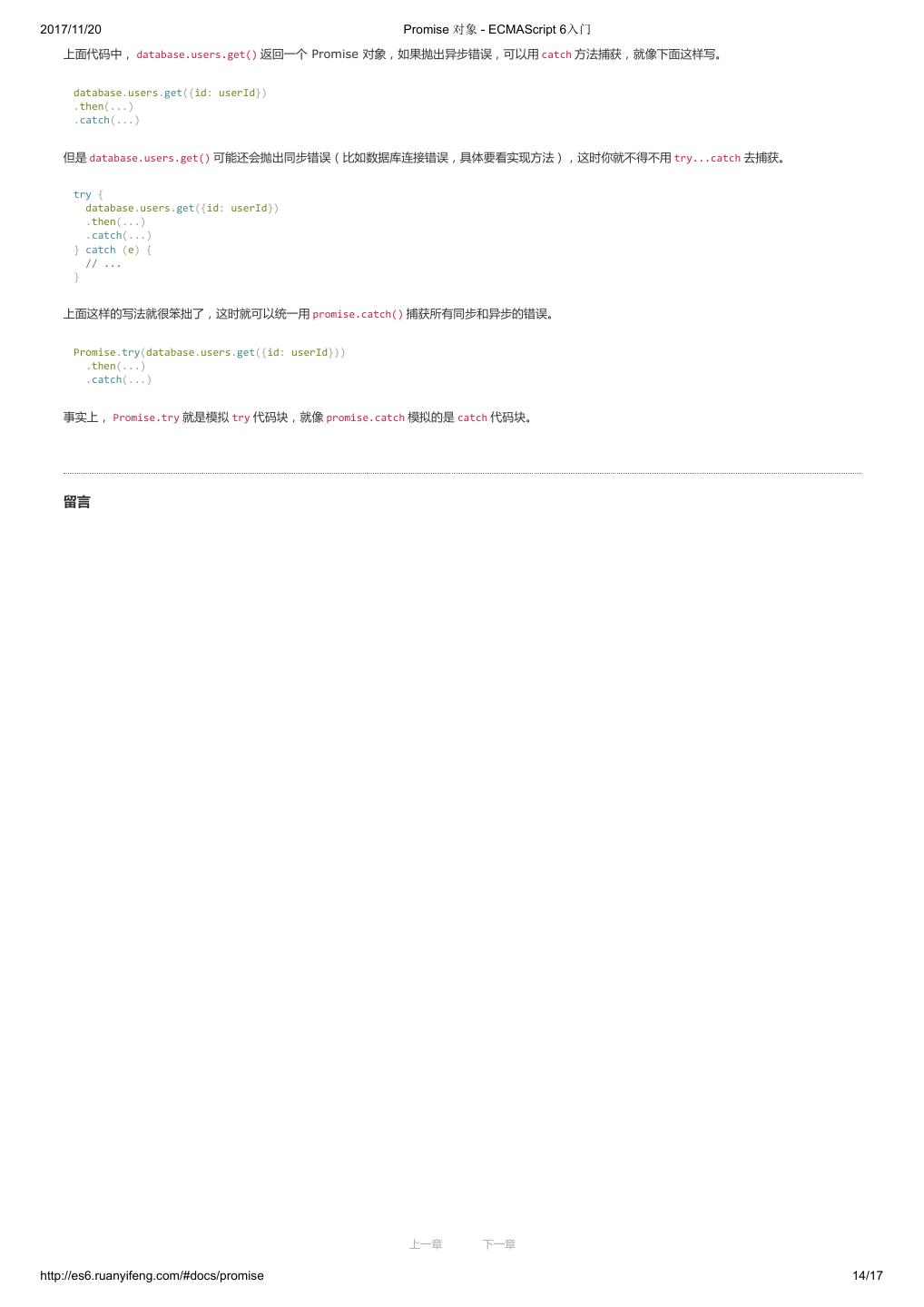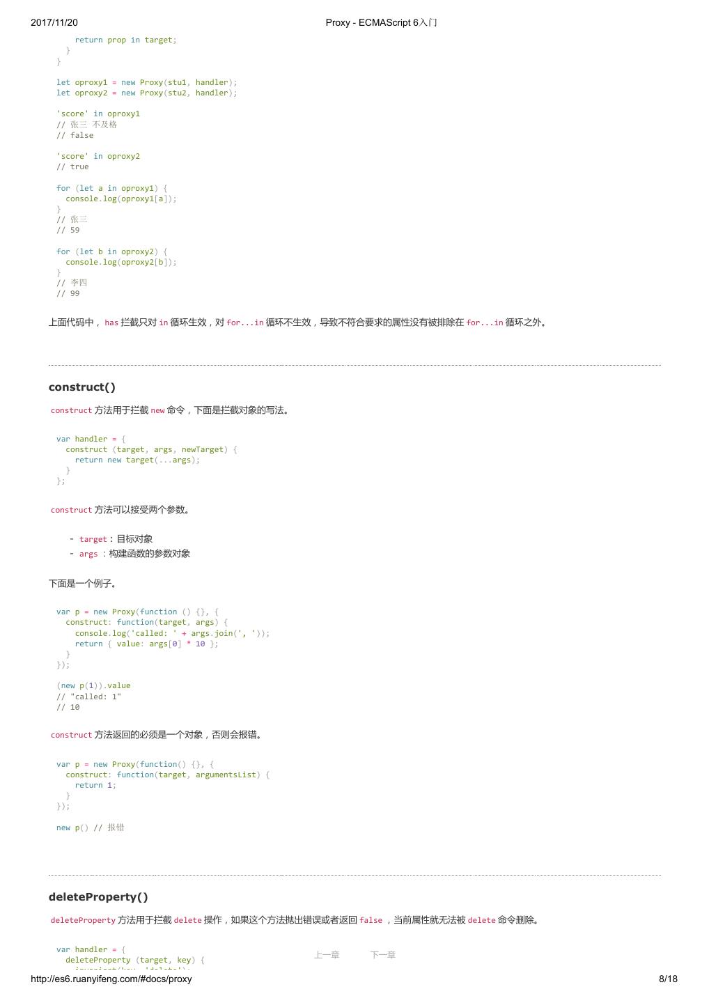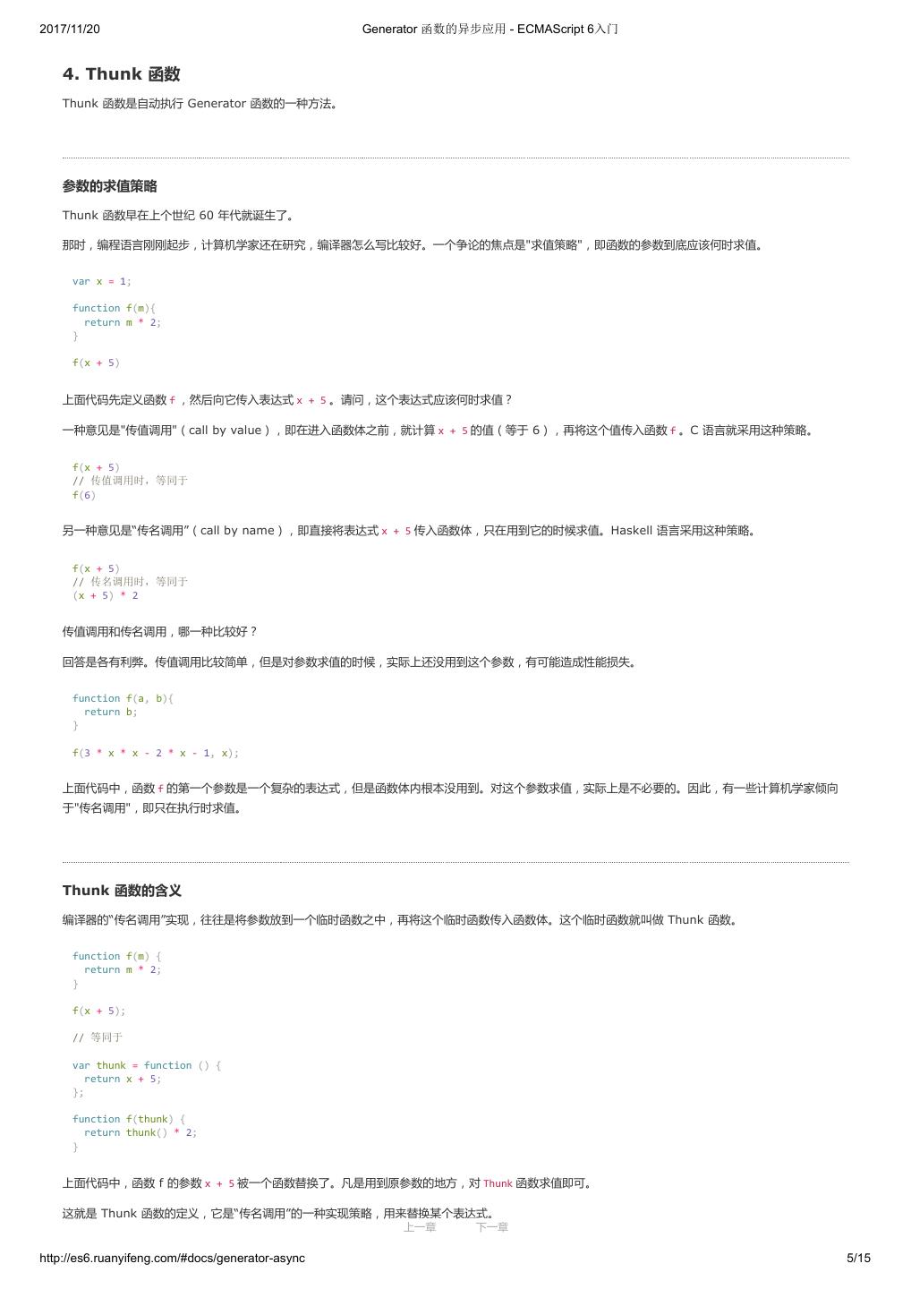 1 .2017/11/20 ECMAScript 6 入门 - ECMAScript 6入门 本书覆盖 ES6 与上一个版本 ES5 的所有不同之处,对涉及的语法知识给予详细介绍,并给出大量简洁易懂的示例代码。 本书为中级难度,适合已经掌握 ES5 的读者,用来了解这门语言的最新发展;也可当作参考手册,查寻新增的语法点。 全书已由电子工业出版社出版,2017年9月推出了第三版,书名为《ES6 标准入门》。纸版是基于网站内容排版印刷的。 感谢张春雨编辑支持我将全书开源的做法。如果您认可这本书,建议购买纸版。这样可以使出版社不因出版开源书籍而亏钱,进而鼓励更多的作者开源自 己的书籍。下面是第三版的购买地址。 - 淘宝 - 京东 - 当当 - 亚马逊 - China-pub 版权许可 本书采用“保持署名—非商用”创意共享4.0许可证。 只要保持原作者署名和非商用,您可以自由地阅读、分享、修改本书。 详细的法律条文请参见创意共享网站。 留言 下一章 http://es6.ruanyifeng.com/#undefined 2/2