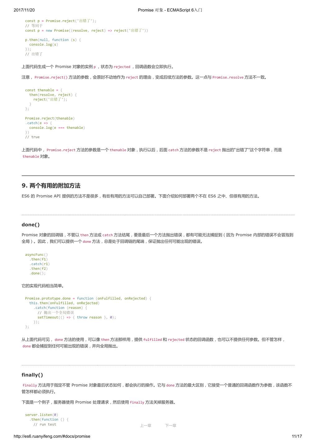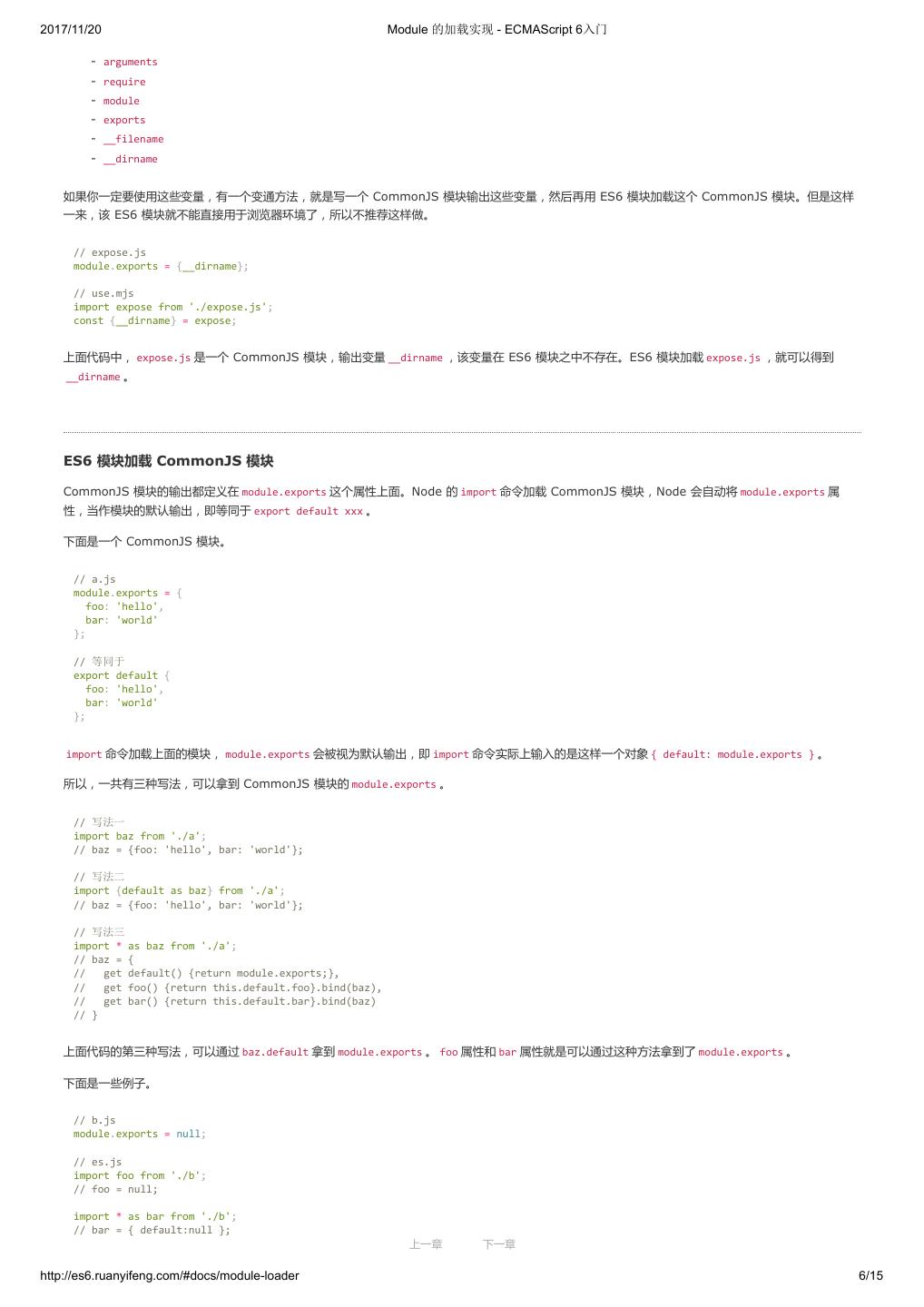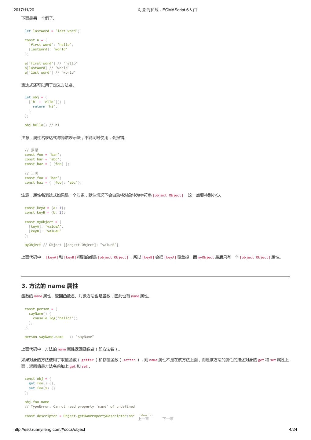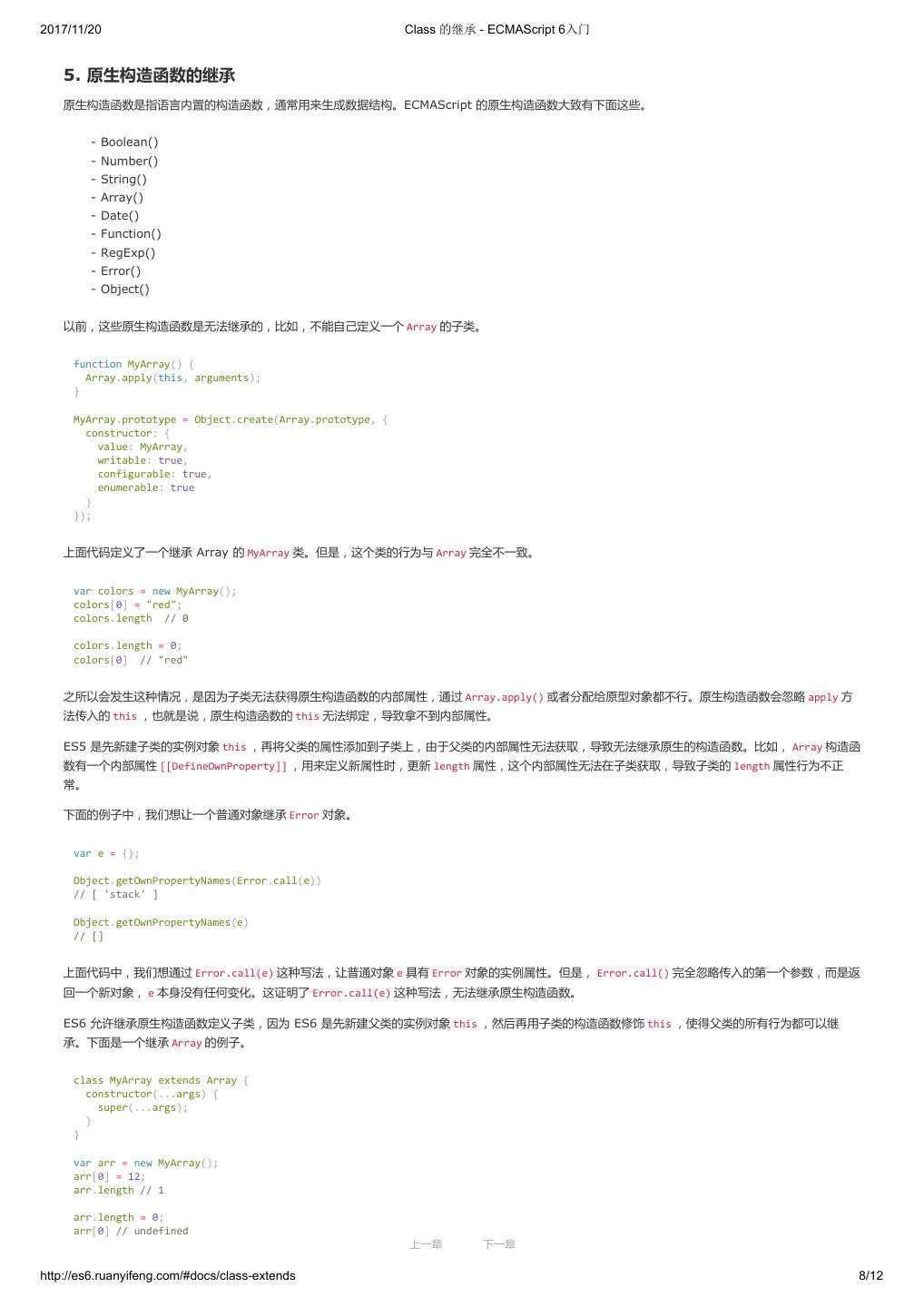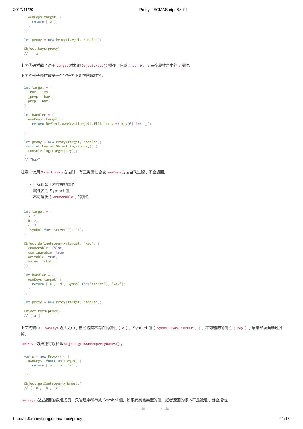 1 .2017/11/20 ECMAScript 6 入门 - ECMAScript 6入门 本书覆盖 ES6 与上一个版本 ES5 的所有不同之处,对涉及的语法知识给予详细介绍,并给出大量简洁易懂的示例代码。 本书为中级难度,适合已经掌握 ES5 的读者,用来了解这门语言的最新发展;也可当作参考手册,查寻新增的语法点。 全书已由电子工业出版社出版,2017年9月推出了第三版,书名为《ES6 标准入门》。纸版是基于网站内容排版印刷的。 感谢张春雨编辑支持我将全书开源的做法。如果您认可这本书,建议购买纸版。这样可以使出版社不因出版开源书籍而亏钱,进而鼓励更多的作者开源自 己的书籍。下面是第三版的购买地址。 - 淘宝 - 京东 - 当当 - 亚马逊 - China-pub 版权许可 本书采用“保持署名—非商用”创意共享4.0许可证。 只要保持原作者署名和非商用,您可以自由地阅读、分享、修改本书。 详细的法律条文请参见创意共享网站。 留言 下一章 http://es6.ruanyifeng.com/#undefined 2/2